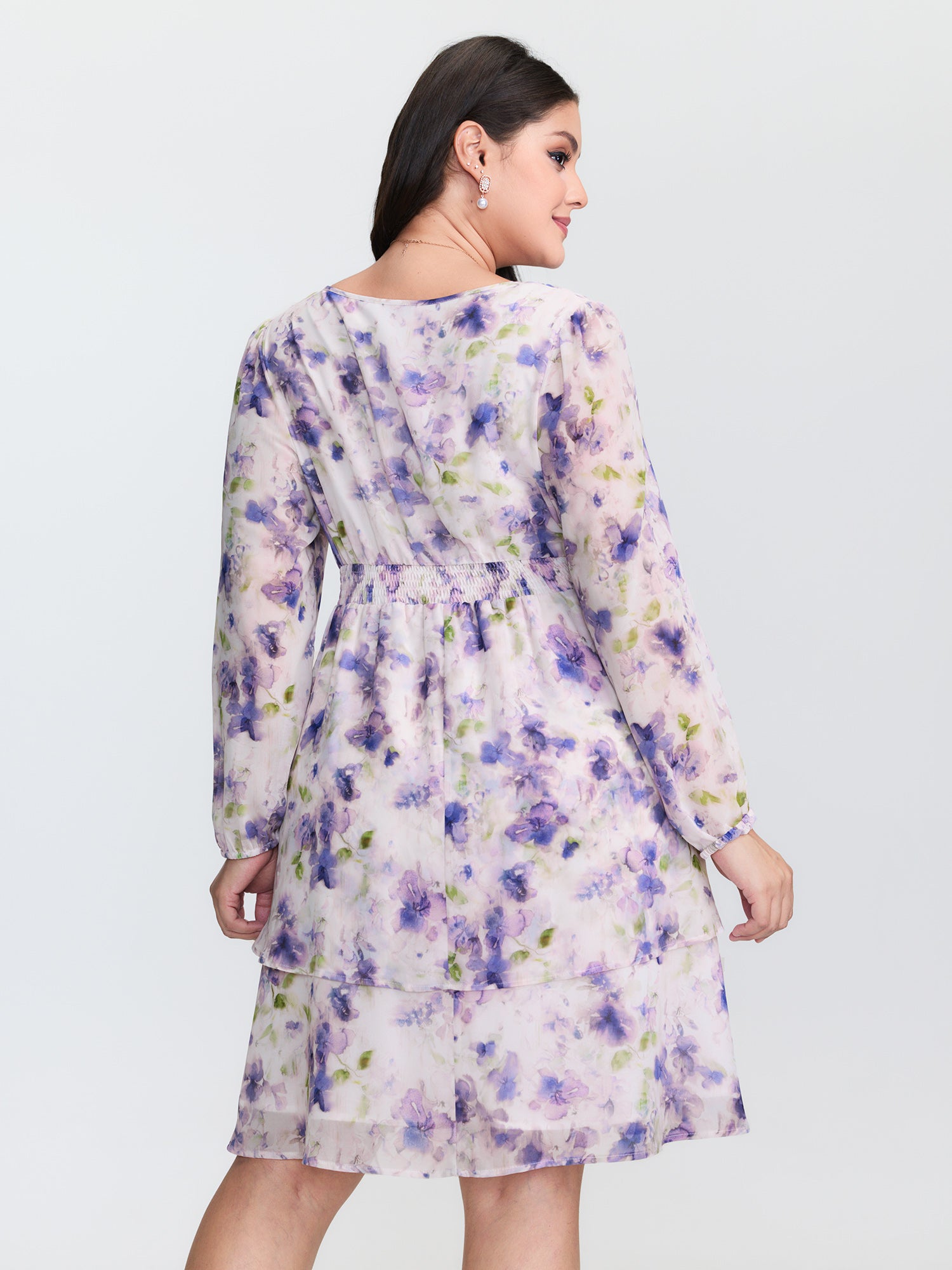 Shop Artistic Floral Print Pleated Waist Midi Dress now and redefine your style with confidence at BloomChic. Tailored for mid and plus-size women. This trendy Dress, sizes 10-30. You can never go wrong with BloomChic Dresses. Color:Lavender;Style:Romantic;Neckline:V-neck;Sleeve Type:Lantern Sleeve;Prints:Floral;Details:Shirred, Contrast, Gathered;Pocket:Side seam pocket;Belt:No-belt;Closure Type:Non