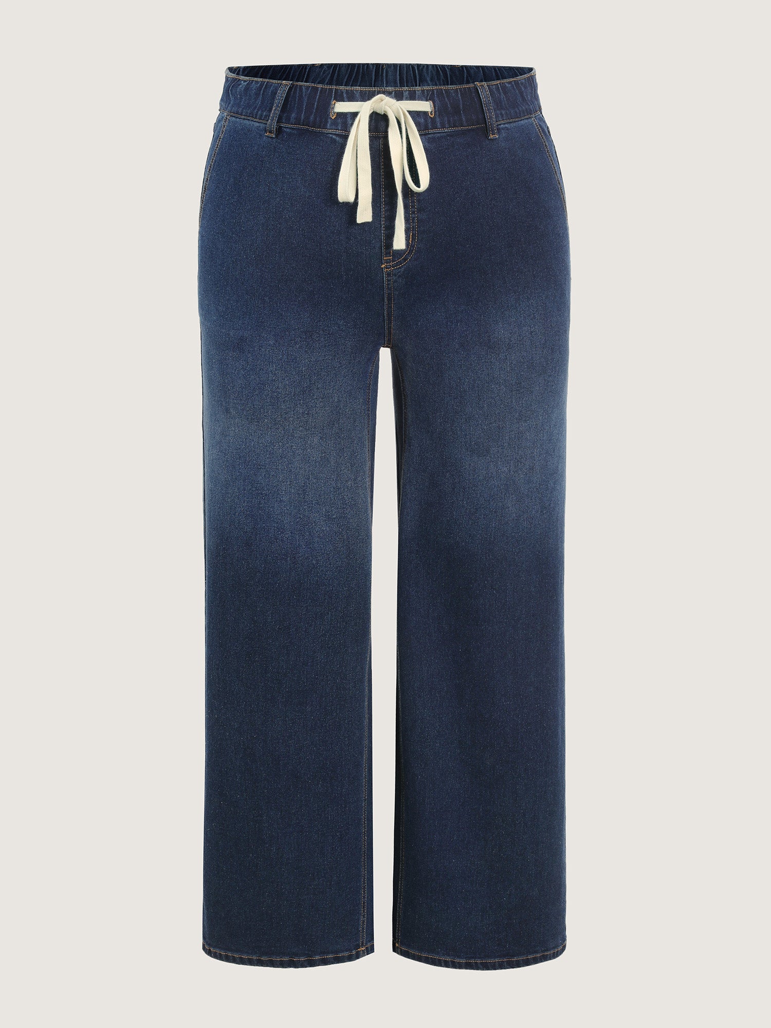 Shop Drawstring Waist Stretchy Wide-Leg Jeans now and redefine your style with confidence at BloomChic. Tailored for mid and plus-size women. This trendy Denim Women, sizes 10-30. Color:Dark Indigo;Style:Leisure;Prints:Non;Pocket:Slanted pocket;Belt:No-belt;Closure Type:False placket;Wash:Dark Wash