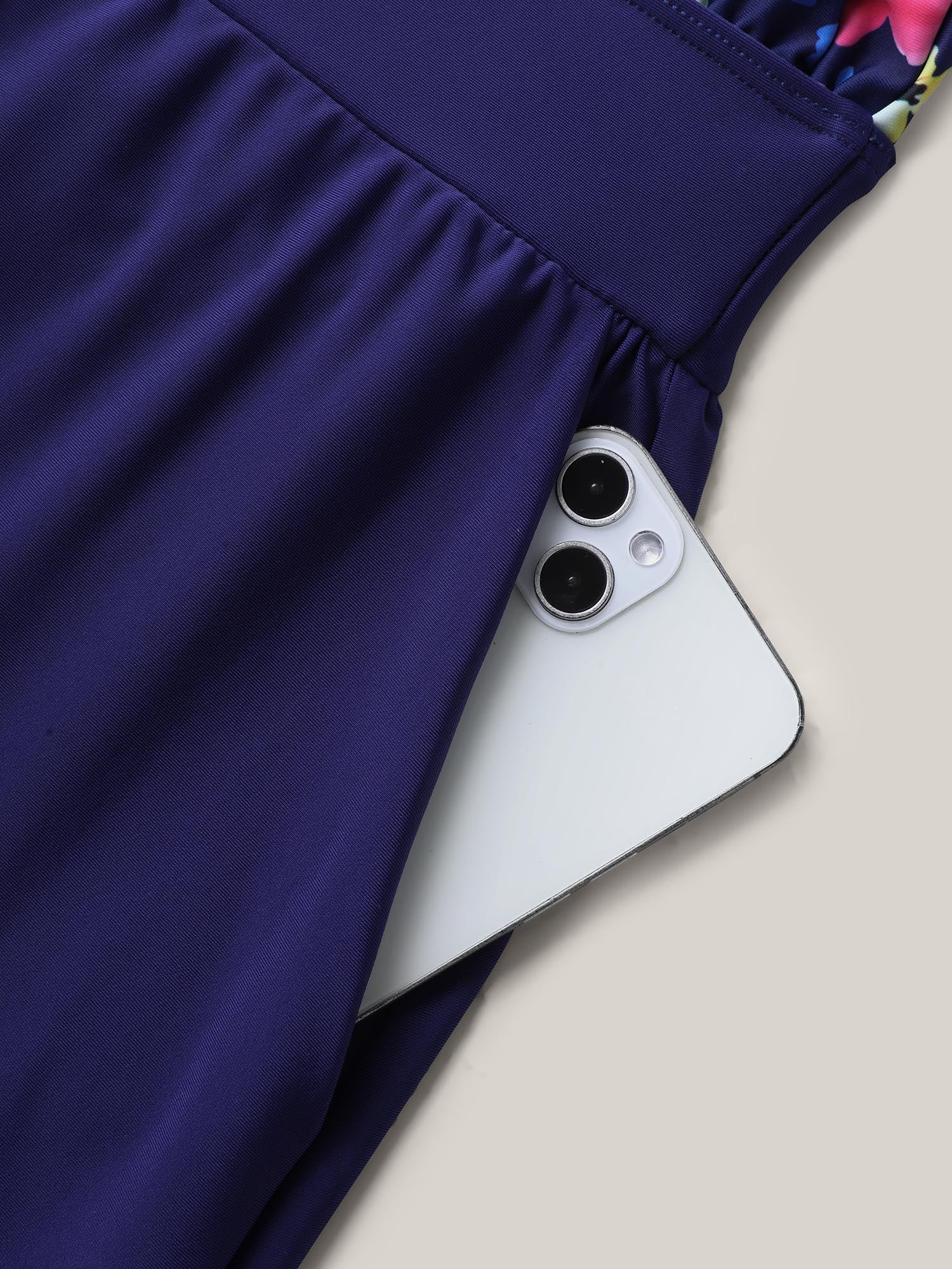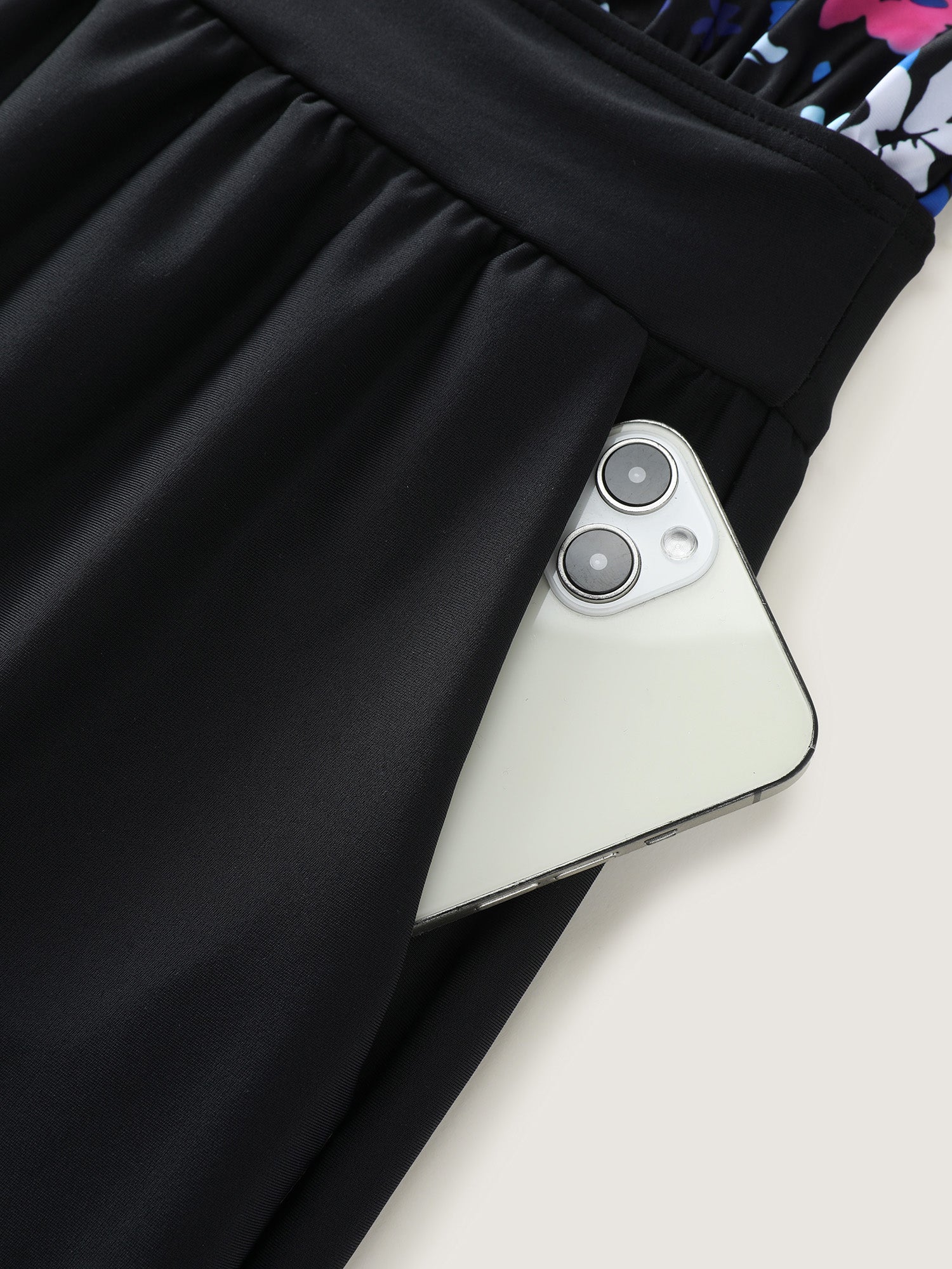 Floral Print Keyhole Pockets Swim Romper