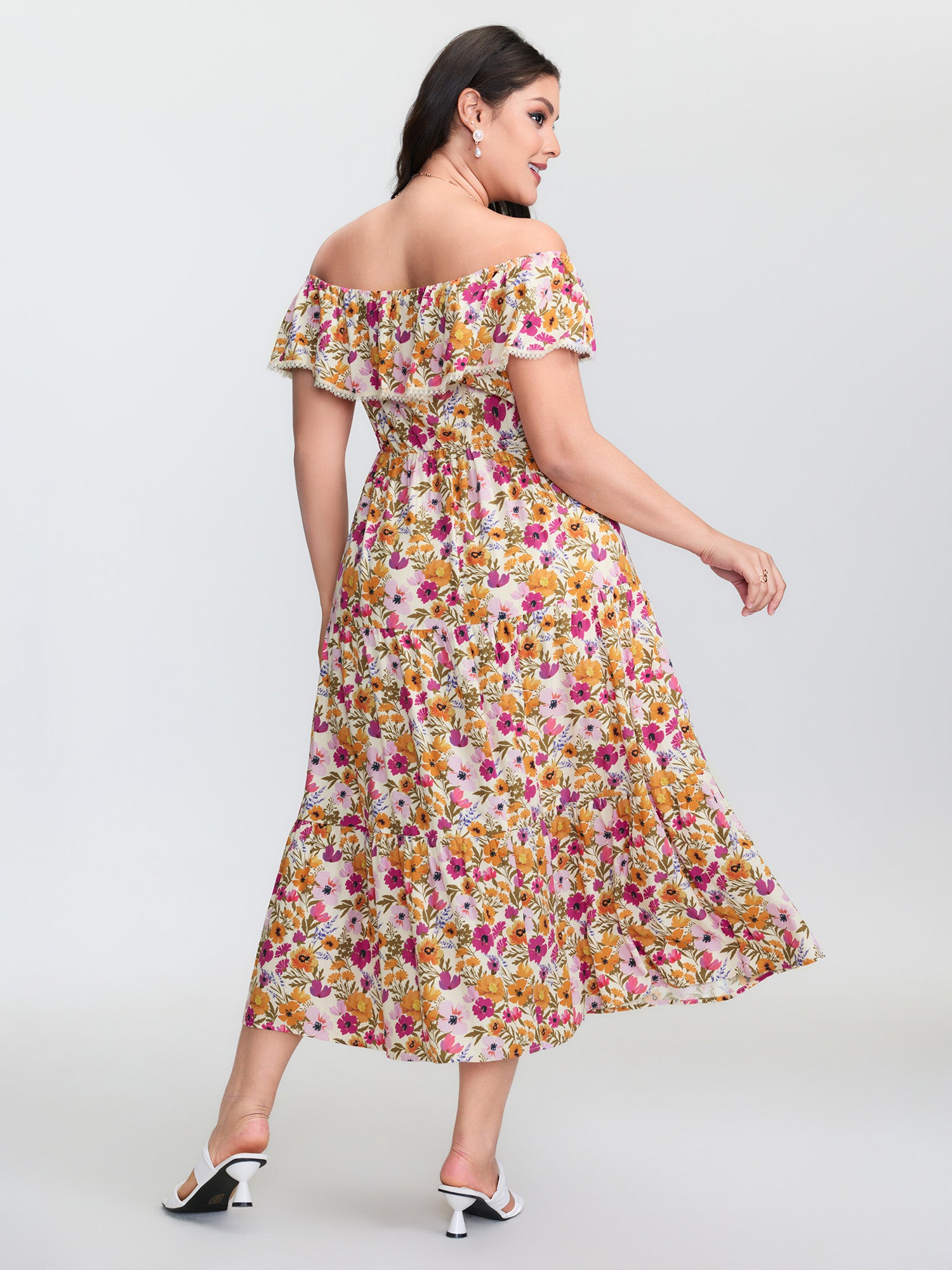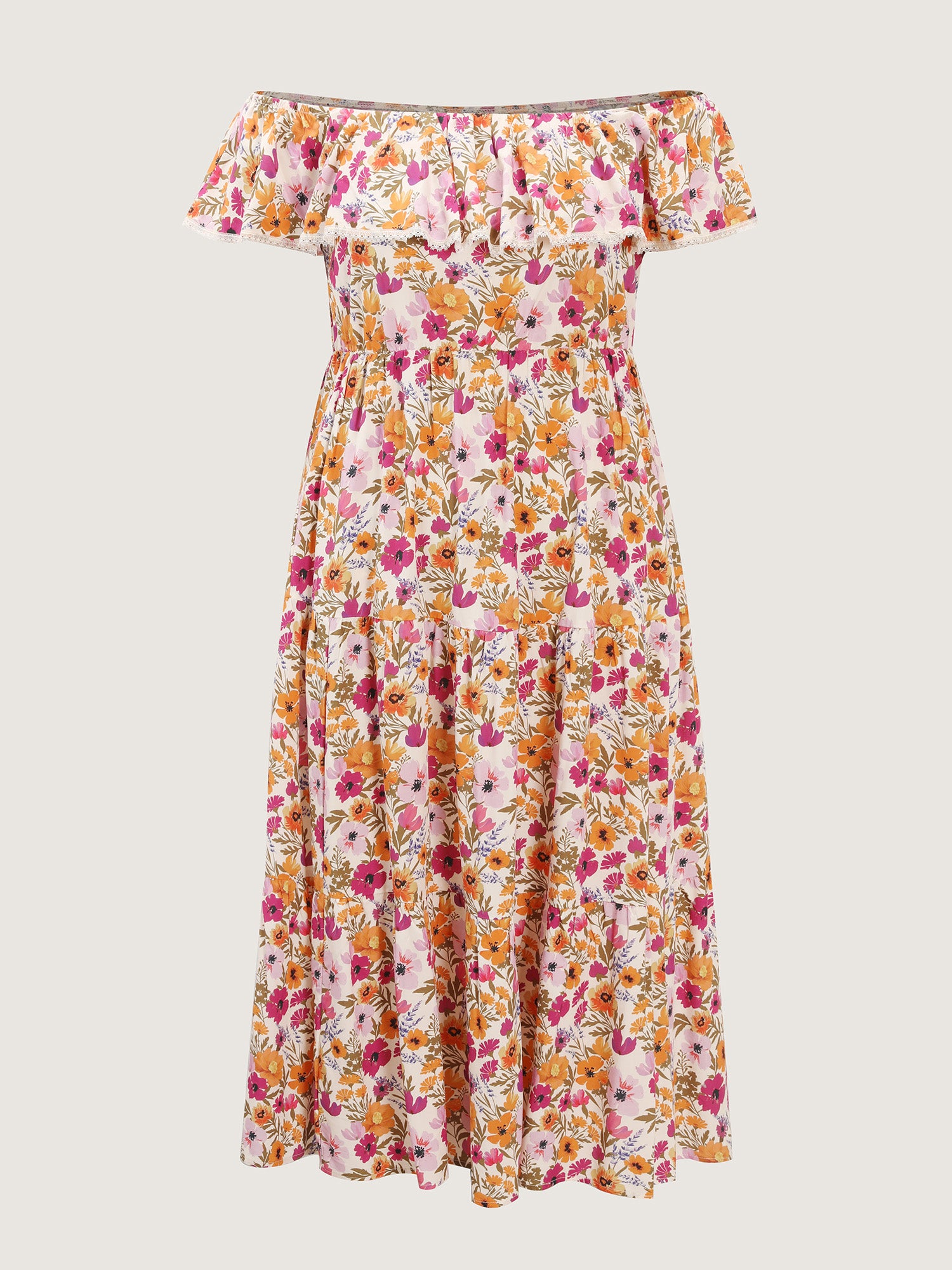 Shop Floral Print Off-Shoulder Stretchy Waist Maxi Dress now and redefine your style with confidence at BloomChic. Tailored for mid and plus-size women. This trendy Dress, sizes 10-30. You can never go wrong with BloomChic Dresses. Color:Multicolor;Style:Romantic;Neckline:Square Neck;Sleeve Type:Sleeveless;Prints:Ditsy floral;Details:Woven ribbon&lace trim, Gathered, Contrast, Patchwork;Pocket:Side seam pocket;Belt:No-belt;Closure Type:Non