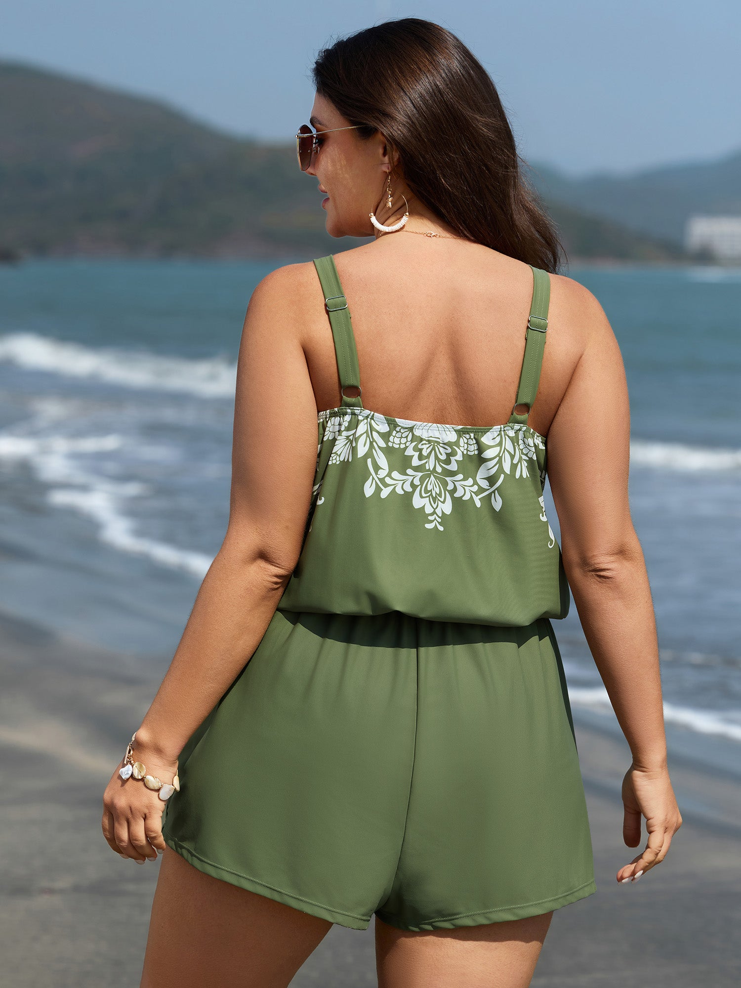 Shop Floral Print Pockets Swim Romper now and redefine your style with confidence at BloomChic. Tailored for mid and plus-size women. This trendy Swimwear Women, sizes 10-30. Color:Sage;Style:Resort;Cup Type:Removable cups;Neckline:U-neck;Sleeve Type:Sleeveless;Prints:Floral;Pocket:Slanted pocket;Belt:No-belt;Chest pad:Removable Padding;Lining:Lining;Closure Type:Non;Structural function:Adaptive-Fit,Full Coverage;Swimsuit types:One-Piece Boyleg Swimsuit;Functional Fabric:UPF 50 Sun Protection,Chlorine Resistant