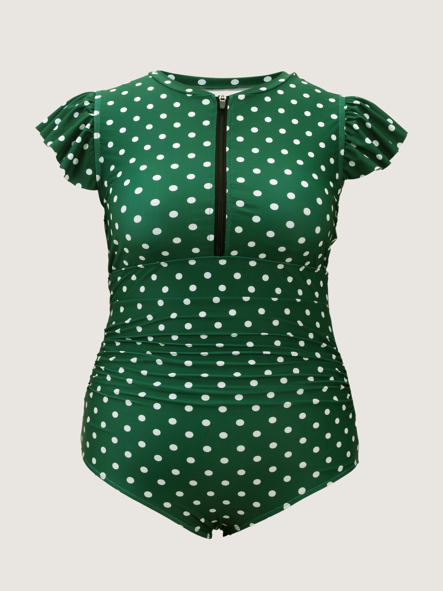 Shop Polka Dots Flutter Sleeve One-Piece Swimsuit now and redefine your style with confidence at BloomChic. Tailored for mid and plus-size women. This trendy Swimwear Women, sizes 10-30. Color:Dark Green;Style:Resort;Cup Type:Fixed cups;Coverage:Full;Functional Fabric:UPF 50 Sun Protection,Chlorine Resistant;Neckline:Round Neck;Sleeve Type:Ruffle Sleeve;Prints:Polka dots;Pocket:No-pocket;Belt:No-belt;Chest pad:Non-removable padding;Lining:Lining;Closure Type:Zipper;Structural function:Tummy-Sculpt,Adaptive-Fit,Bust-Lift
