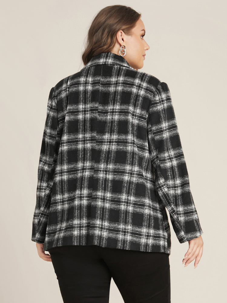Shop Plaid Flap Pocket Button Up Suit Collar Blazer now and redefine your style with confidence at BloomChic. Tailored for mid and plus-size women. This trendy Outerwear Women, sizes 10-30. Season:Winter;Color:Black;Neckline:Suit Collar;Sleeve Type:Regular Sleeve;Details:Button;Pocket:It is perfectly sized to carry a phone.;Belt:No-belt;Lining:Lining