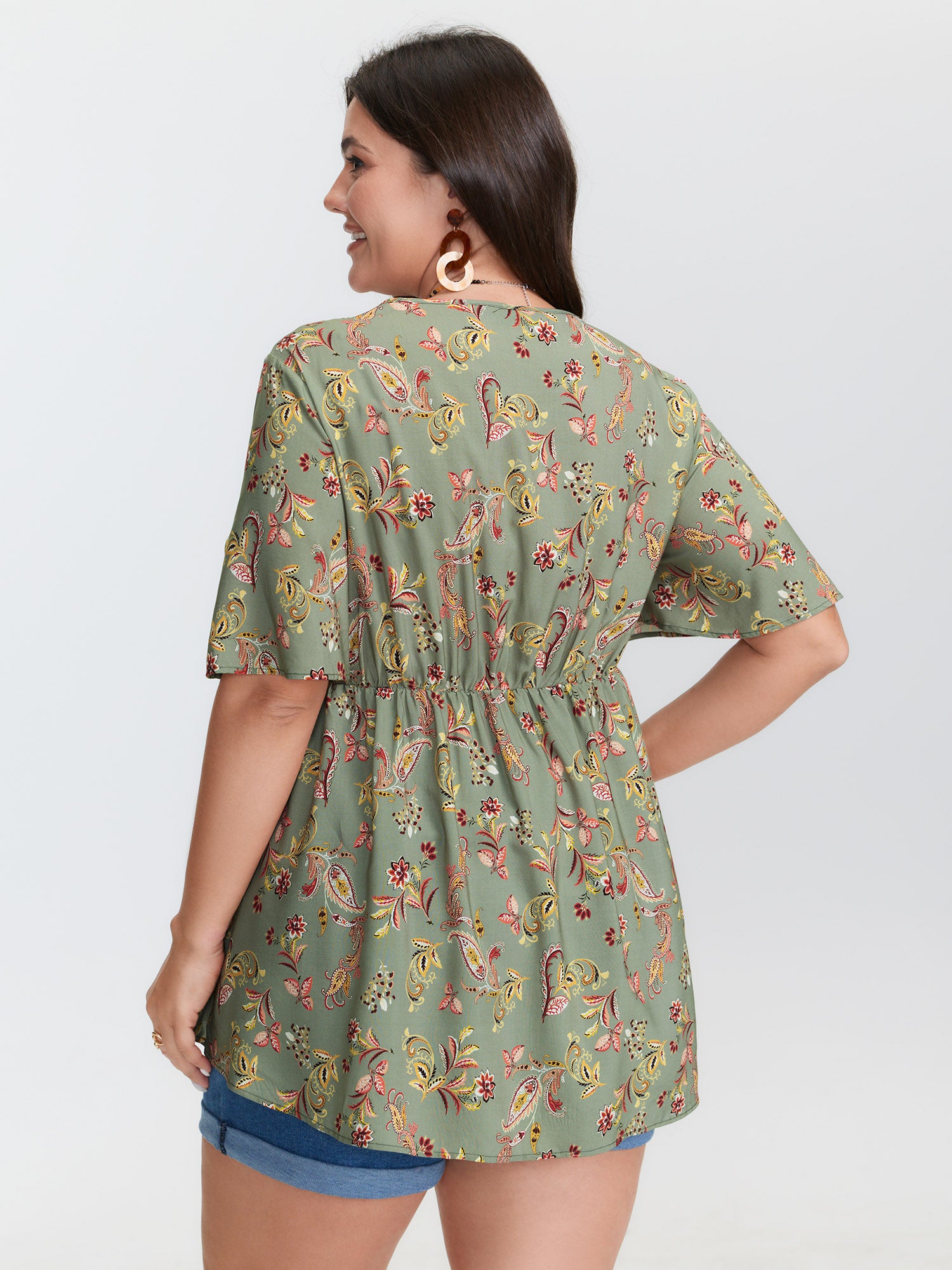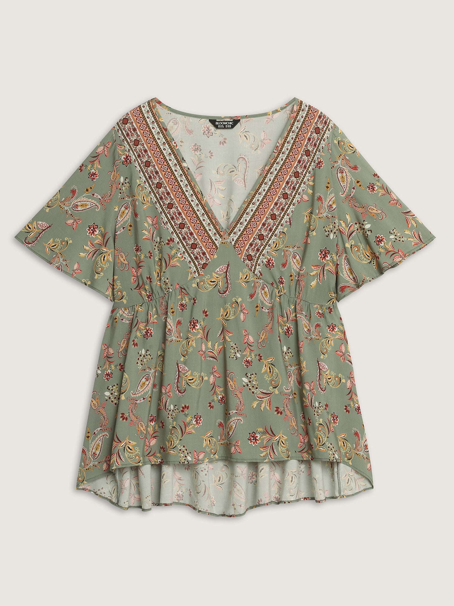 Shop Breezy Floral Print Stretchy Waist Blouse now and redefine your style with confidence at BloomChic. Tailored for mid and plus-size women. This trendy Tops Women, sizes 10-30. Color:Multicolor;Style:Resort;Prints:Bohemian print;Neckline:V-neck;Sleeve Type:Regular Sleeve;Pocket:No-pocket