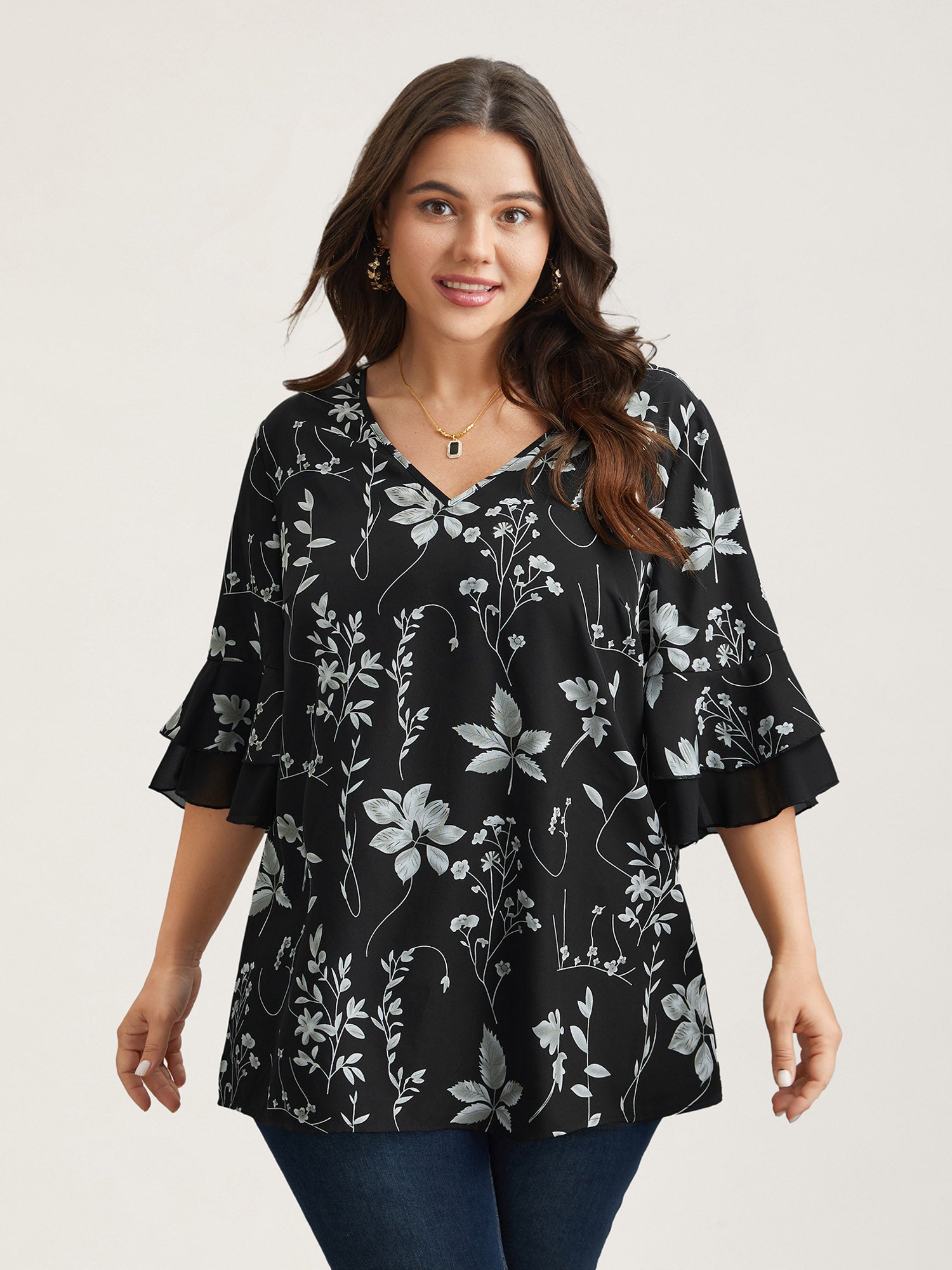 Shop Floral Print Ruffled V-Neck Shirt at BloomChic. Plus Size Clothing & Plus Size Blouses. BloomChic is a digital-first fashion and lifestyle destination for modern women sizes 10-30.