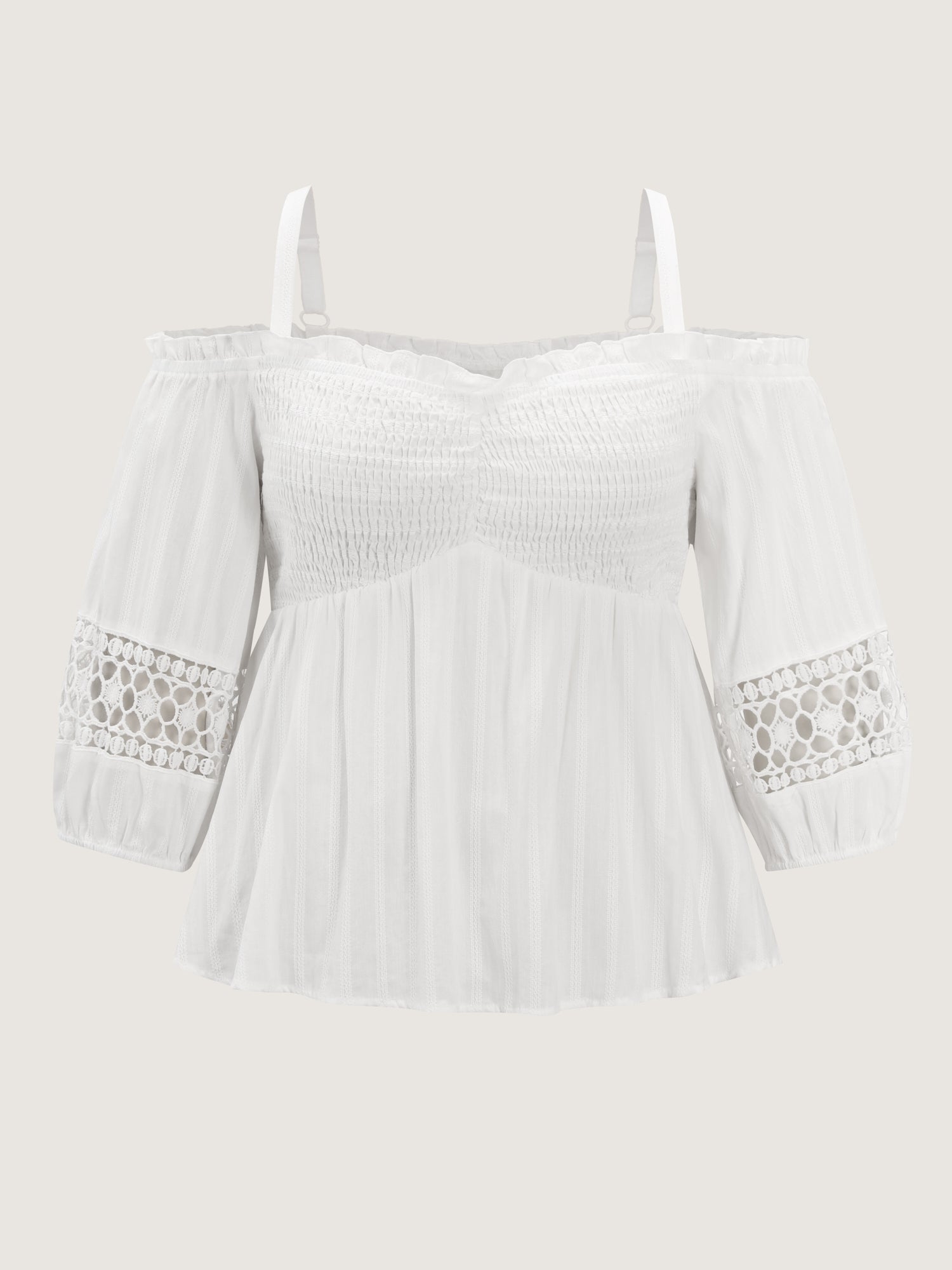 Shop Cotton Off-Shoulder Lace Trim Sleeve Blouse now and redefine your style with confidence at BloomChic. Tailored for mid and plus-size women. This trendy Tops Women, sizes 10-30. Color:Original White;Style:Resort;Prints:Synthetic texture;Neckline:Square Neck;Sleeve Type:Drop shoulder sleeve;Pocket:No-pocket