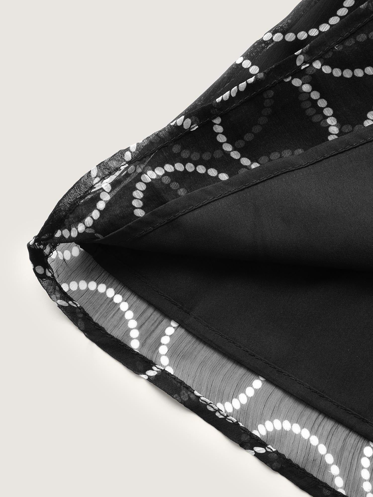 Polka Dot Mock Neck Mesh Patchwork Blouse