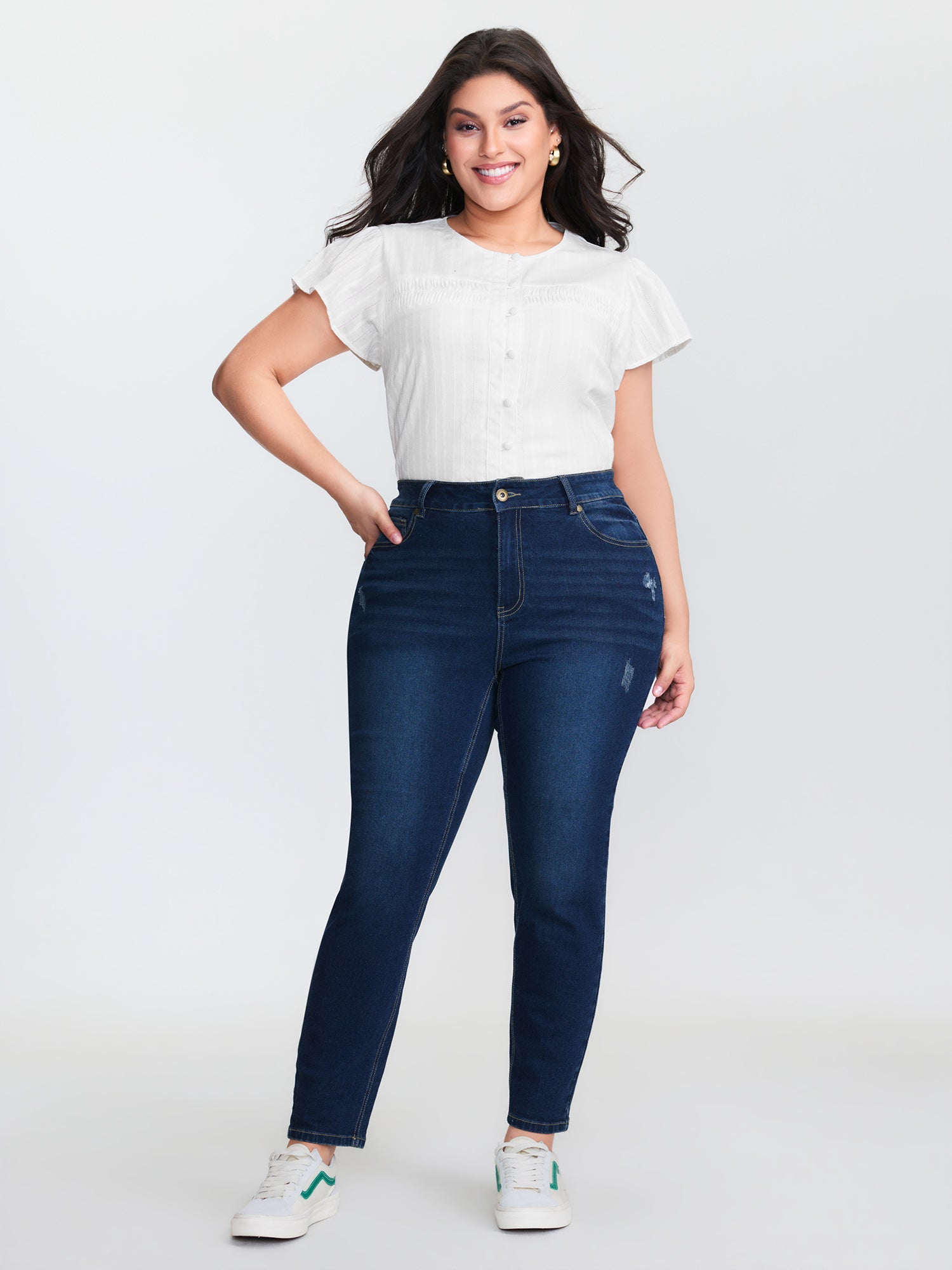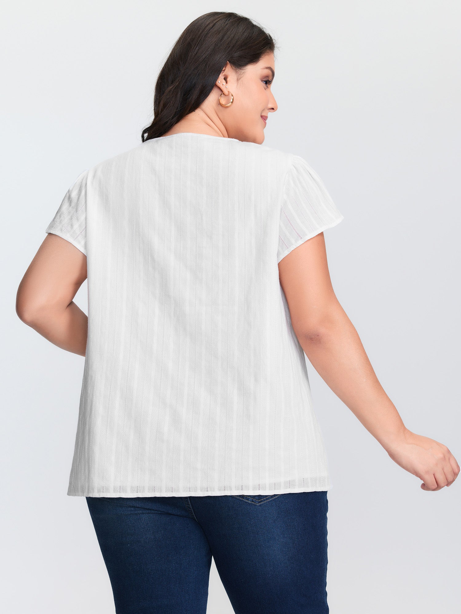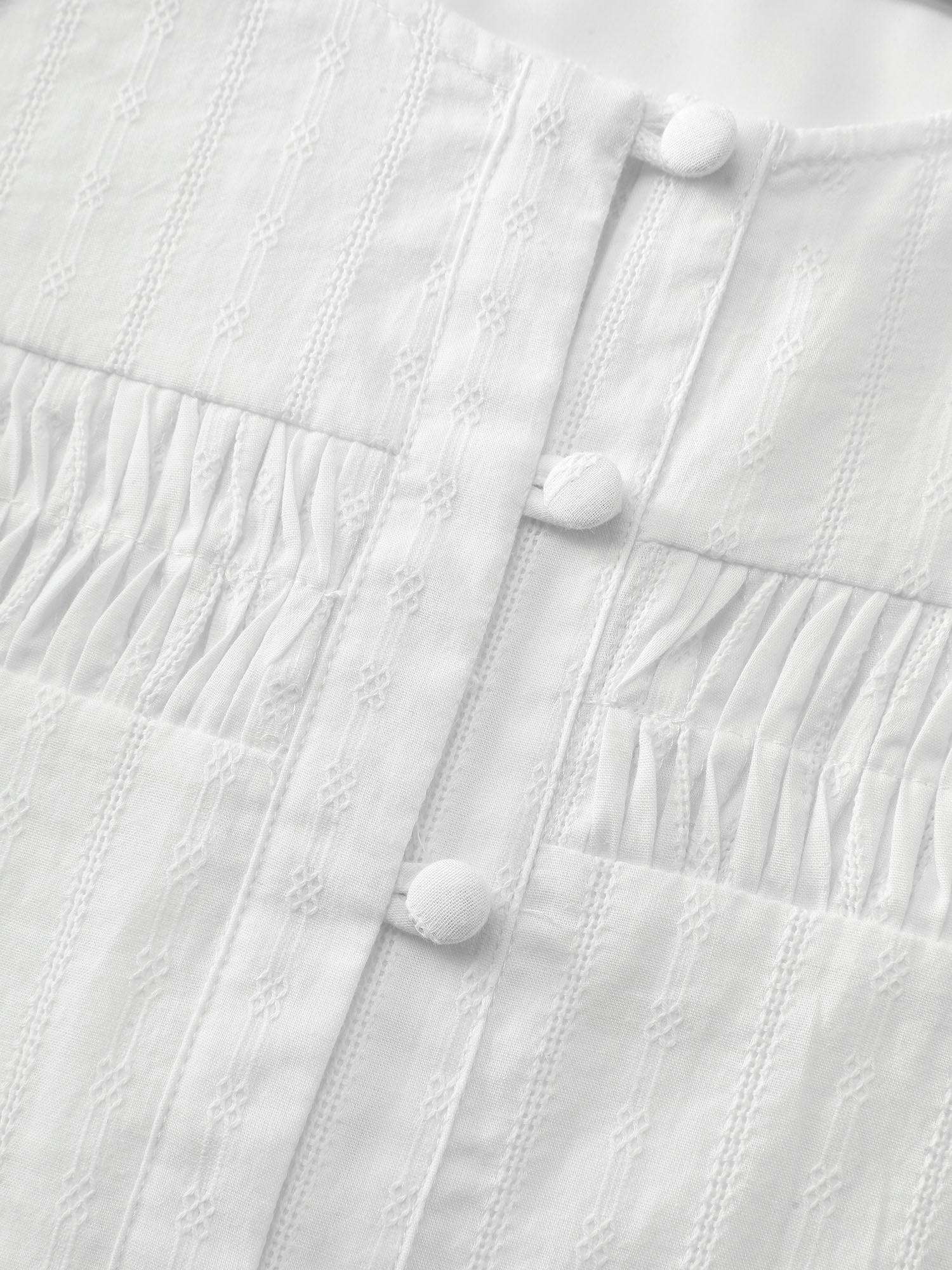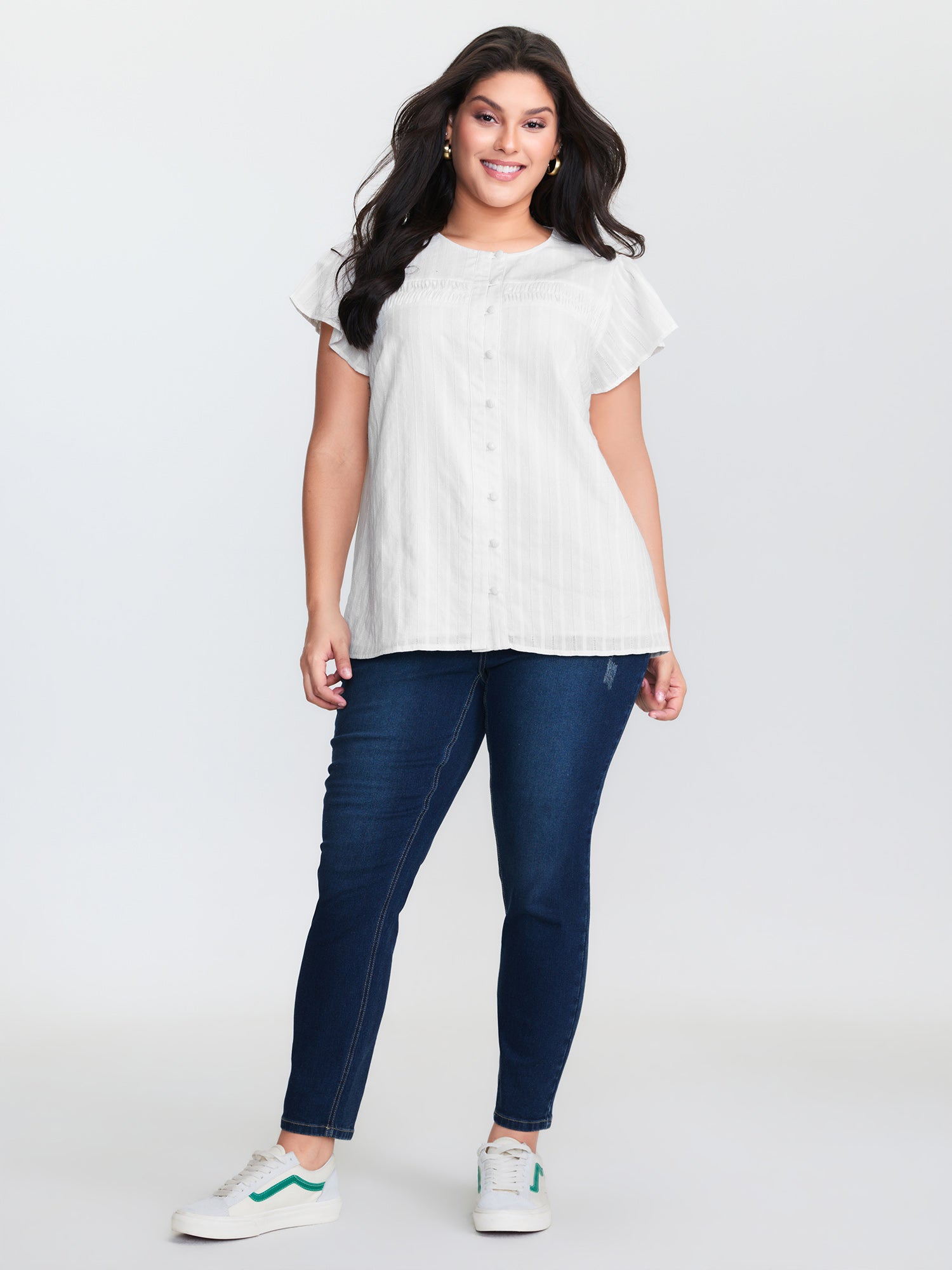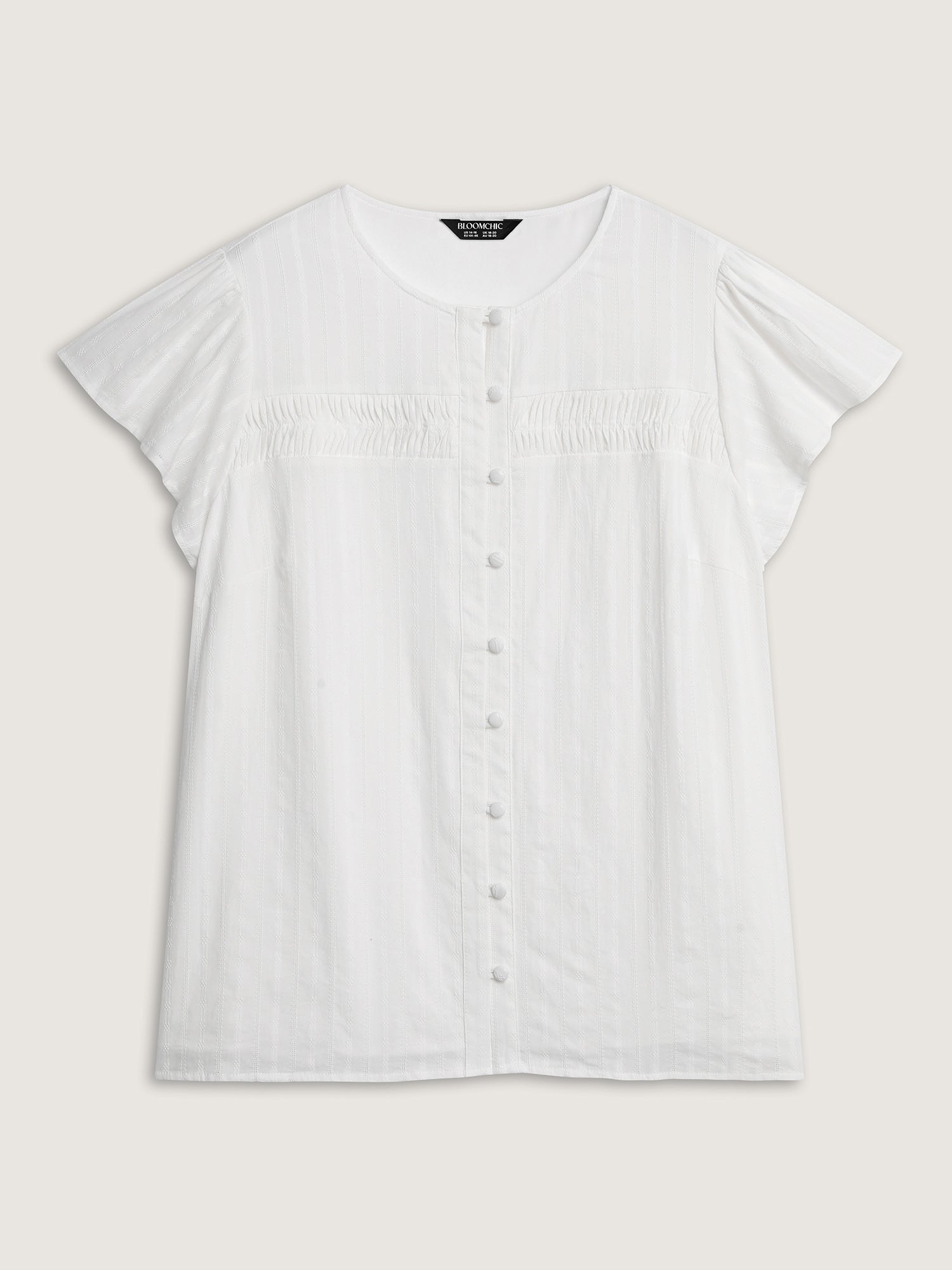 Shop Pure Cotton Pleated Button-Down Shirt now and redefine your style with confidence at BloomChic. Tailored for mid and plus-size women. This trendy Tops Women, sizes 10-30. Color:Original White;Style:Leisure;Prints:Synthetic texture;Neckline:Round Neck;Sleeve Type:Ruffle Sleeve;Details:Shirred, Button, Texture, Gathered;Pocket:No-pocket