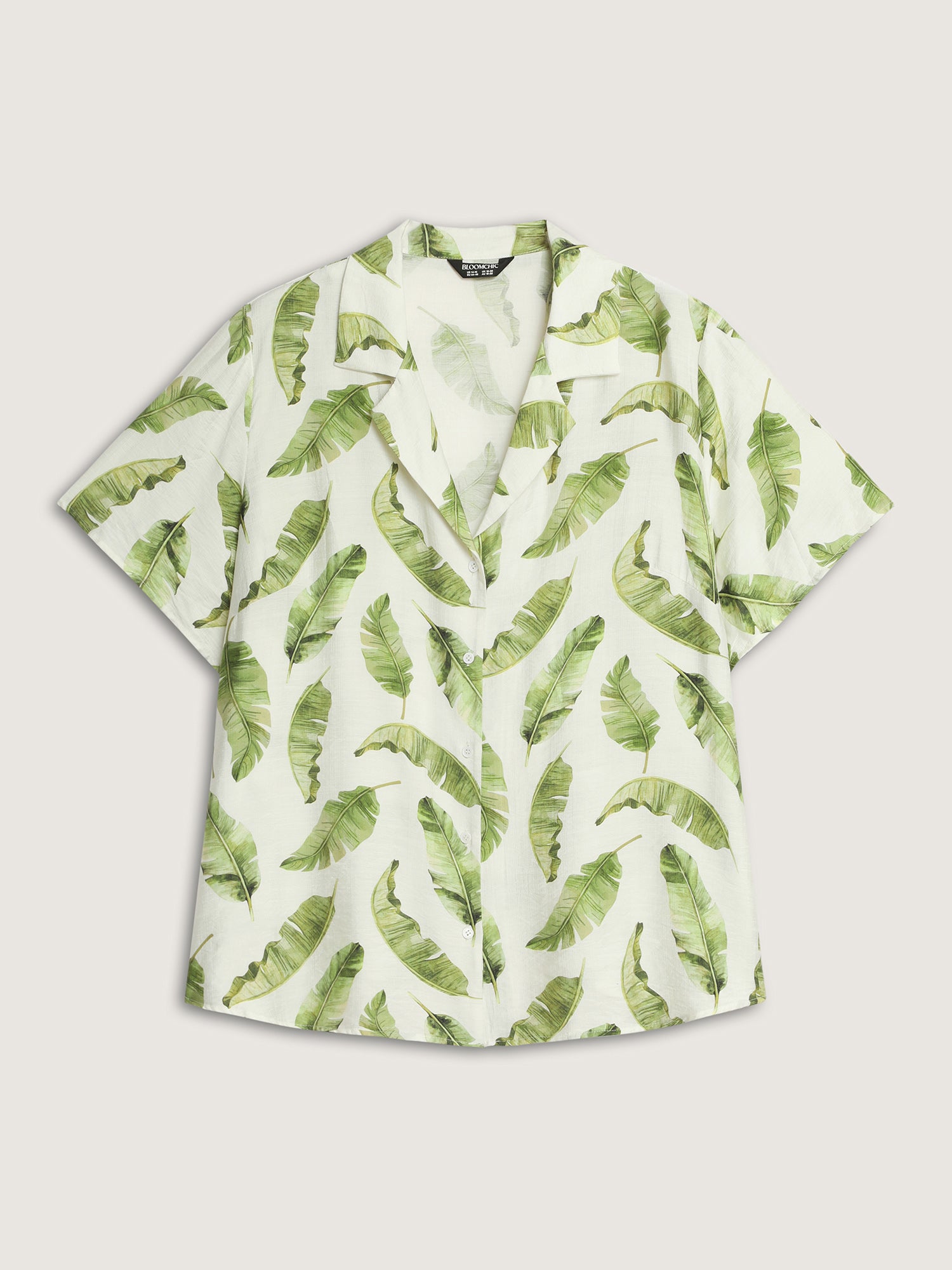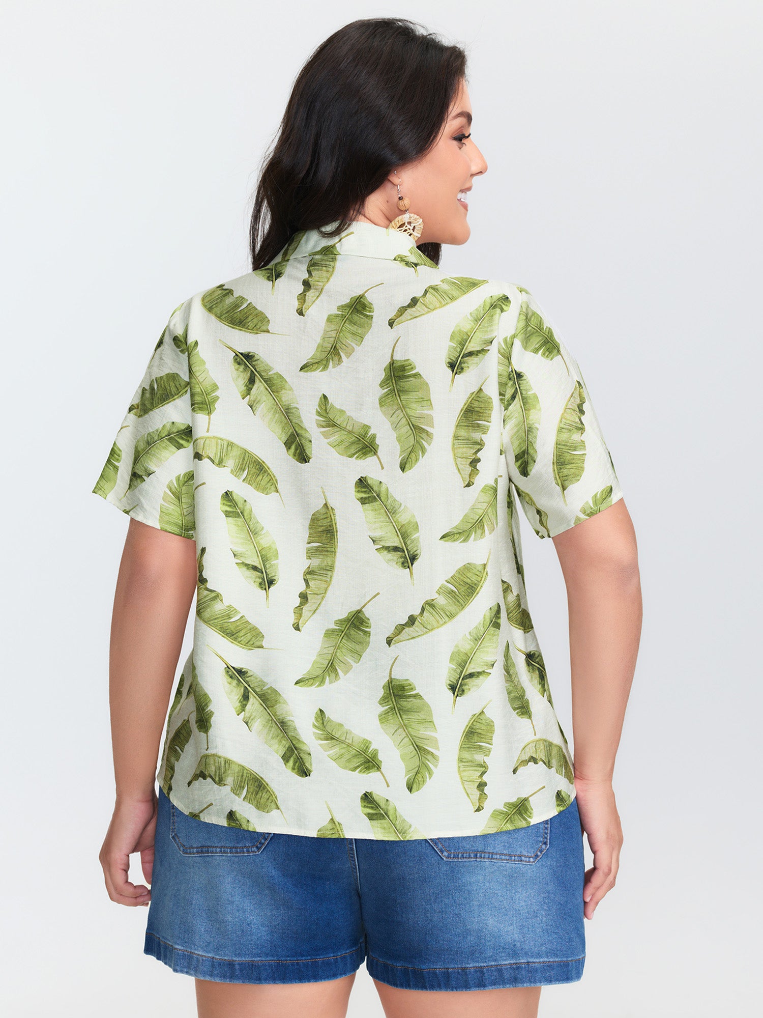 Shop Tropical Leaf Print Button-Down Blouse now and redefine your style with confidence at BloomChic. Tailored for mid and plus-size women. This trendy Tops Women, sizes 10-30. Color:Multicolor;Style:Resort;Prints:Tropical;Neckline:Shirt collar;Sleeve Type:Bell Sleeve;Pocket:No-pocket