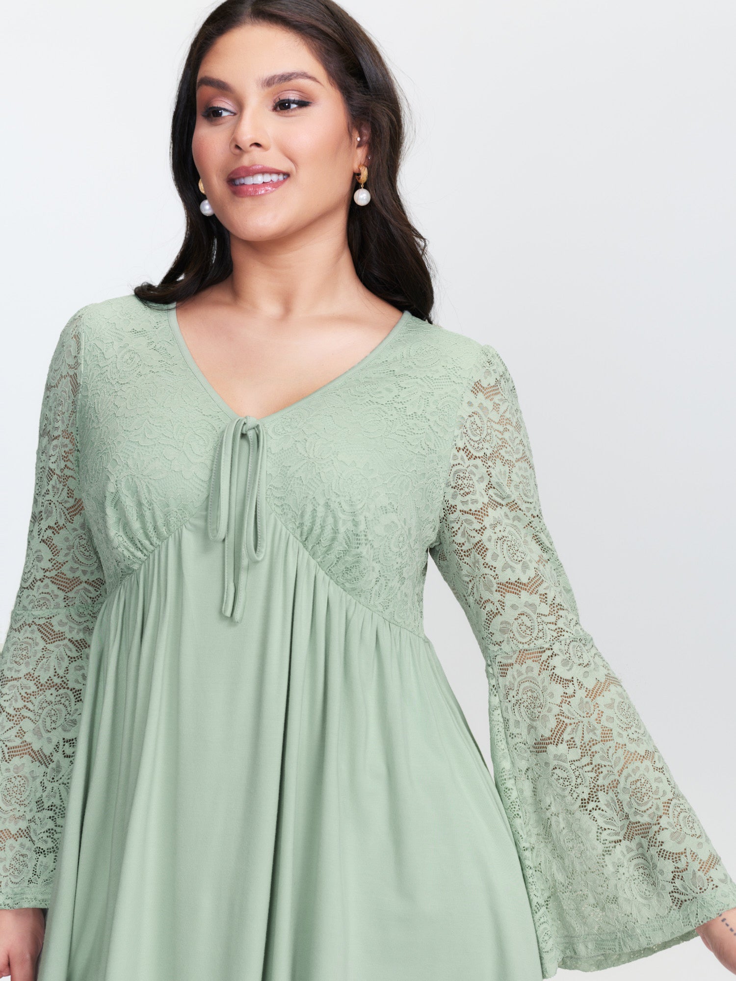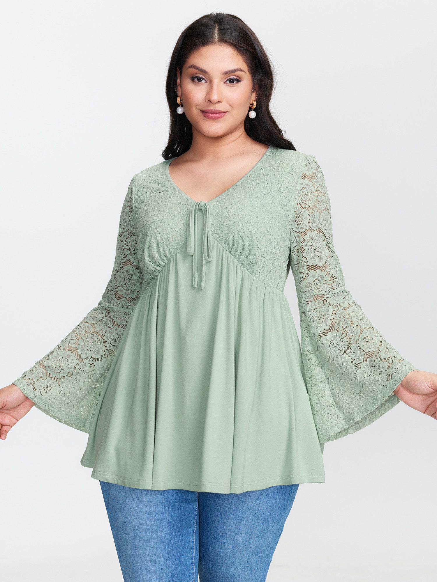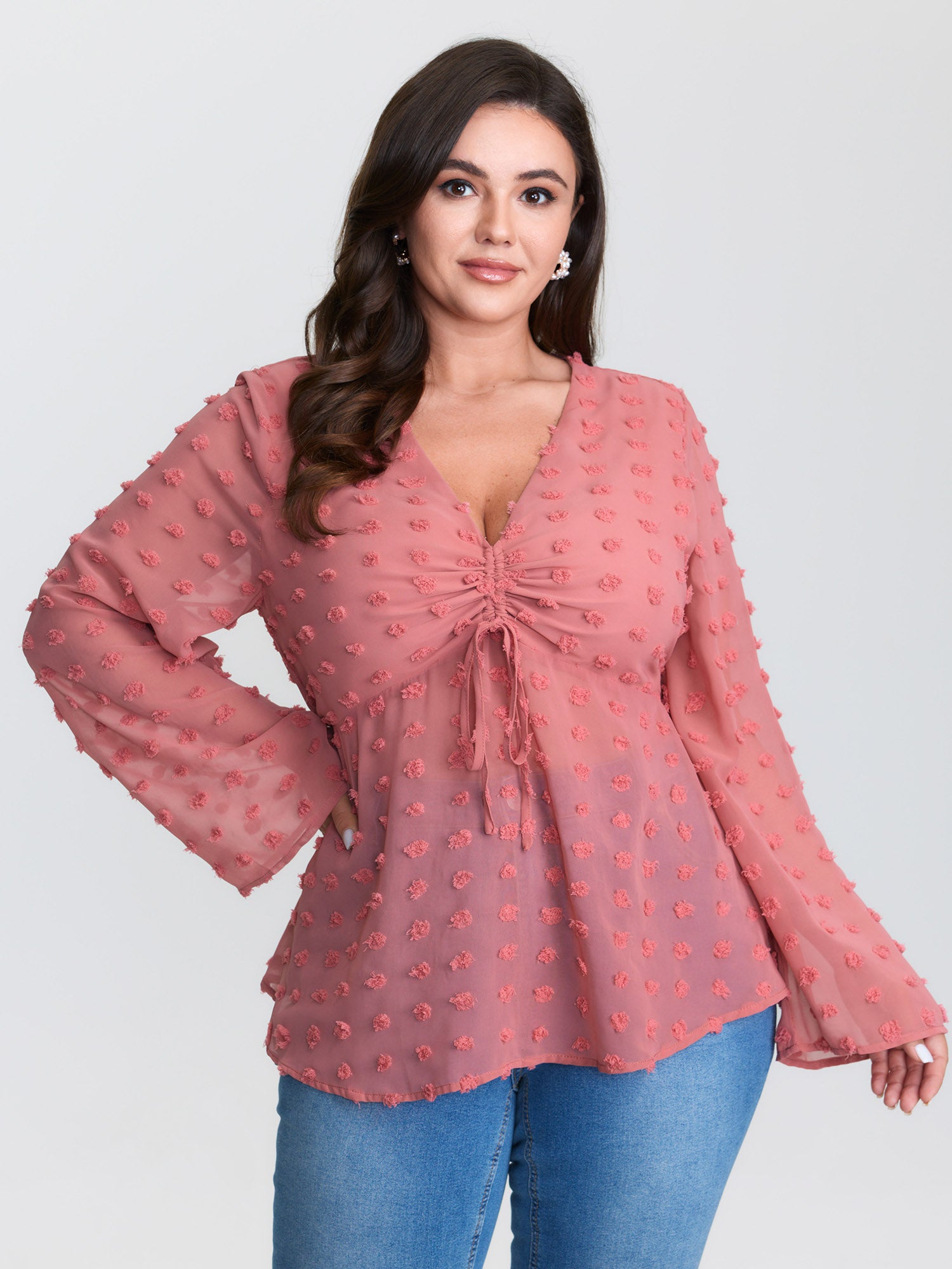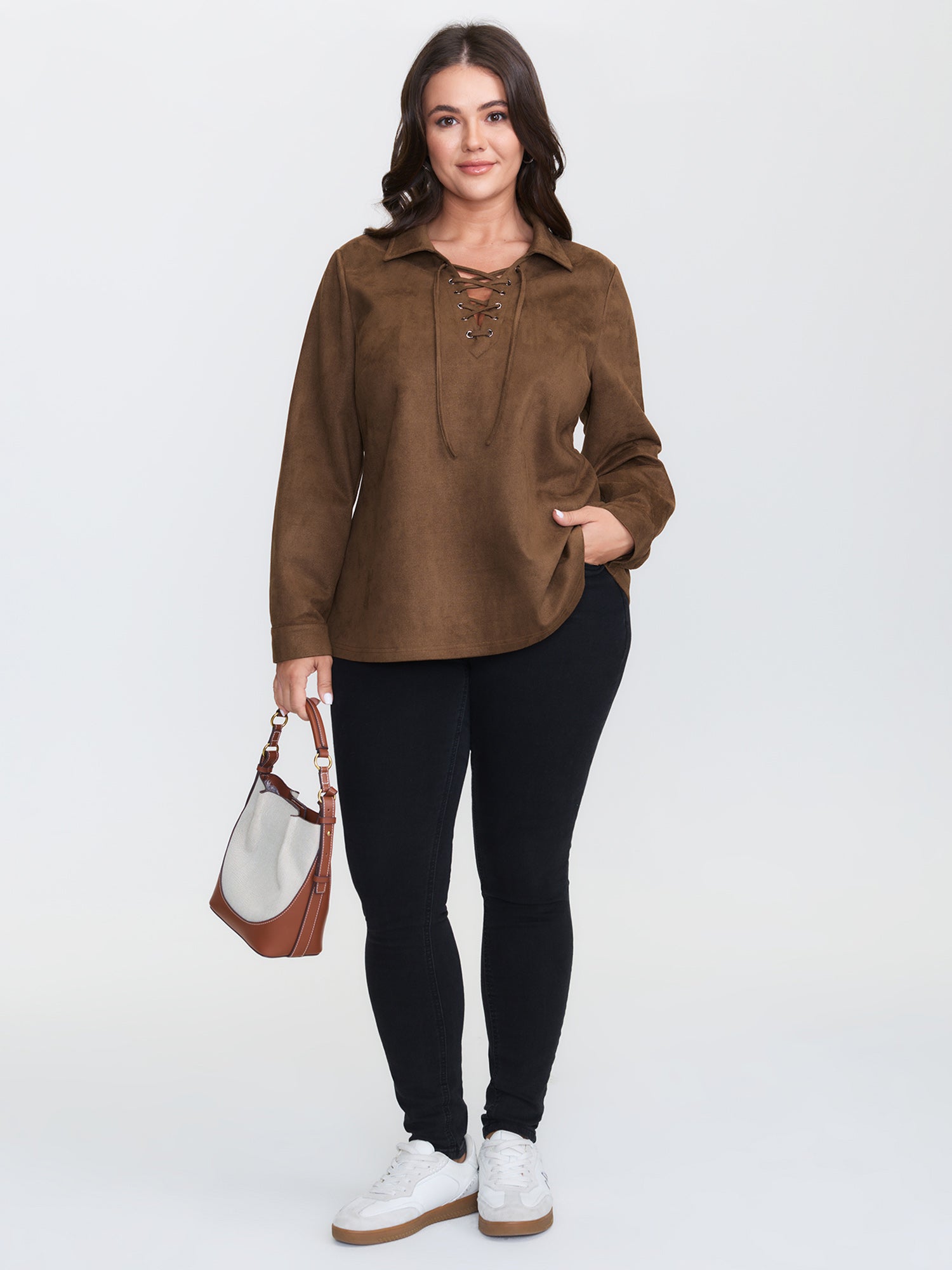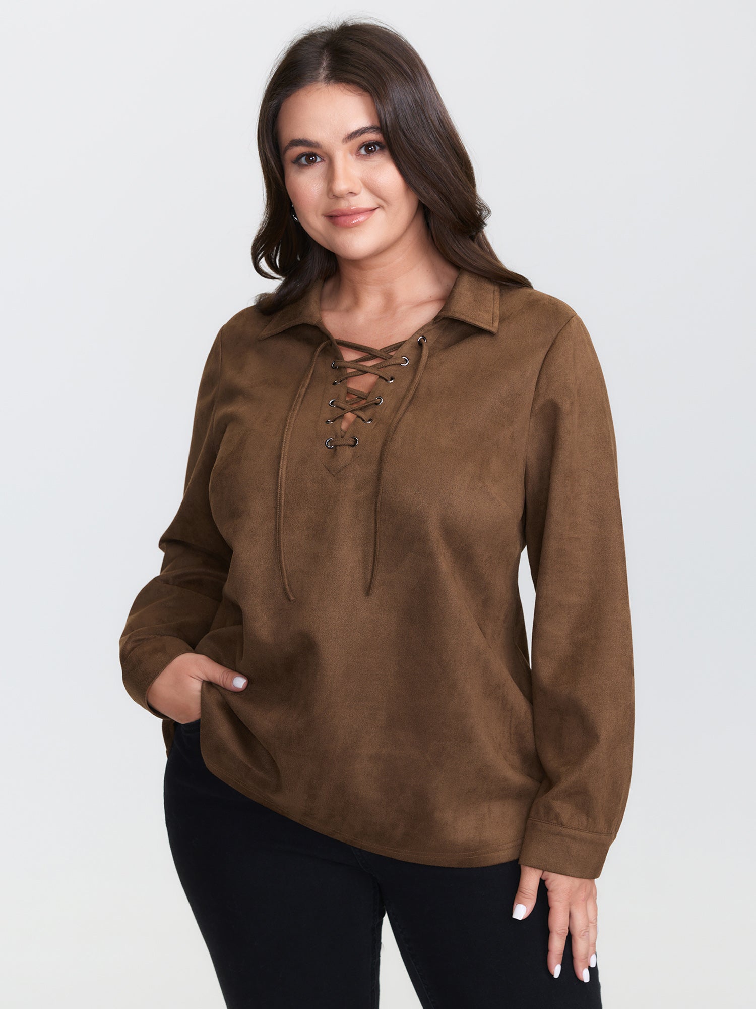 Suede Cross-Tie Neckline Curvy-Fit Blouse