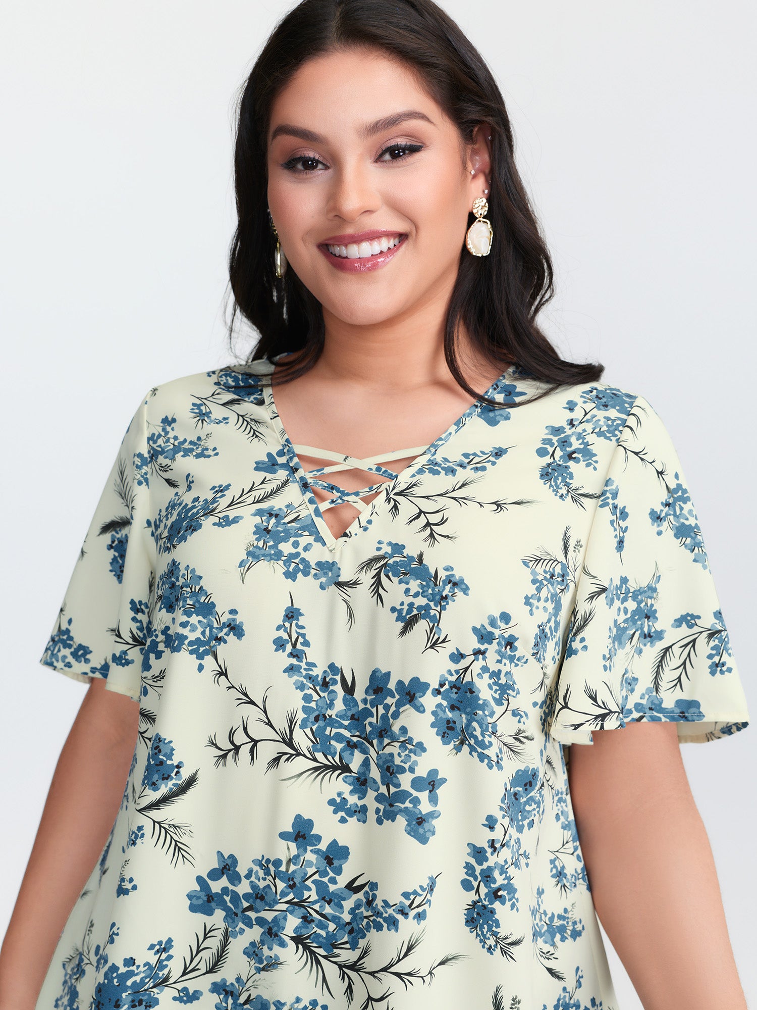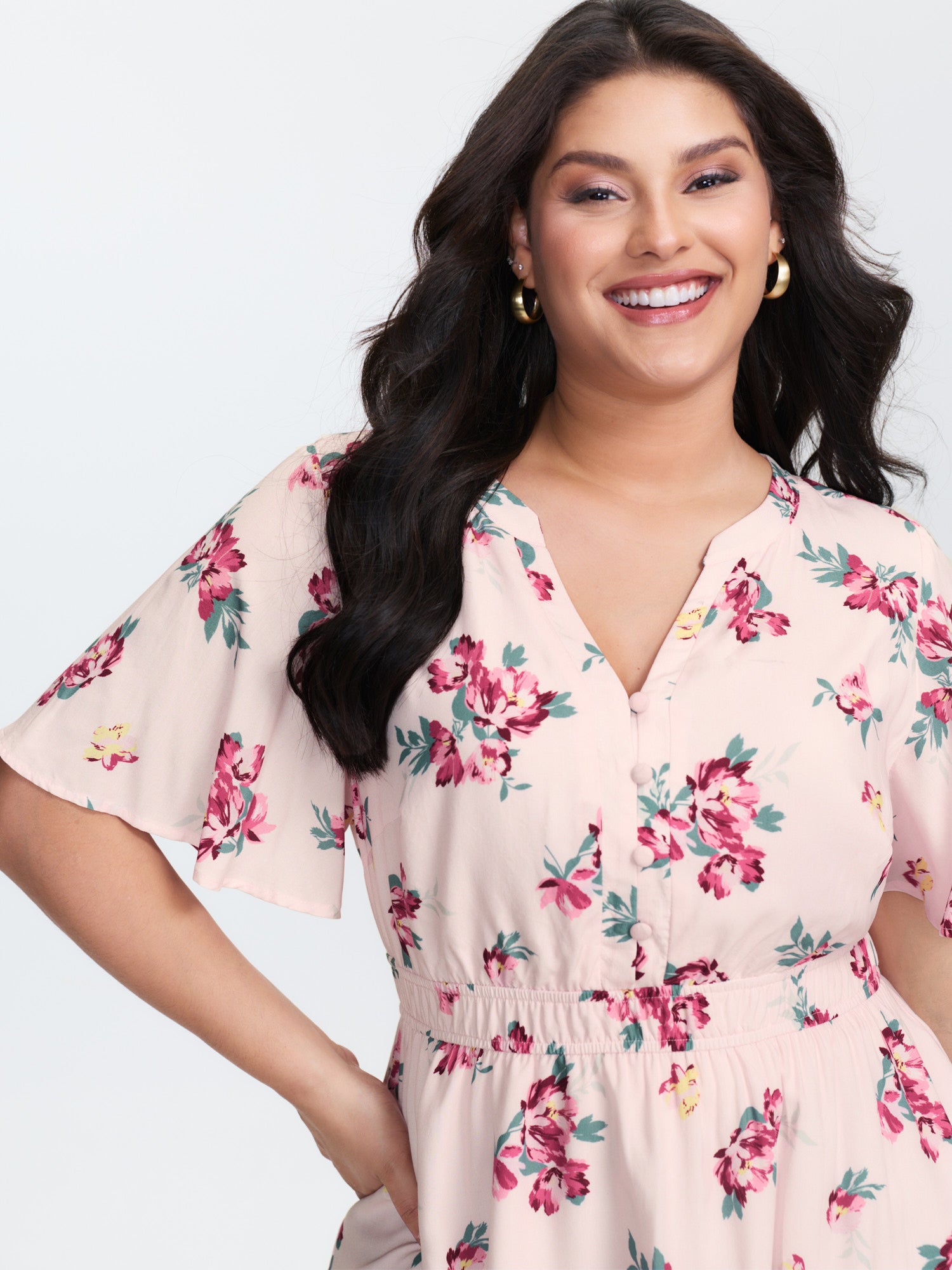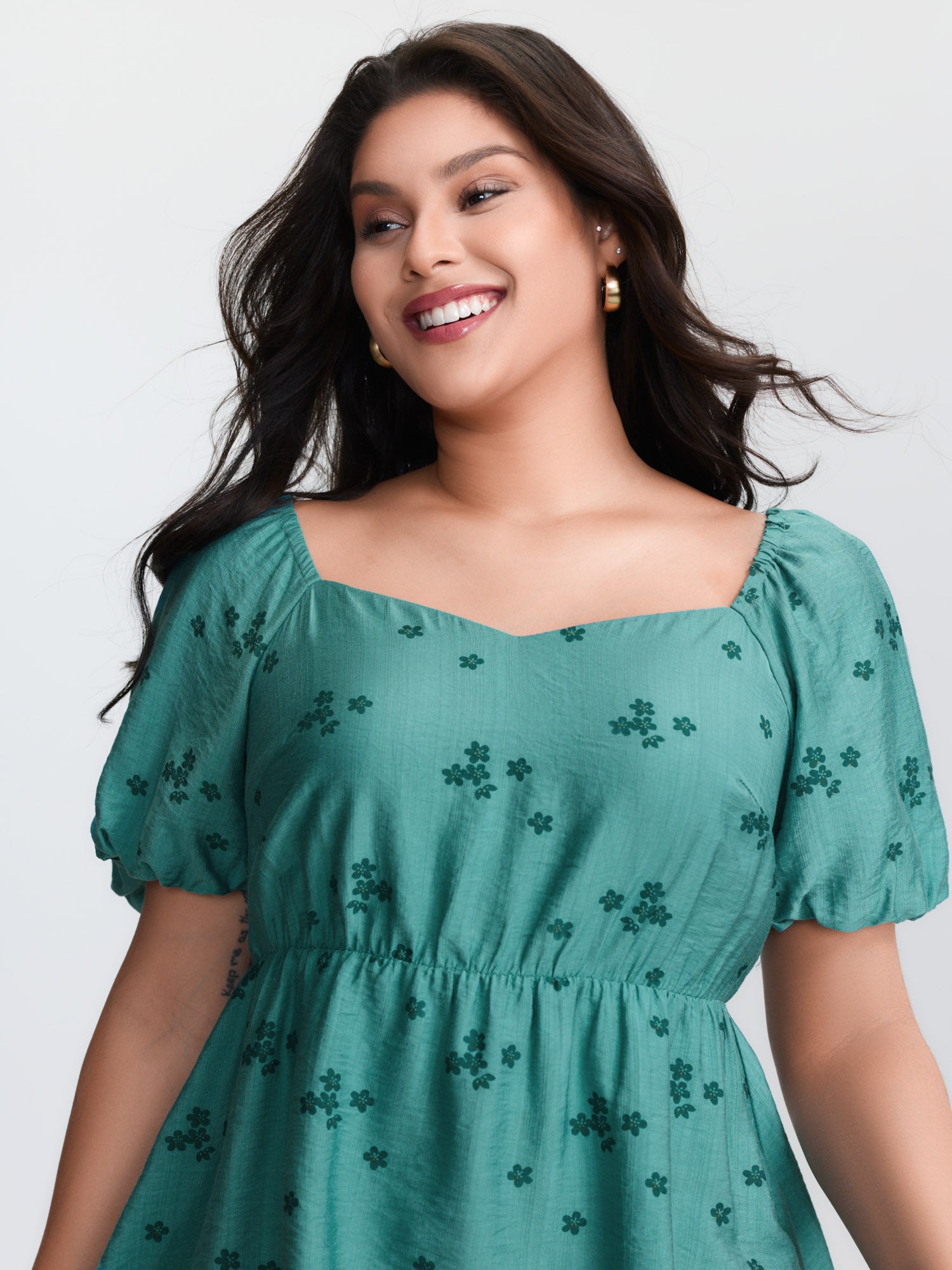 Ditsy Floral Print Curvy Hem Blouse