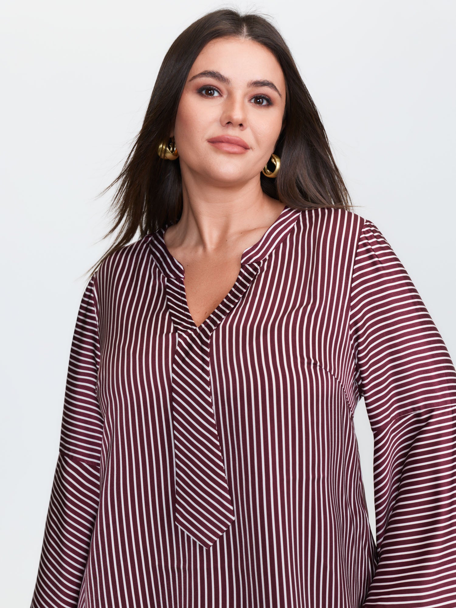 Striped Flared Sleeve Relaxed-Fit Blouse