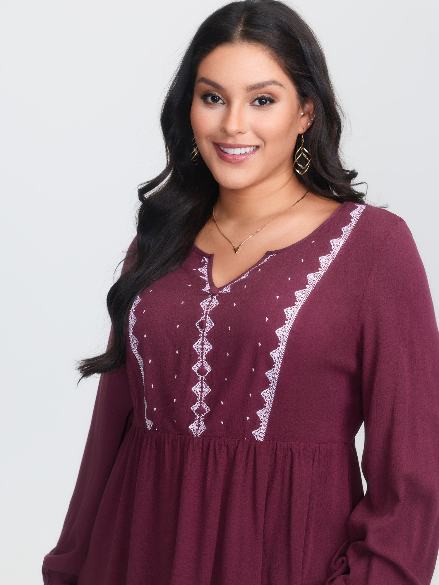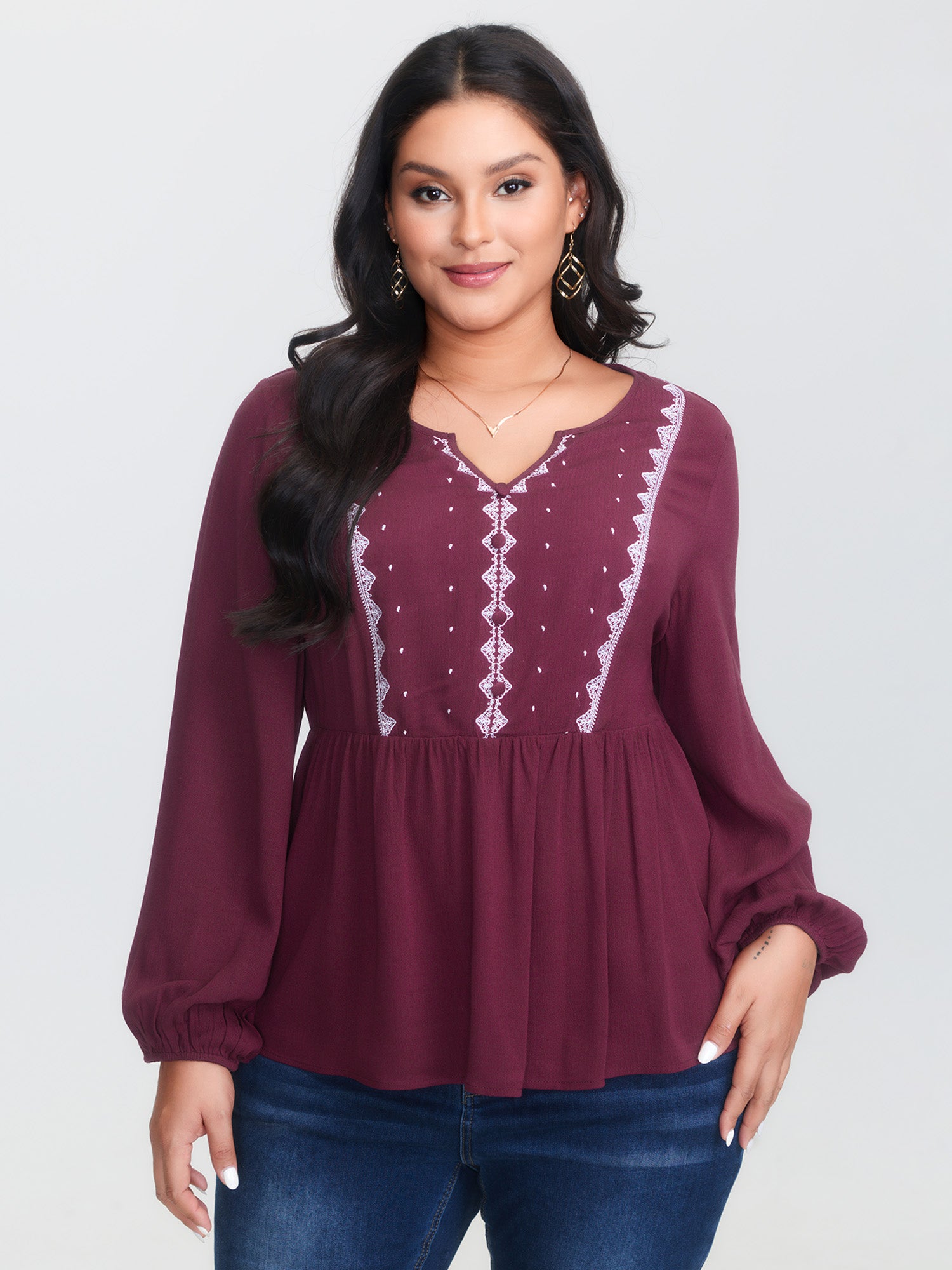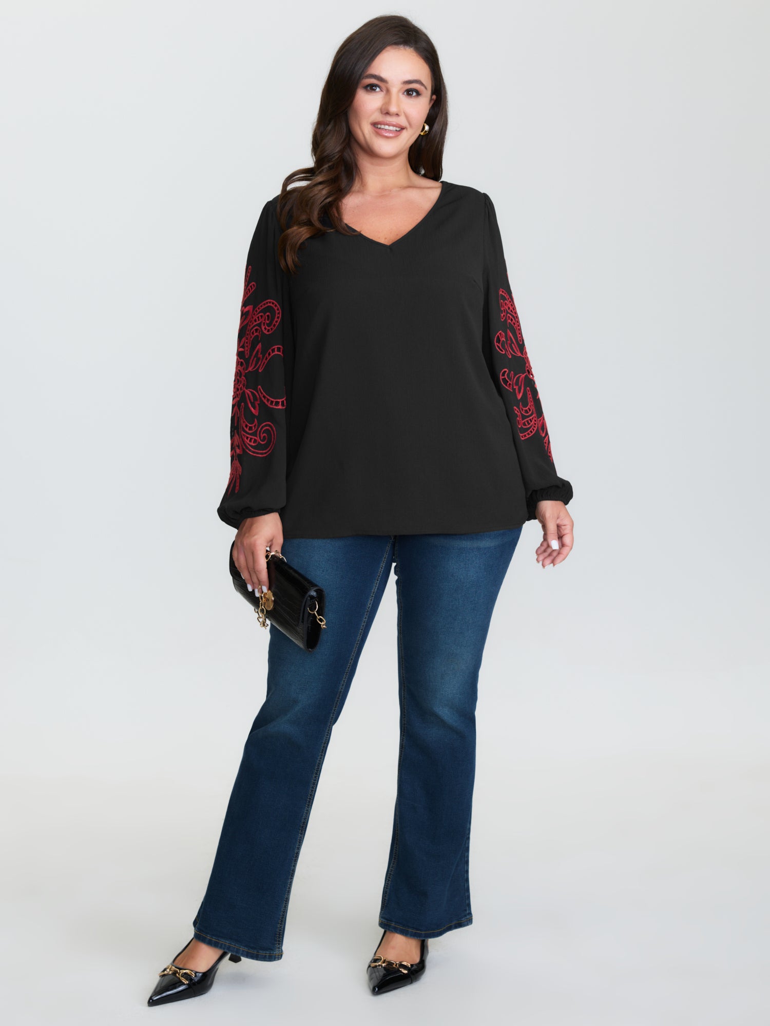 Cut-Out Embroidered Sleeve Blouse