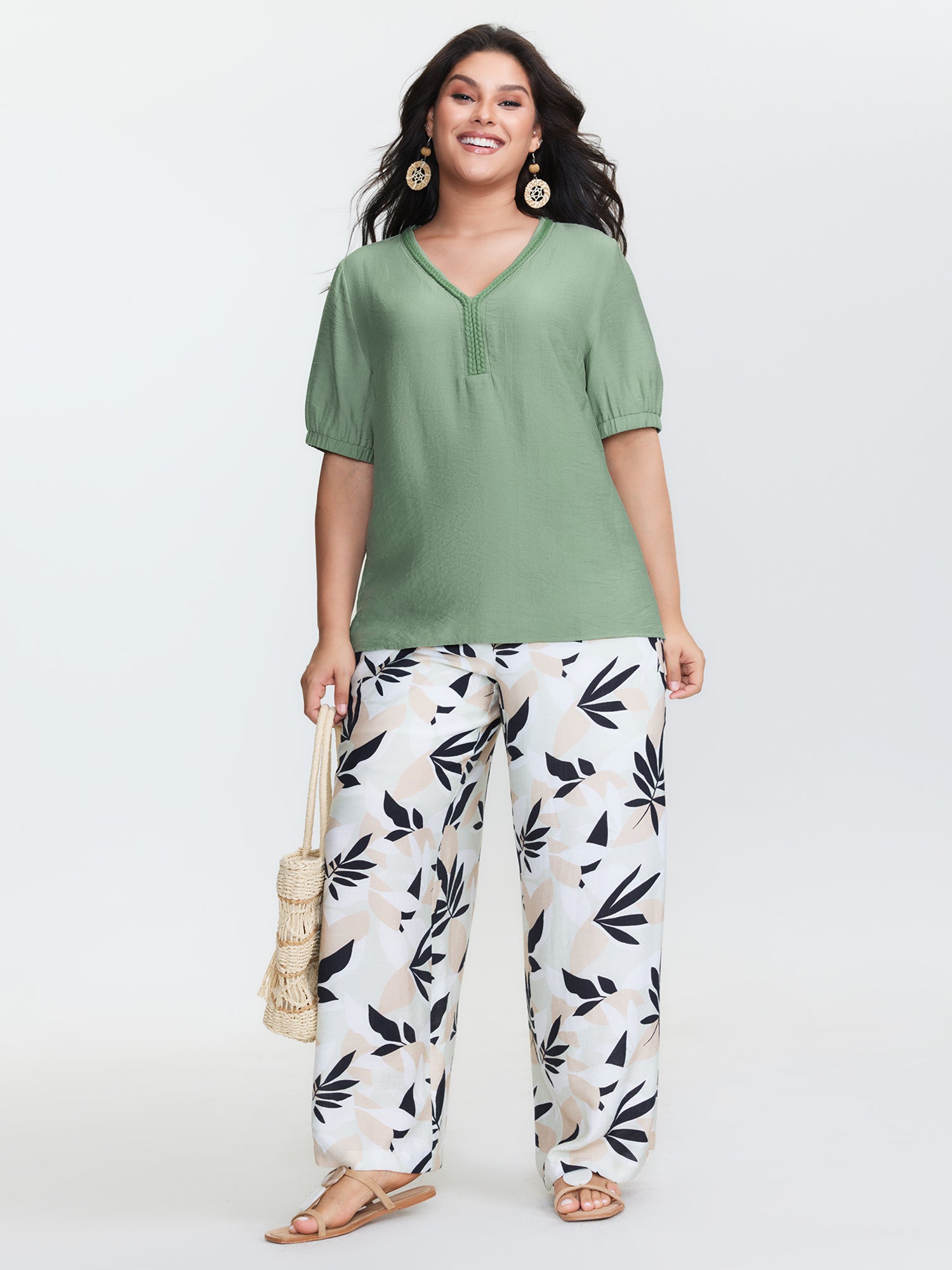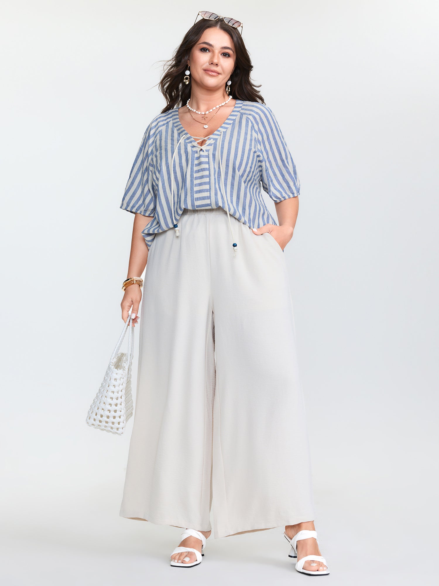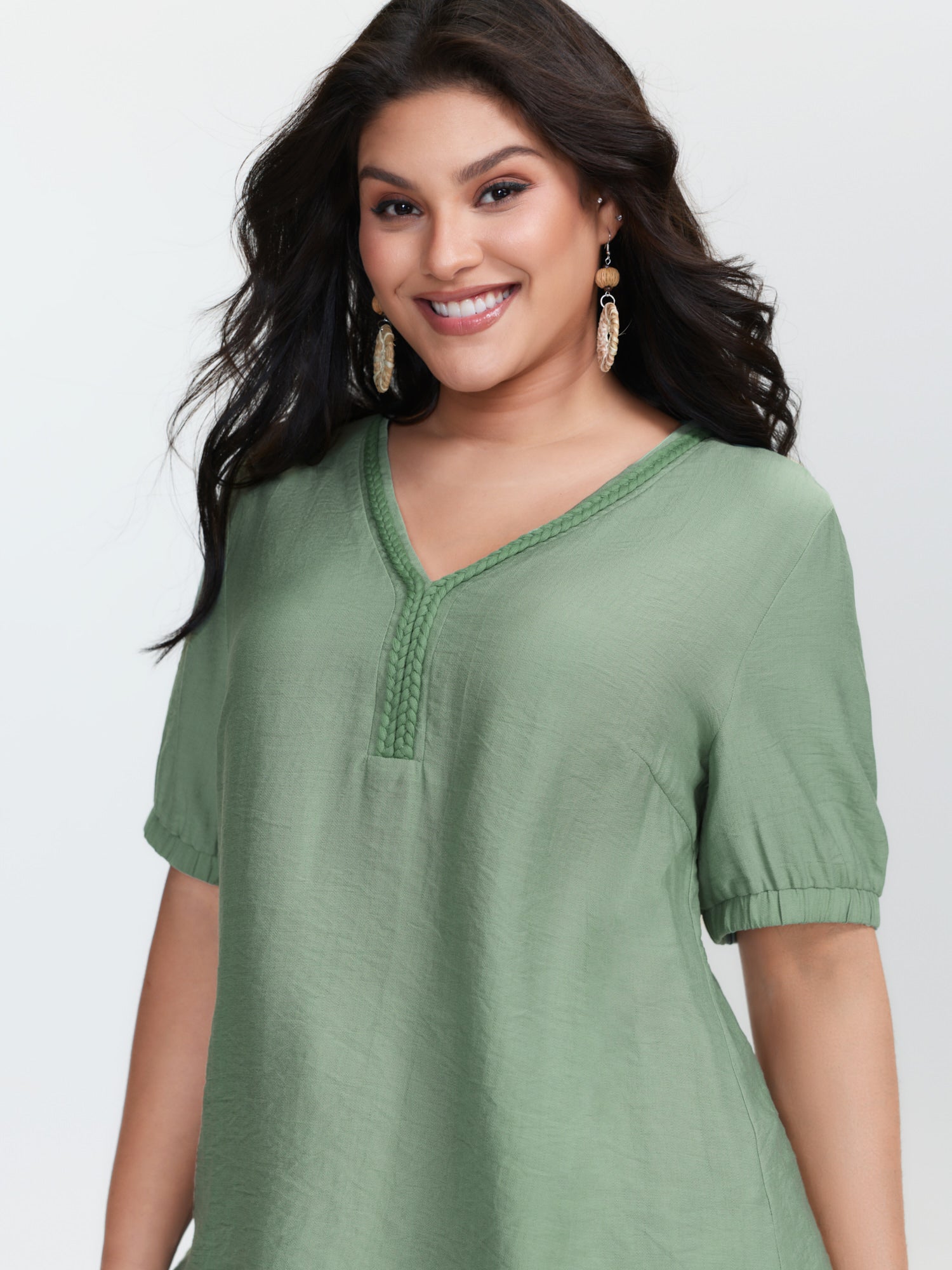 Supersoft Contrast Webbing V-Neck Blouse