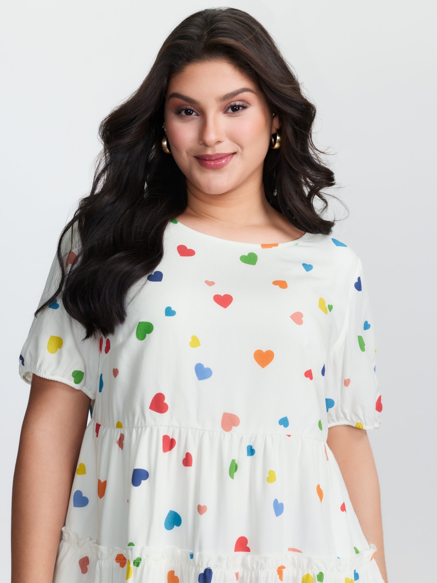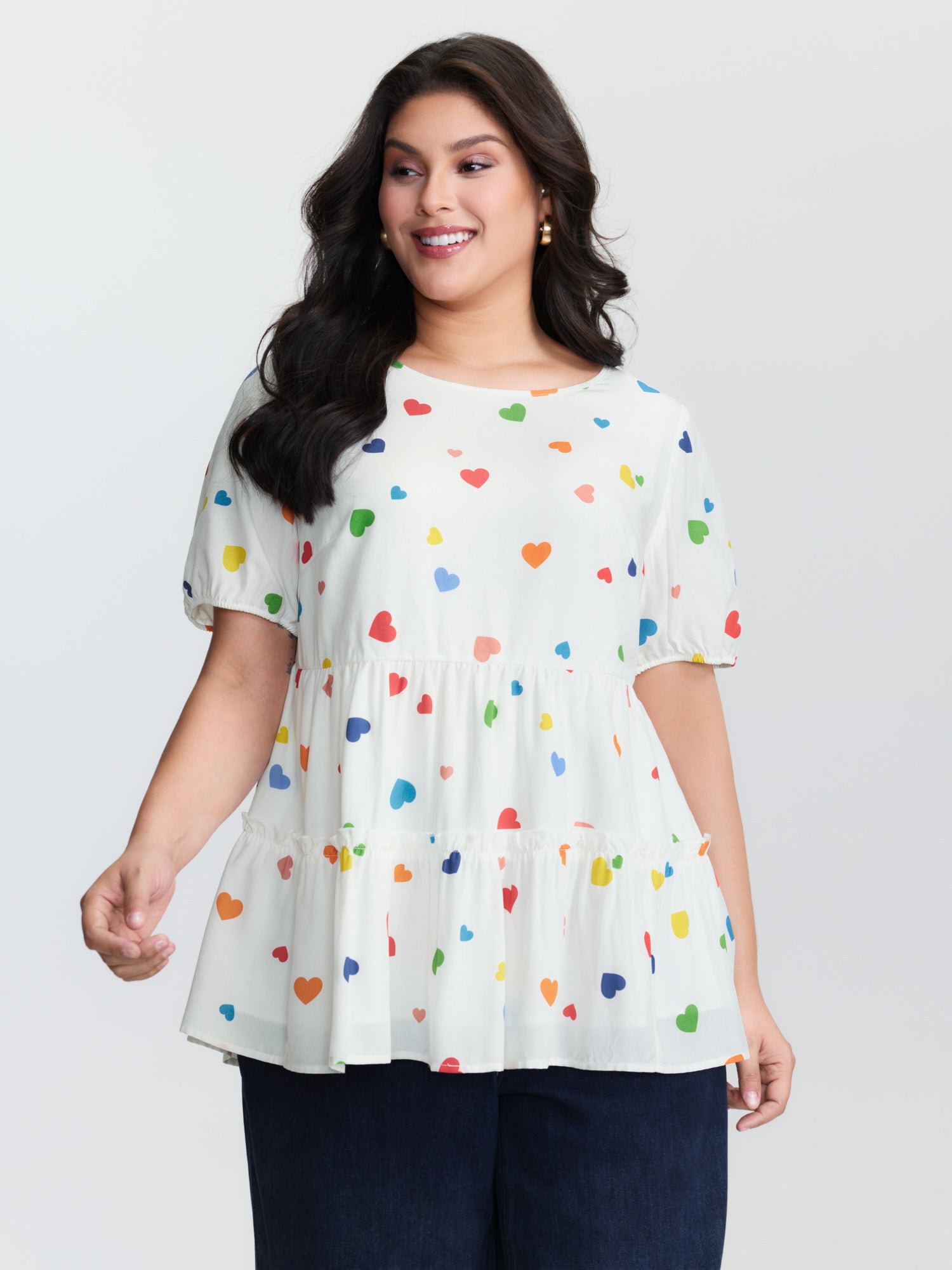 Supersoft Colorful Hearts Tiered Round Neck Blouse