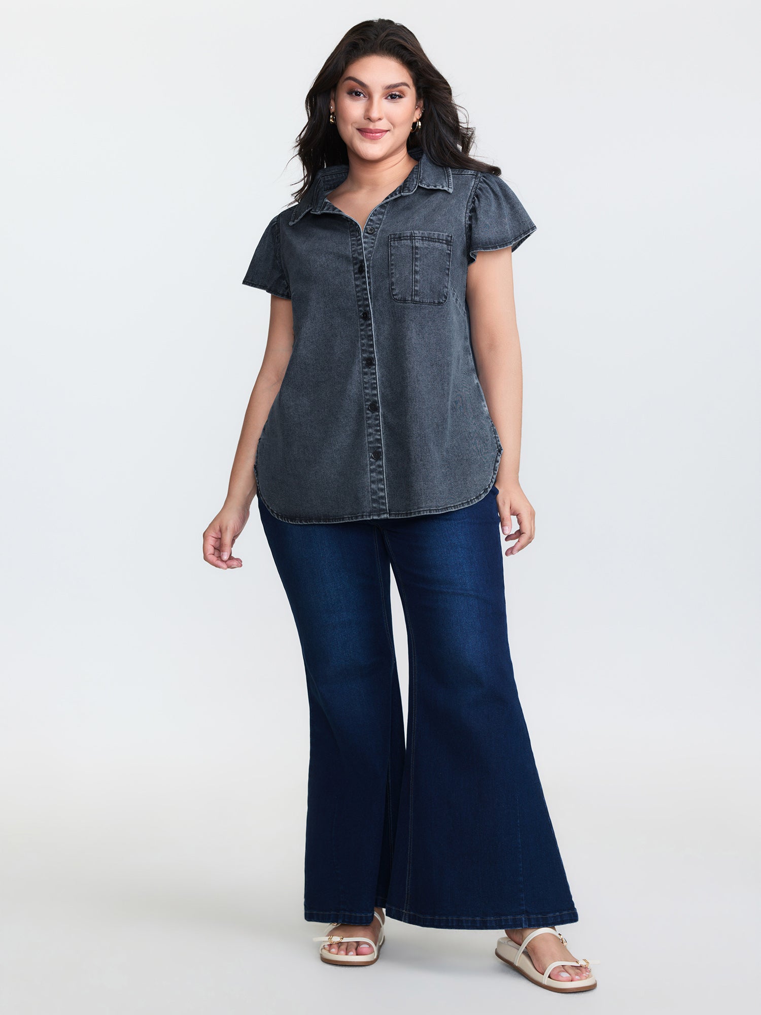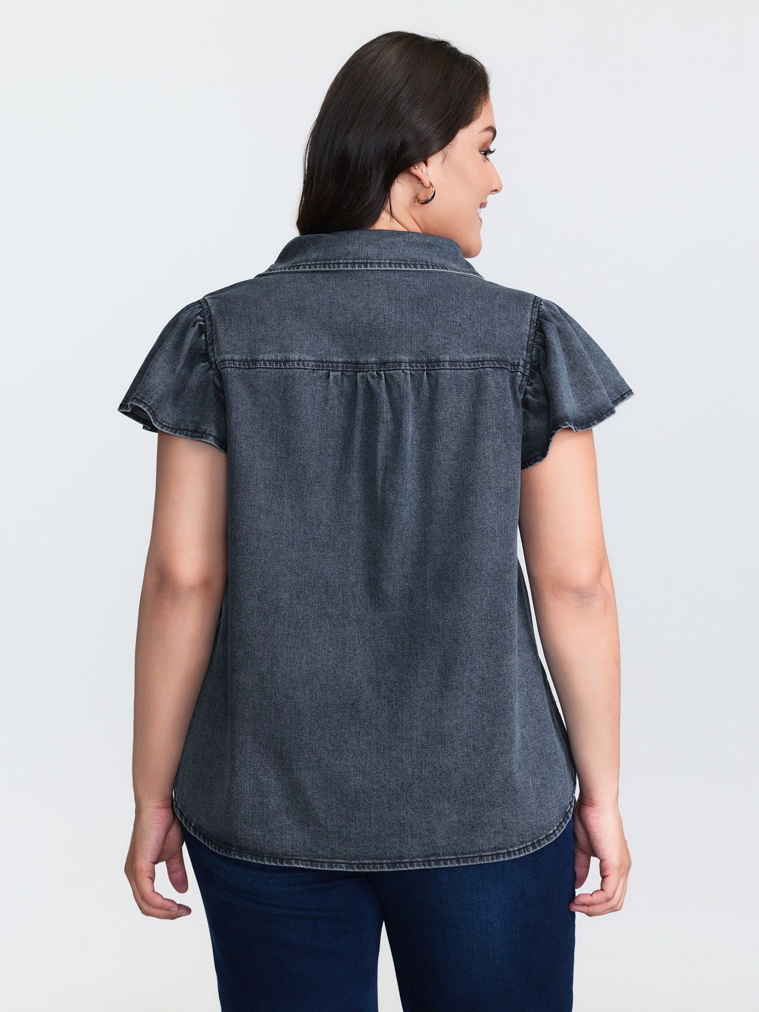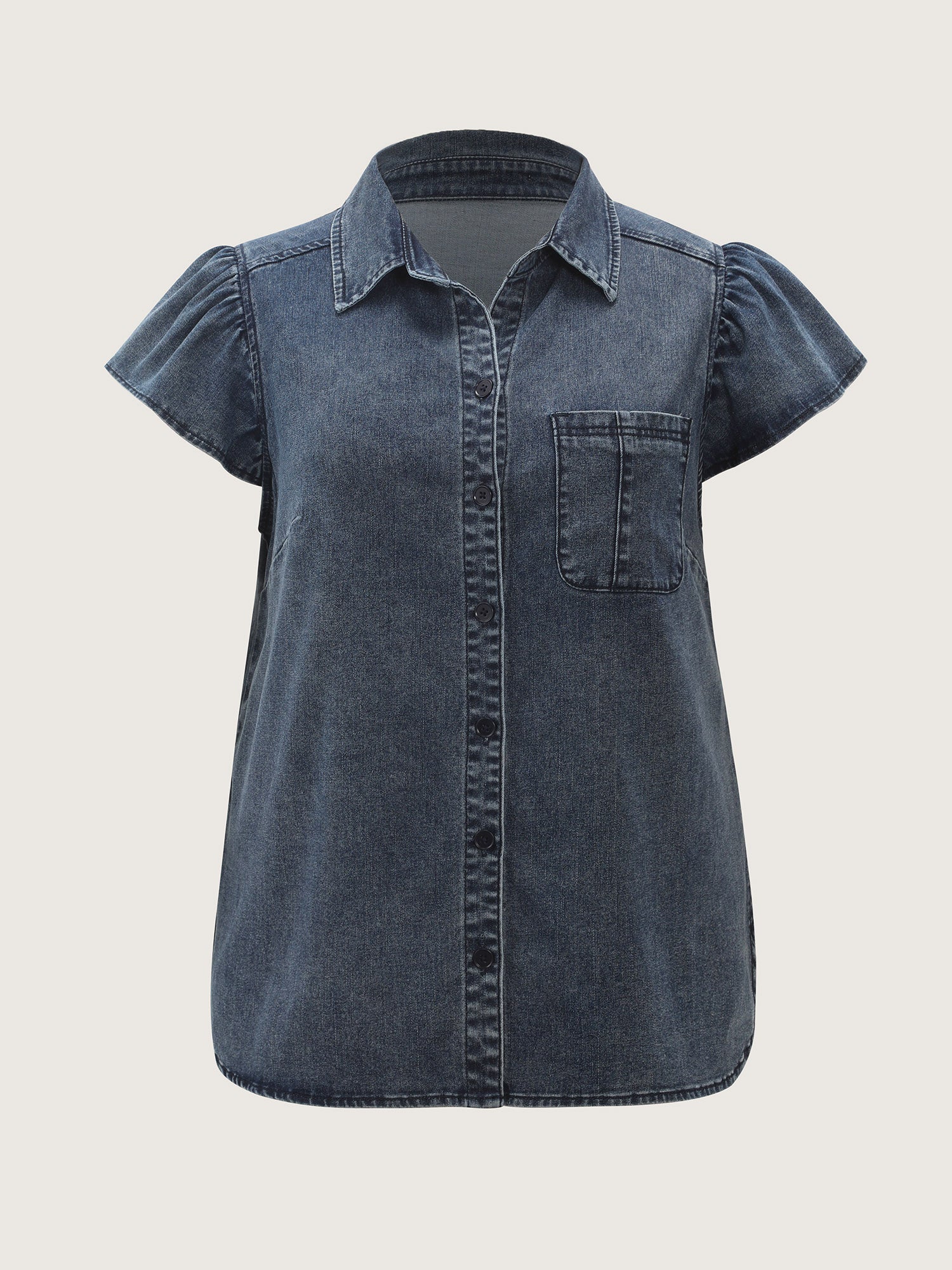 Shop Stretchy Lotus Leaf Sleeve Denim Top now and redefine your style with confidence at BloomChic. Tailored for mid and plus-size women. This trendy Denim Women, sizes 10-30. Color:Mid Blue;Style_2:Leisure;Prints:Non;Details:Gathered;Pocket:Patch pocket;Belt:No-belt;Closure Type:Open front with closure;Wash:Medium Wash