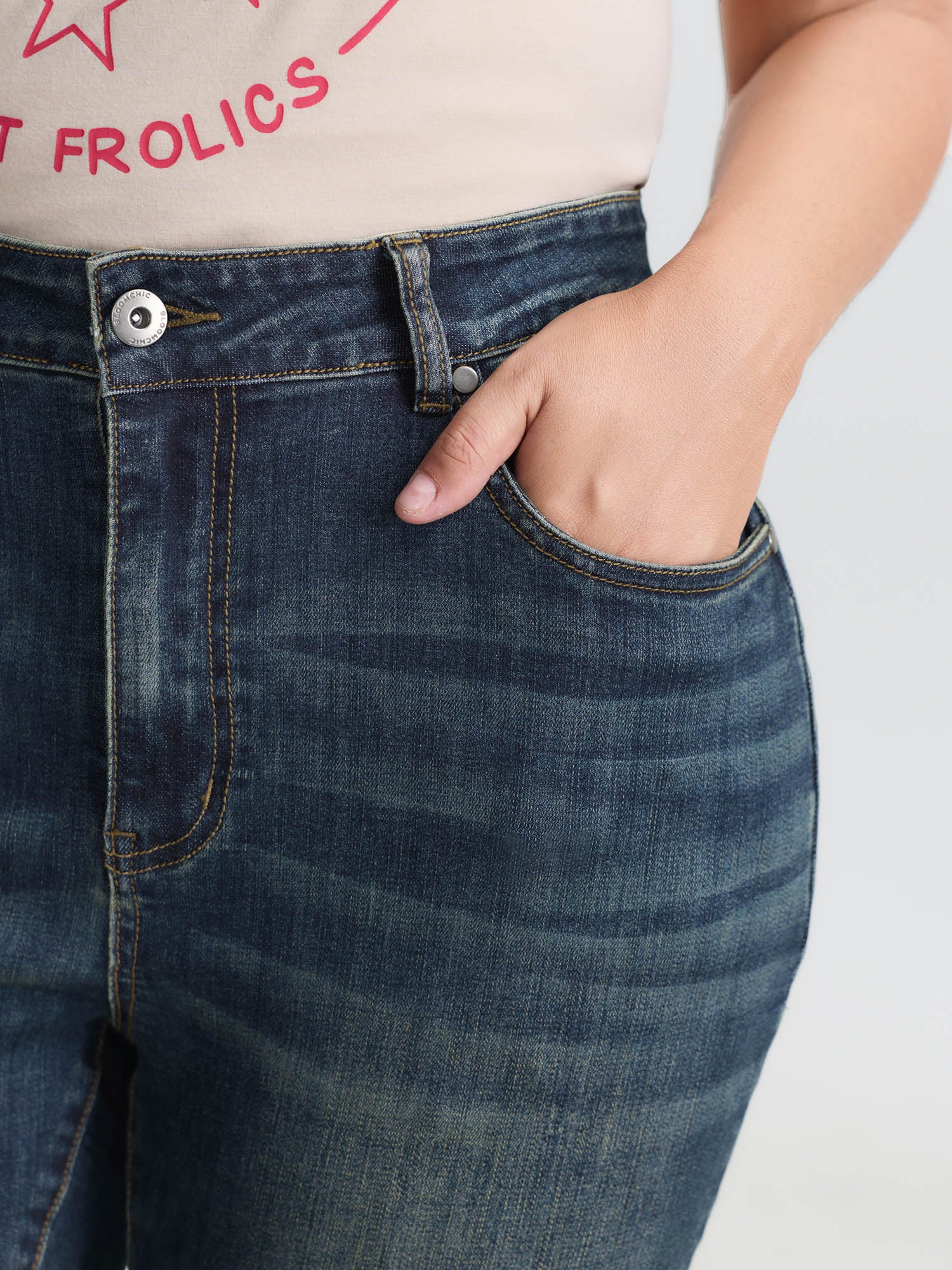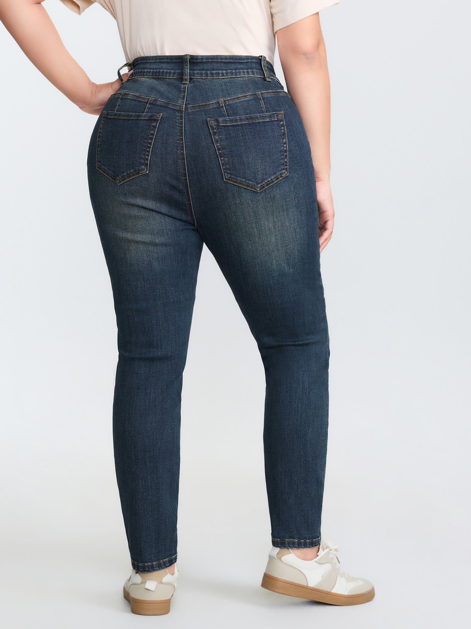 Shop Stretchy Mid-Rise Skinny-Fit Jeans now and redefine your style with confidence at BloomChic. Tailored for mid and plus-size women. This trendy Denim Women, sizes 10-30. Color:Dark Indigo;Style:Leisure;Prints:Non;Pocket:Slanted pocket;Belt:No-belt;Closure Type:Non;Wash:Dark Wash