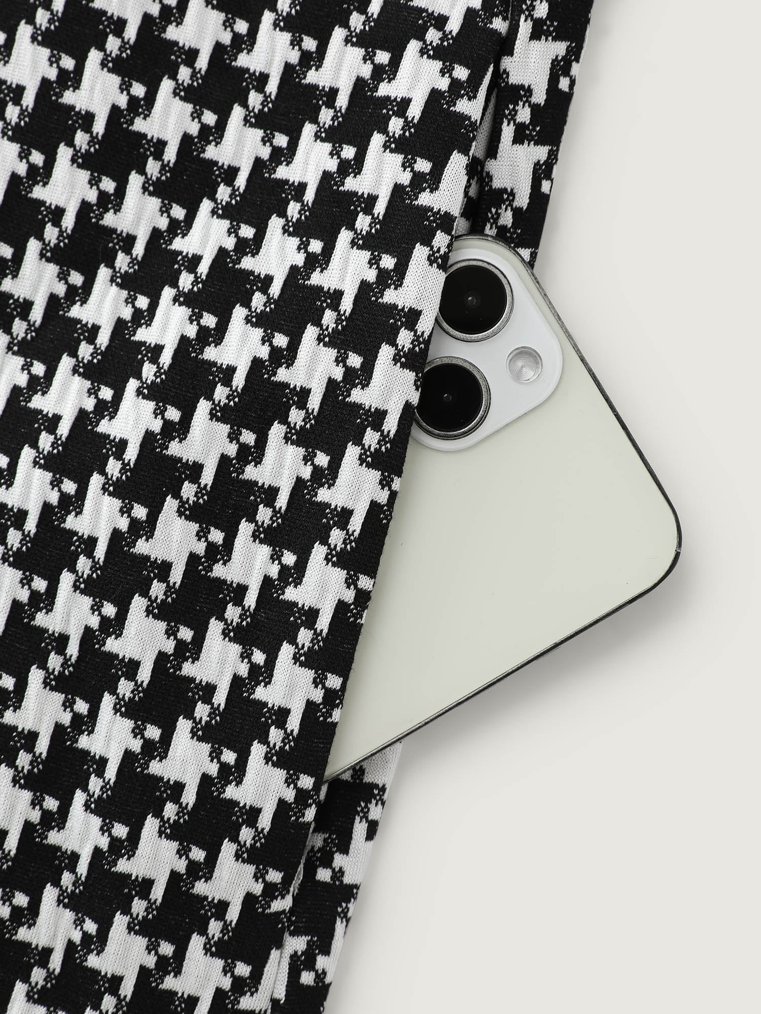 Shop 2-In-1 Houndstooth Wide-Leg Jumpsuit now and redefine your style with confidence at BloomChic. Tailored for mid and plus-size women. This trendy Jumpsuits Women, sizes 10-30. Color:Black;Style:Timeless;Neckline:Stand-up collar;Sleeve Type:Elastic cuff;Prints:Plaid;Pocket:Side seam pocket;Belt:No-belt;Closure Type:Non