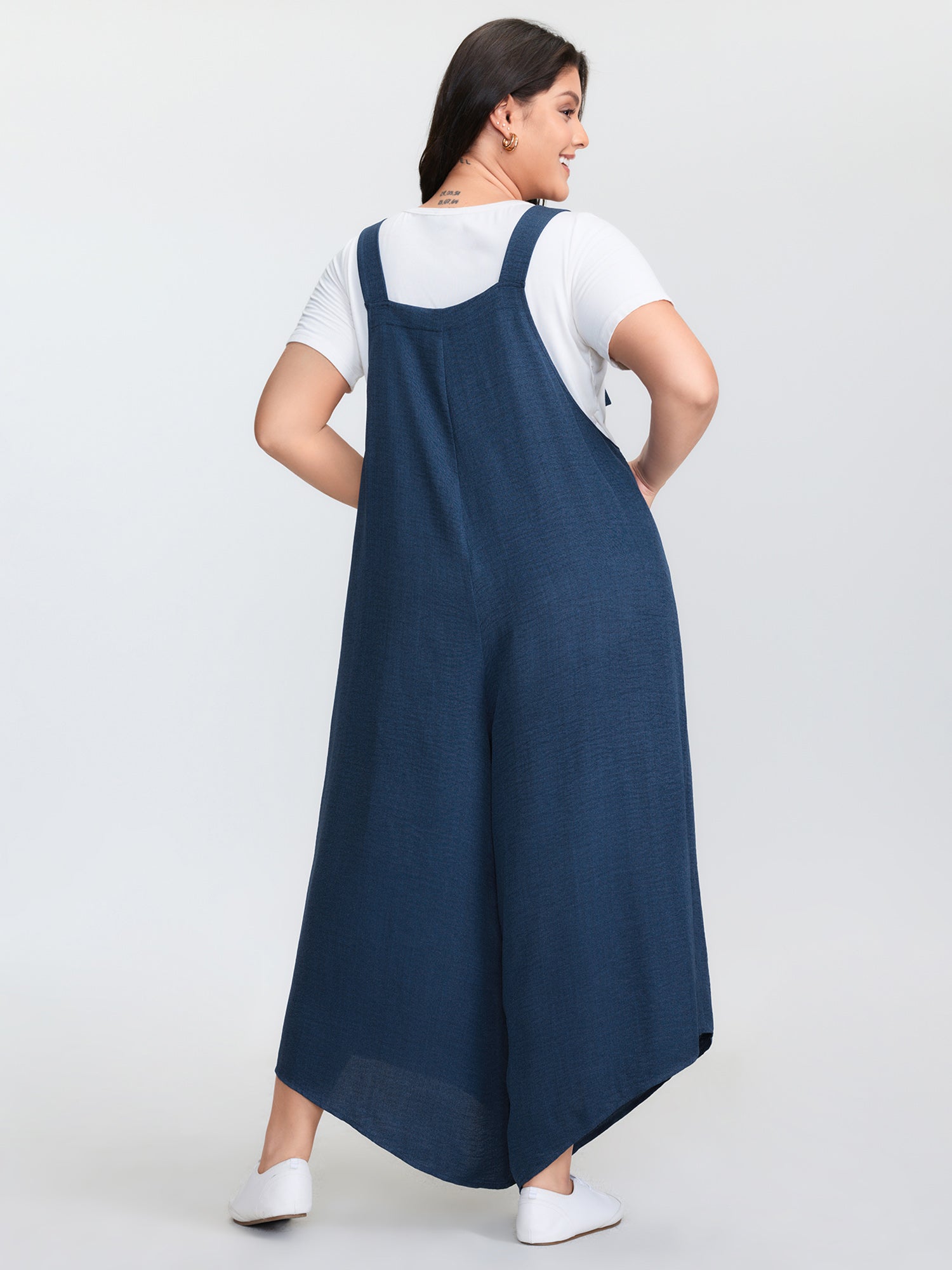 Adjustable Curvy Hem Pockets Overall Jumpsuit