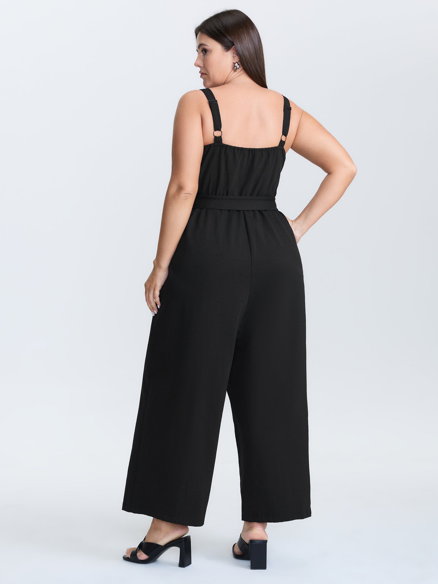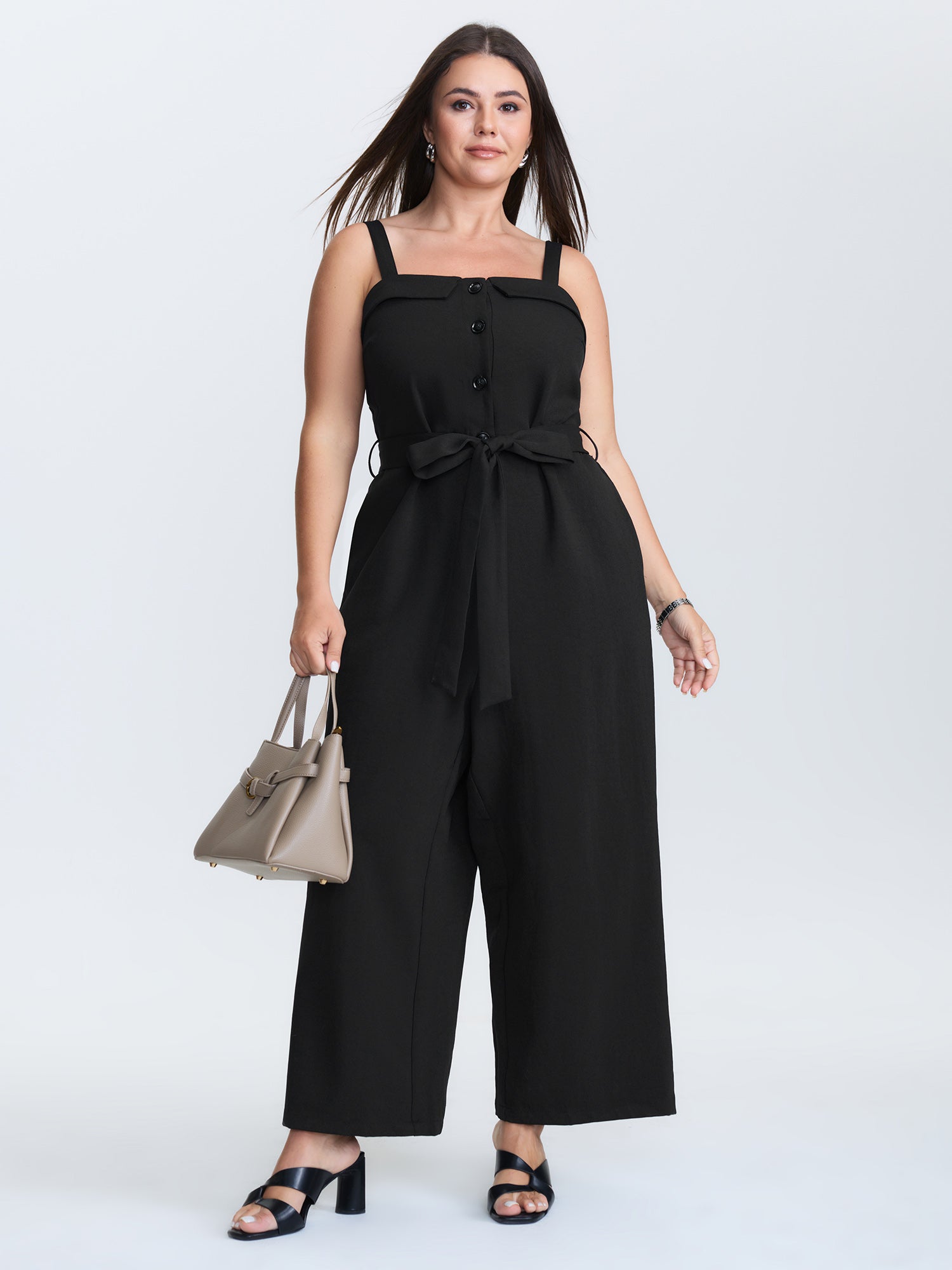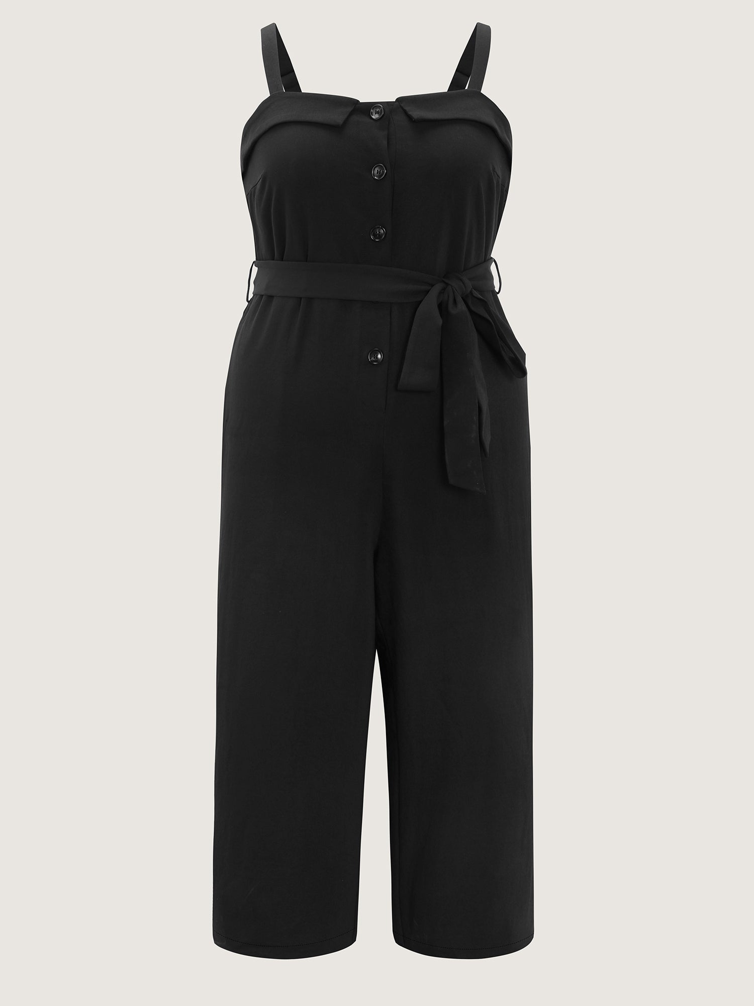 Shop Belted Button Placket Adjustable Jumpsuit now and redefine your style with confidence at BloomChic. Tailored for mid and plus-size women. This trendy Jumpsuits Women, sizes 10-30. Color:Black;Style:Office;Neckline:Square Neck;Sleeve Type:Sleeveless;Prints:Non;Pocket:Side seam pocket;Belt:No-belt;Closure Type:Non