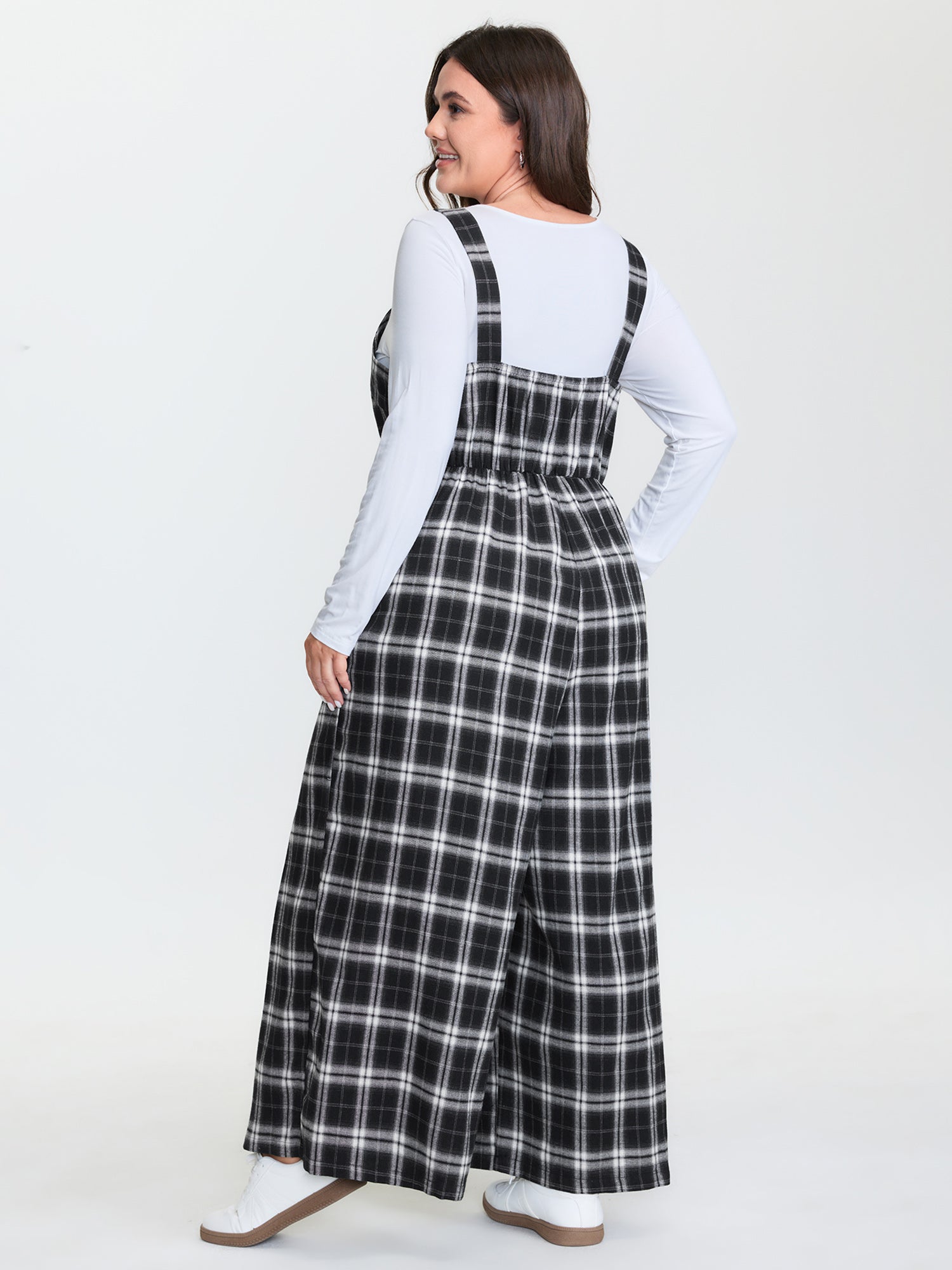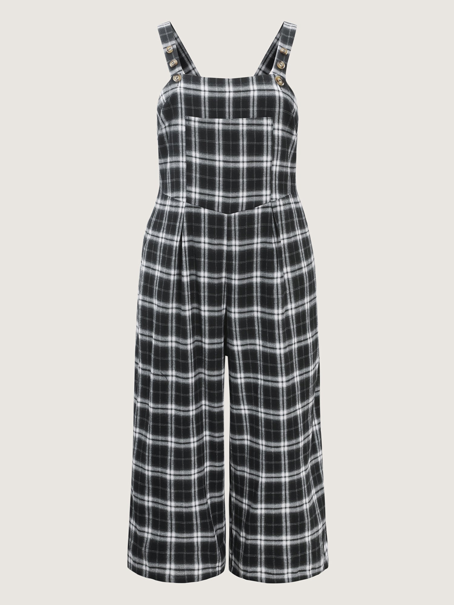 Shop Checkered Overall Straps Jumpsuit now and redefine your style with confidence at BloomChic. Tailored for mid and plus-size women. This trendy Jumpsuits Women, sizes 10-30. Color:Black;Style:Leisure;Neckline:Non;Sleeve Type:Sleeveless;Prints:Plaid;Details:Button;Pocket:Side seam pocket;Belt:No-belt;Closure Type:Non
