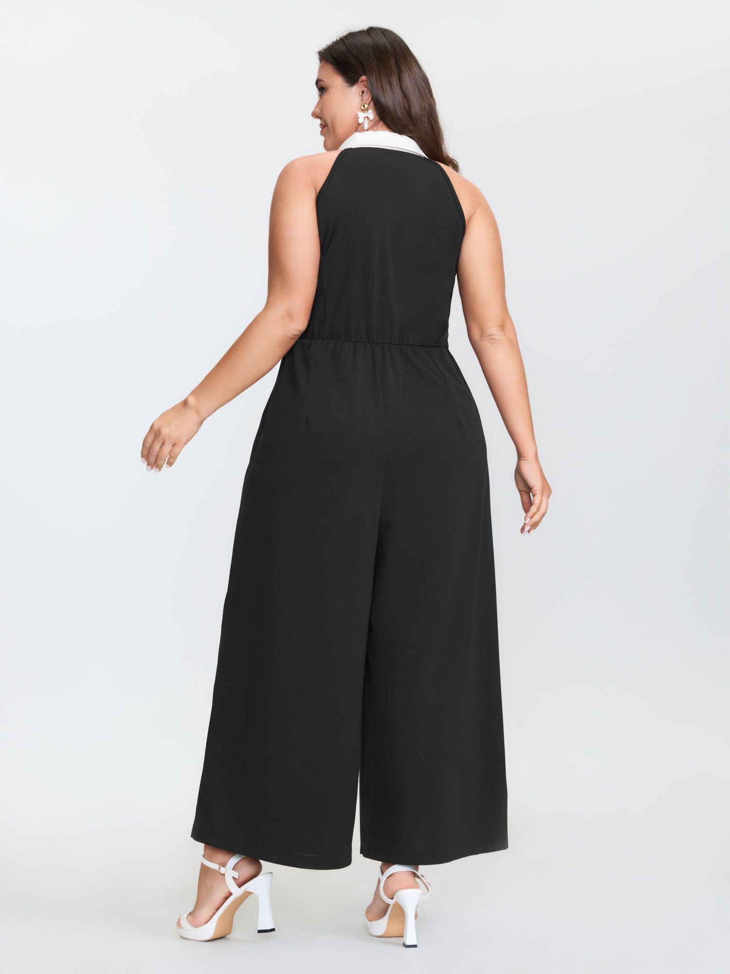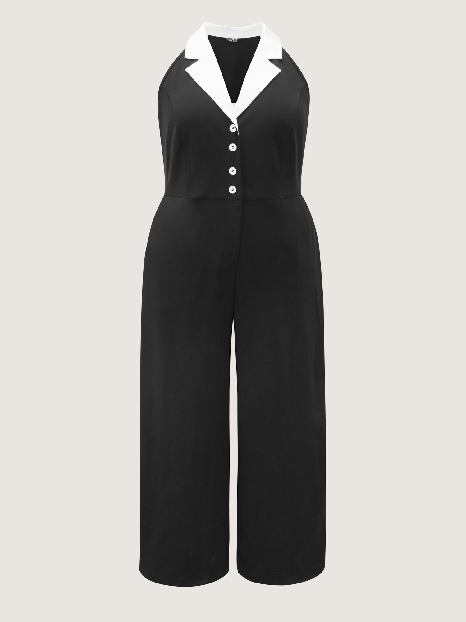 Shop Color Contrast Lapel Collar Wide-Leg Jumpsuit now and redefine your style with confidence at BloomChic. Tailored for mid and plus-size women. This trendy Jumpsuits Women, sizes 10-30. Color:Black;Style:Retro;Neckline:Suit Collar;Sleeve Type:Sleeveless;Prints:Non;Details:Gathered, Contrast, Button;Pocket:Slanted pocket;Belt:No-belt;Closure Type:Non