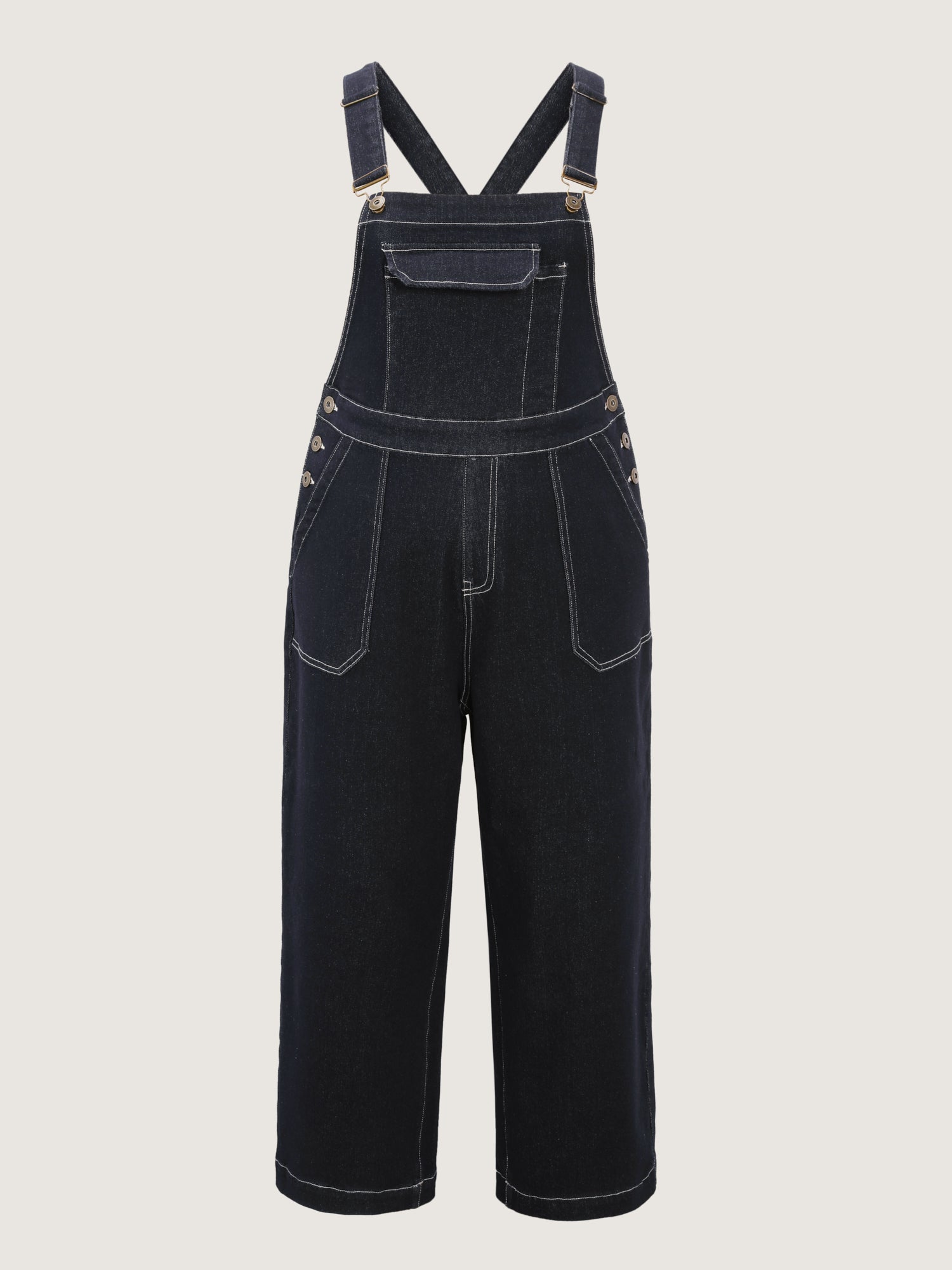 Shop Supersoft Denim Overall Straps Wide-Leg Jumpsuit now and redefine your style with confidence at BloomChic. Tailored for mid and plus-size women. This trendy Jumpsuits Women, sizes 10-30. Color:Dark Indigo;Style:Leisure;Prints:Non;Details:Button;Pocket:Slanted pocket;Belt:No-belt;Closure Type:False placket