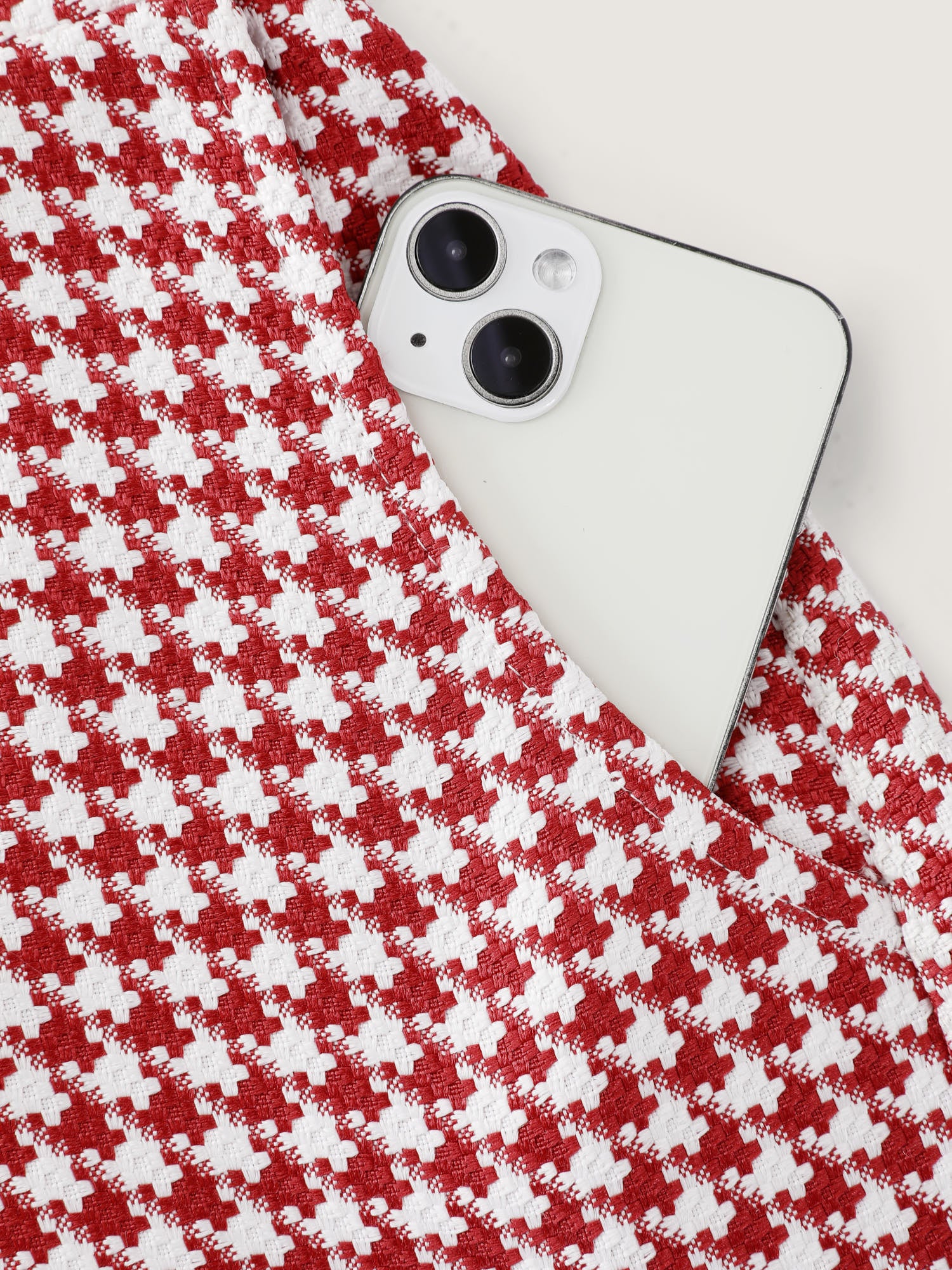 Houndstooth Pattern Stretchy Waist Pockets Jumpsuit