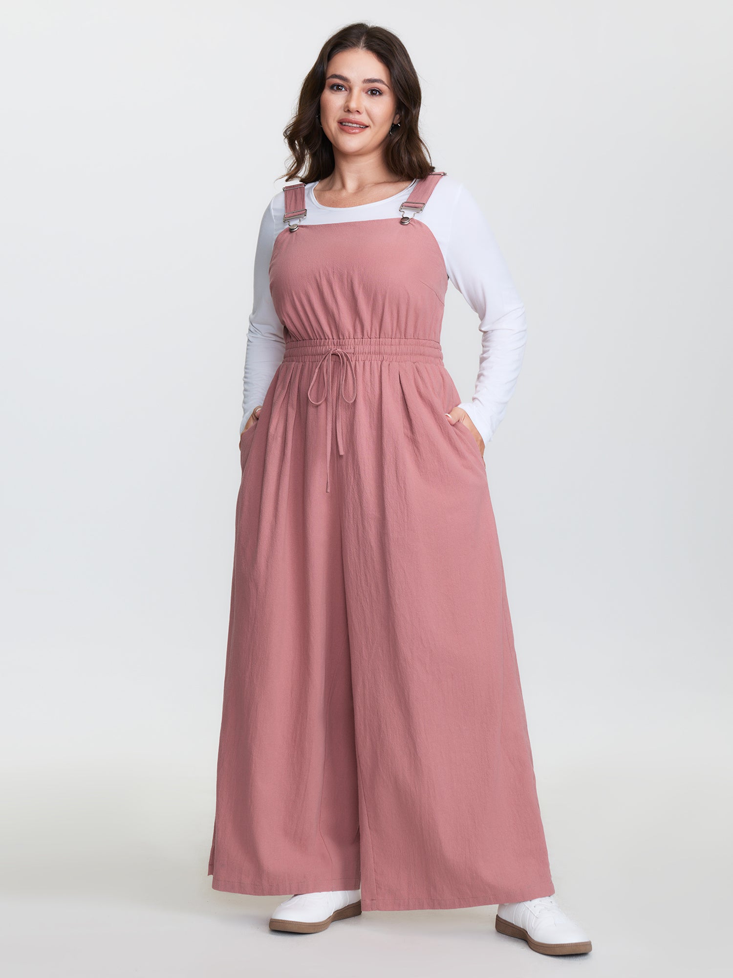 Shop Pure Cotton Adjustable Overall Jumpsuit now and redefine your style with confidence at BloomChic. Tailored for mid and plus-size women. This trendy Jumpsuits Women, sizes 10-30. Color:Dusty Pink;Style:Leisure;Neckline:Non;Sleeve Type:Sleeveless;Prints:Non;Details:Drawstring;Pocket:Side seam pocket;Belt:No-belt;Closure Type:Non