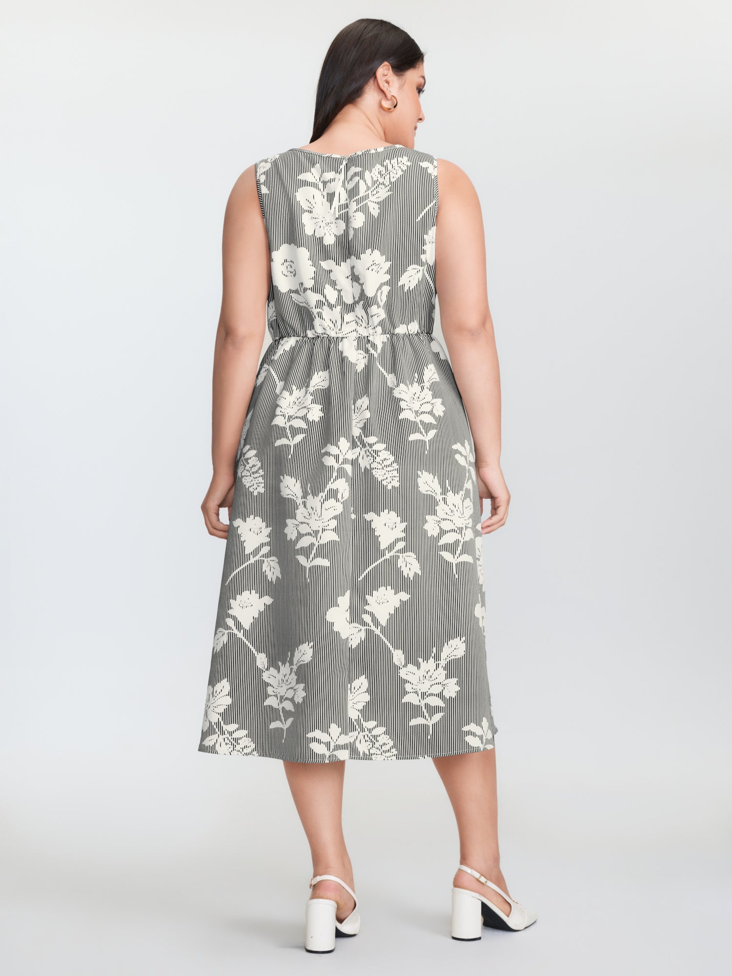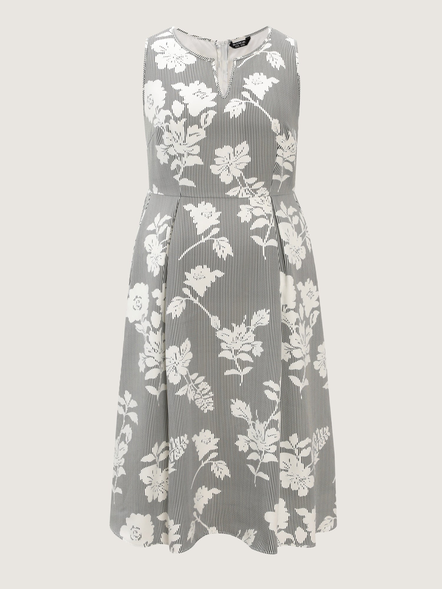 Shop Striped Floral Print Notched Collar Midi Dress now and redefine your style with confidence at BloomChic. Tailored for mid and plus-size women. This trendy Dress, sizes 10-30. You can never go wrong with BloomChic Dresses. Color:Original White;Style_2:Office;Neckline:Flat collar with V-notch;Sleeve Type:Sleeveless;Prints:Stripes;Pocket:Side seam pocket;Belt:No-belt;Closure Type:Non