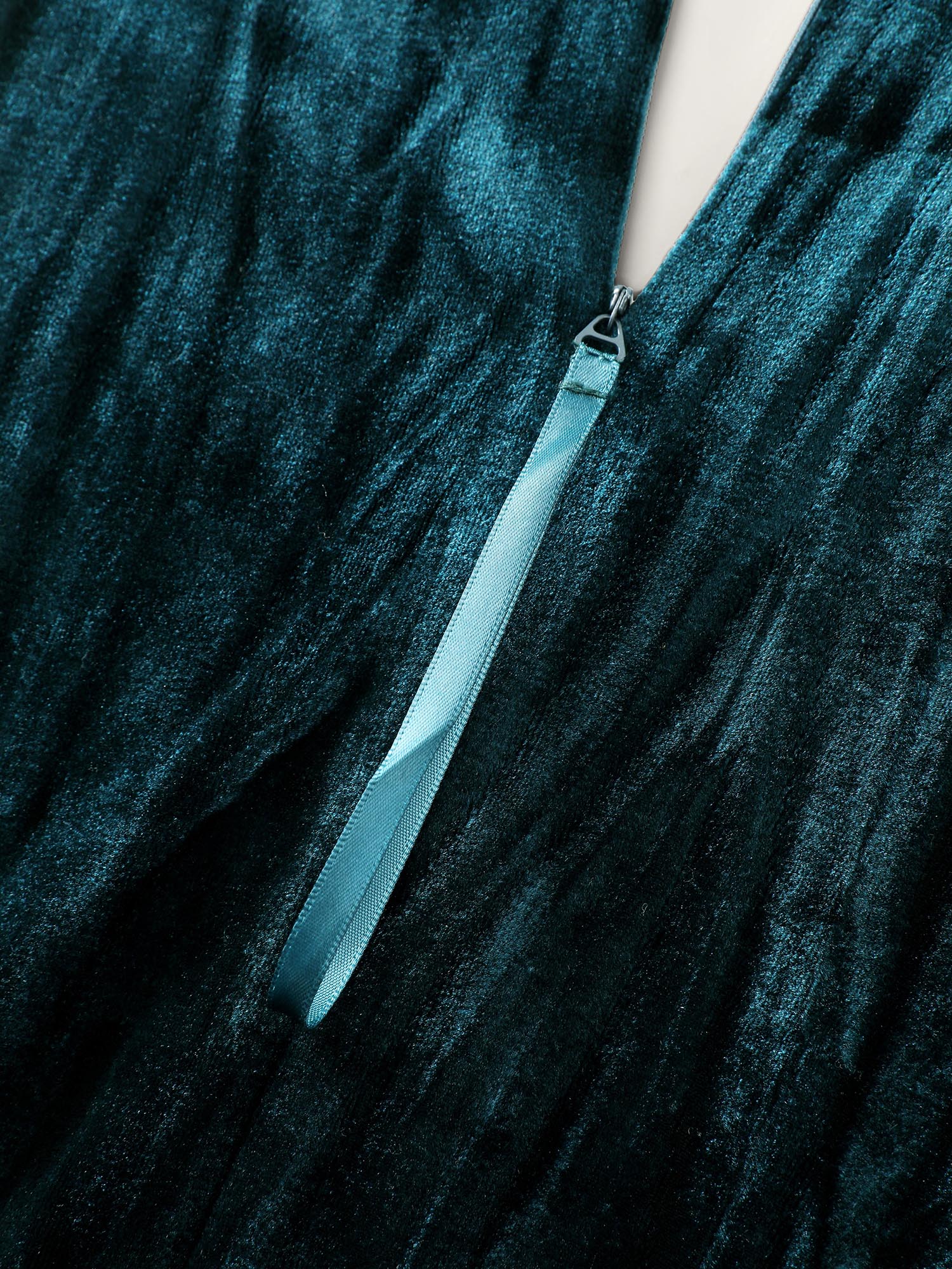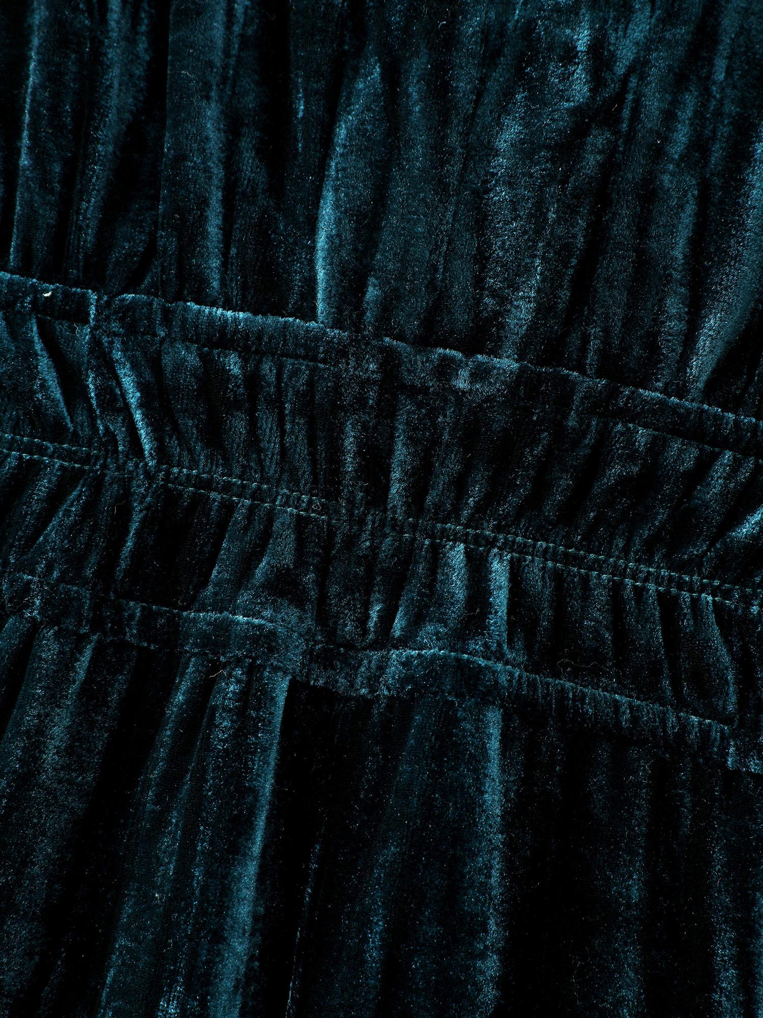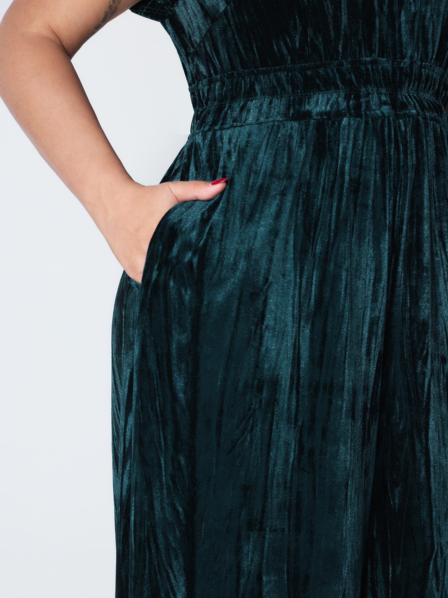 Velvet Pleated Waist Notched-Collar Jumpsuit