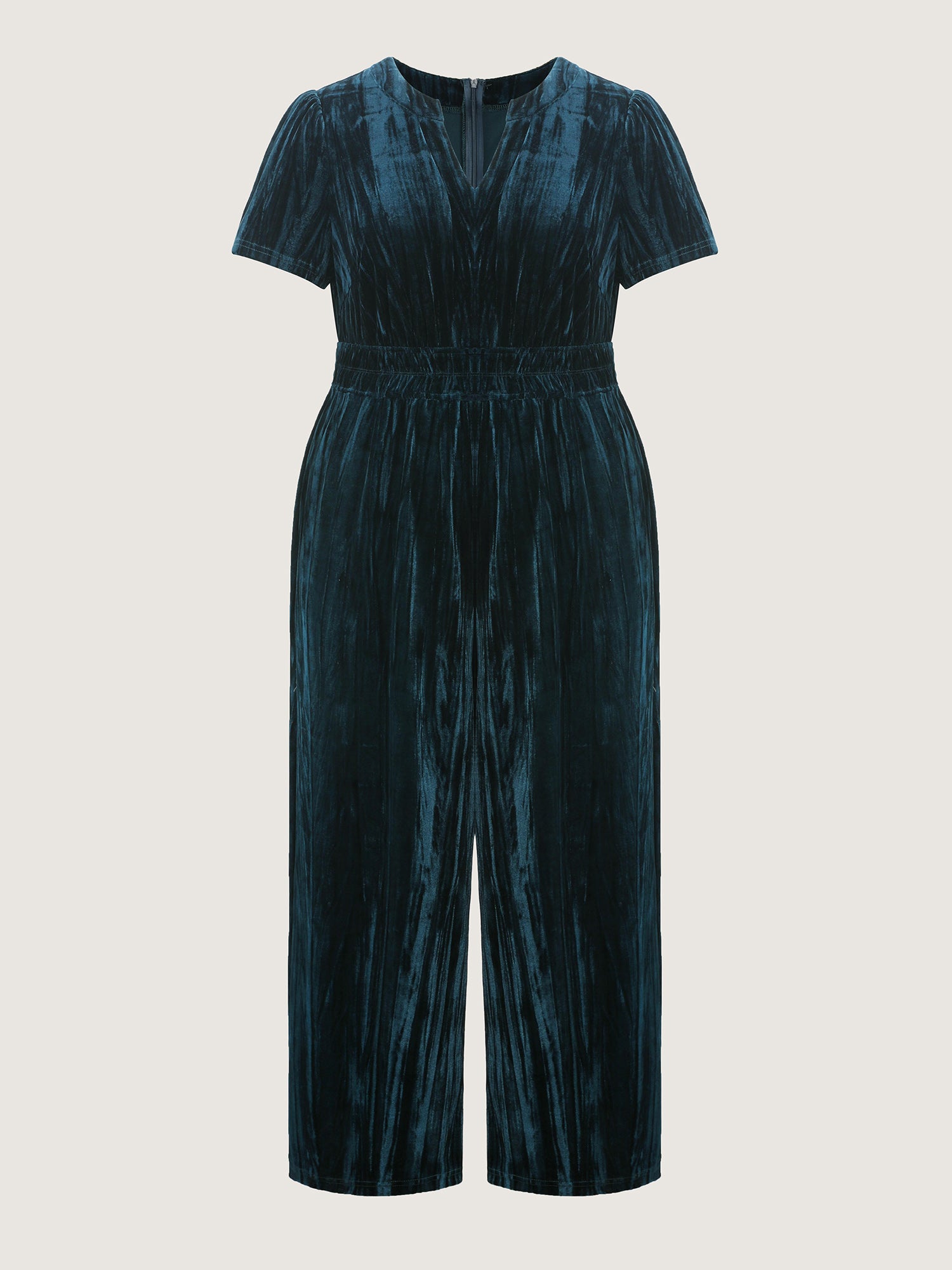 Shop Velvet Pleated Waist Notched-Collar Jumpsuit now and redefine your style with confidence at BloomChic. Tailored for mid and plus-size women. This trendy Jumpsuits Women, sizes 10-30. Color:Cerulean;Style:Party&Cocktail;Neckline:V-neck;Sleeve Type:Regular Sleeve;Prints:Non;Pocket:Side seam pocket;Belt:No-belt;Closure Type:Non