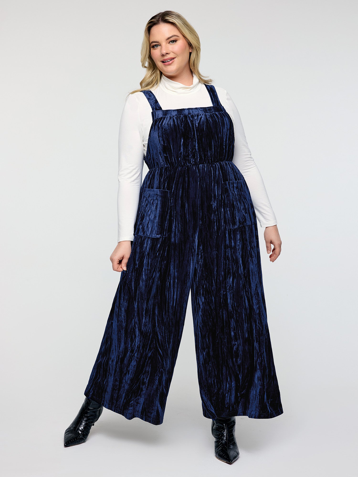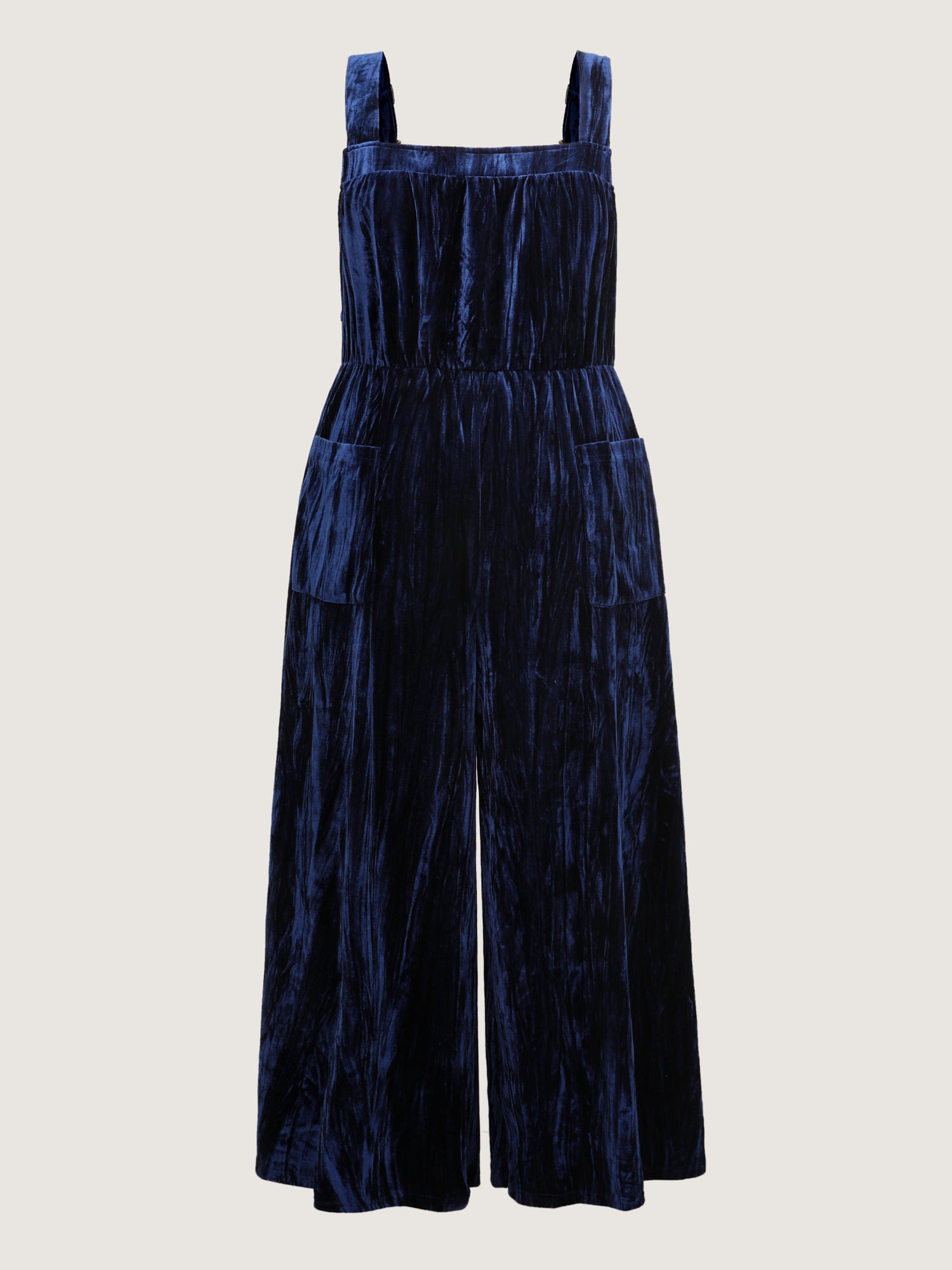 Shop Velvety Texture Adjustable Pockets Overall Jumpsuit now and redefine your style with confidence at BloomChic. Tailored for mid and plus-size women. This trendy Jumpsuits Women, sizes 10-30. Color:Indigo;Neckline:Non;Sleeve Type:Sleeveless;Prints:Non;Pocket:Patch pocket;Belt:No-belt;Closure Type:Non