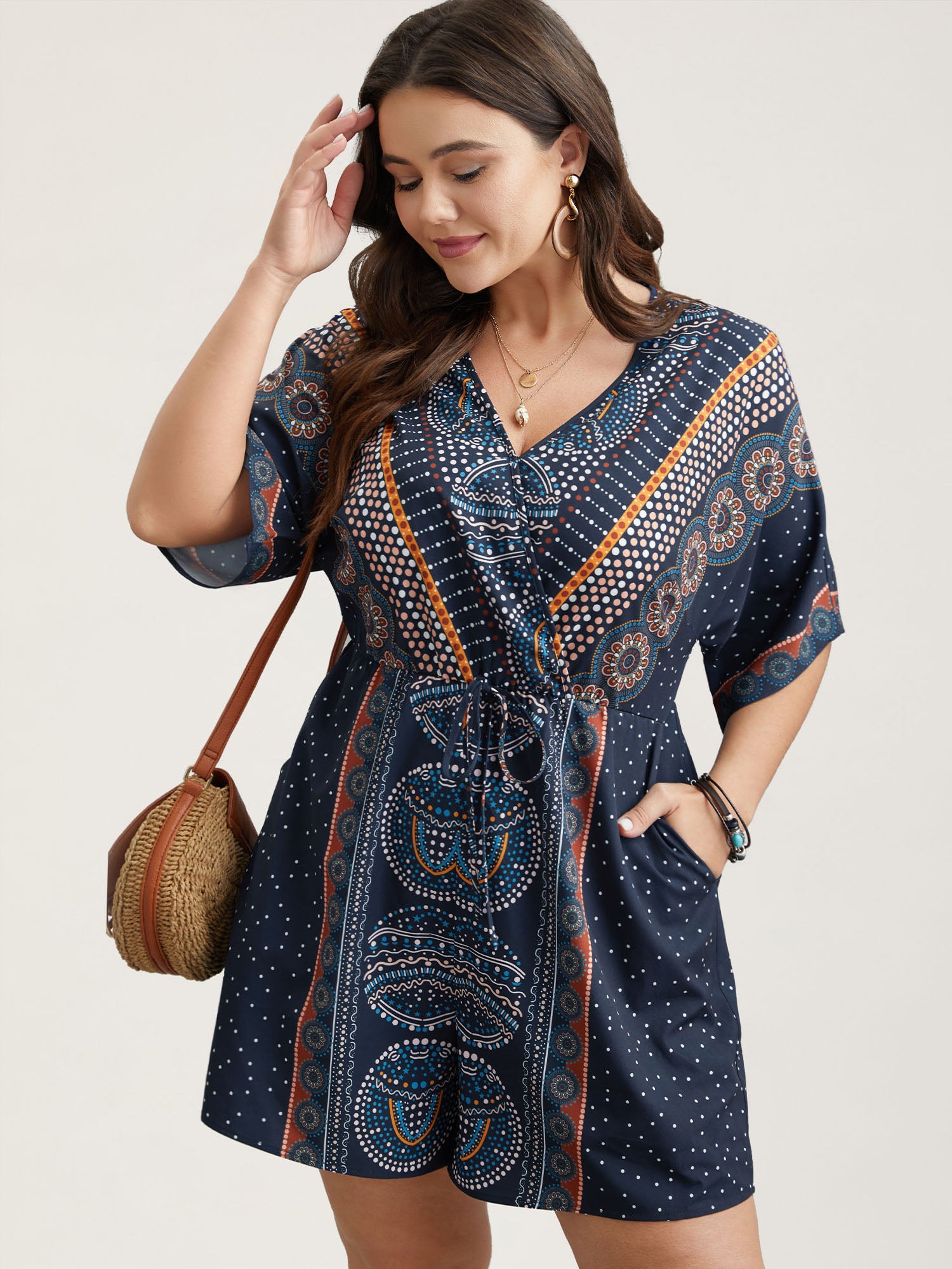 Mixed Ornate Print Pockets Romper