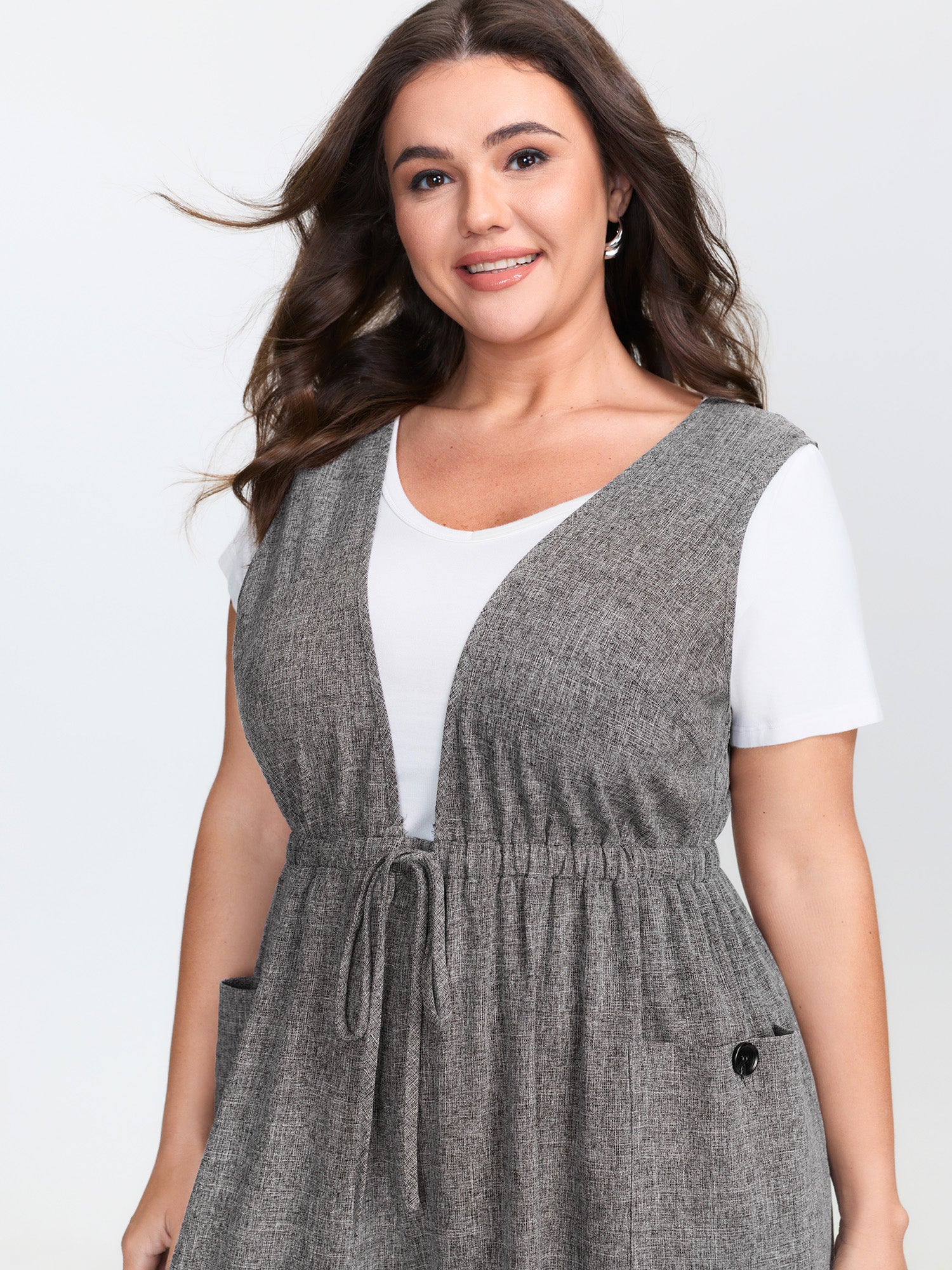 Supersoft Drawstring Waist Button Placket Midi Dress