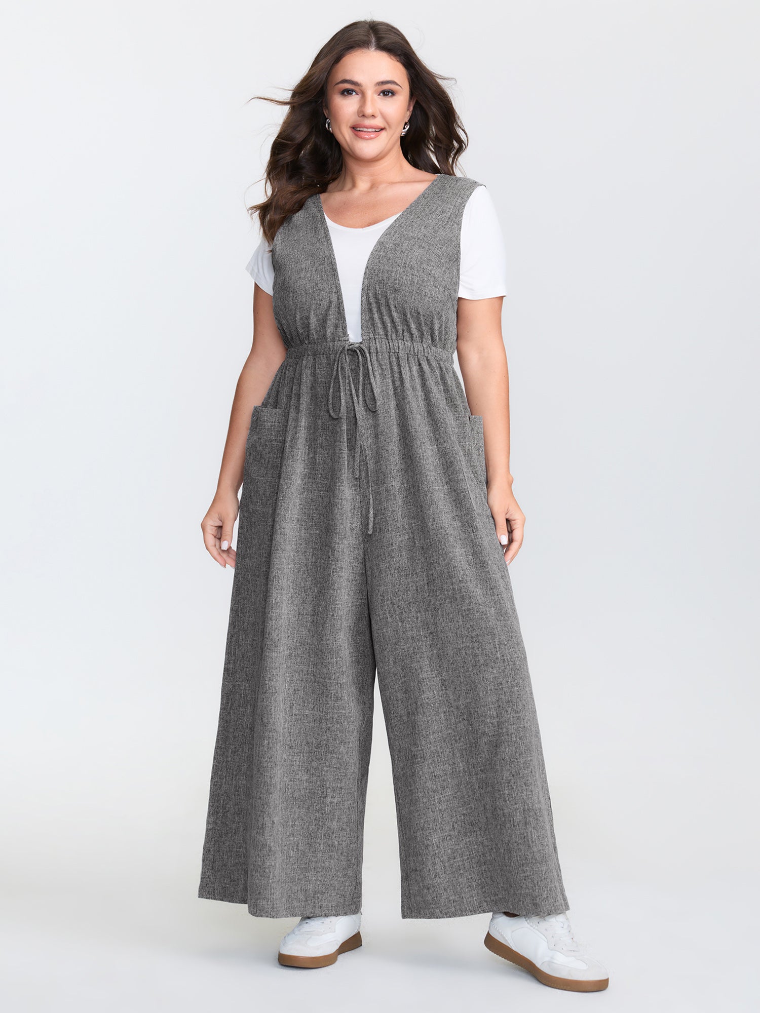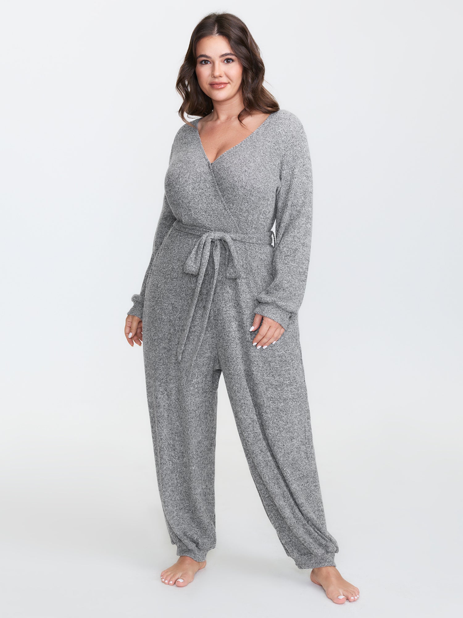 Soft Wrap Waist-Tie Pockets Lounge Jumpsuit