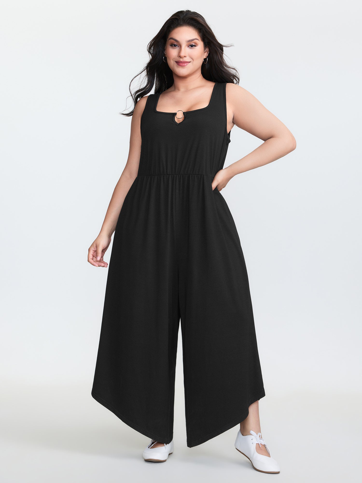 Shirred Back Metal Loop Ruched Jumpsuit