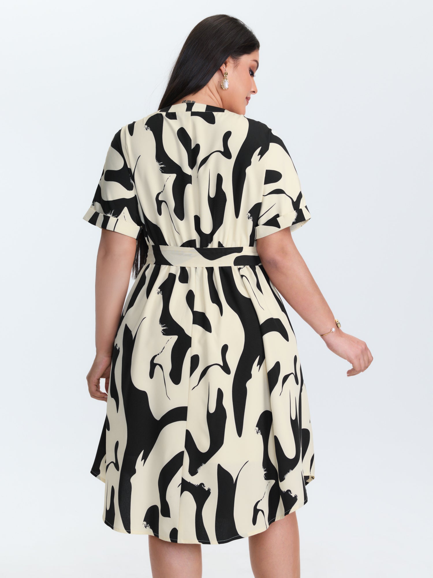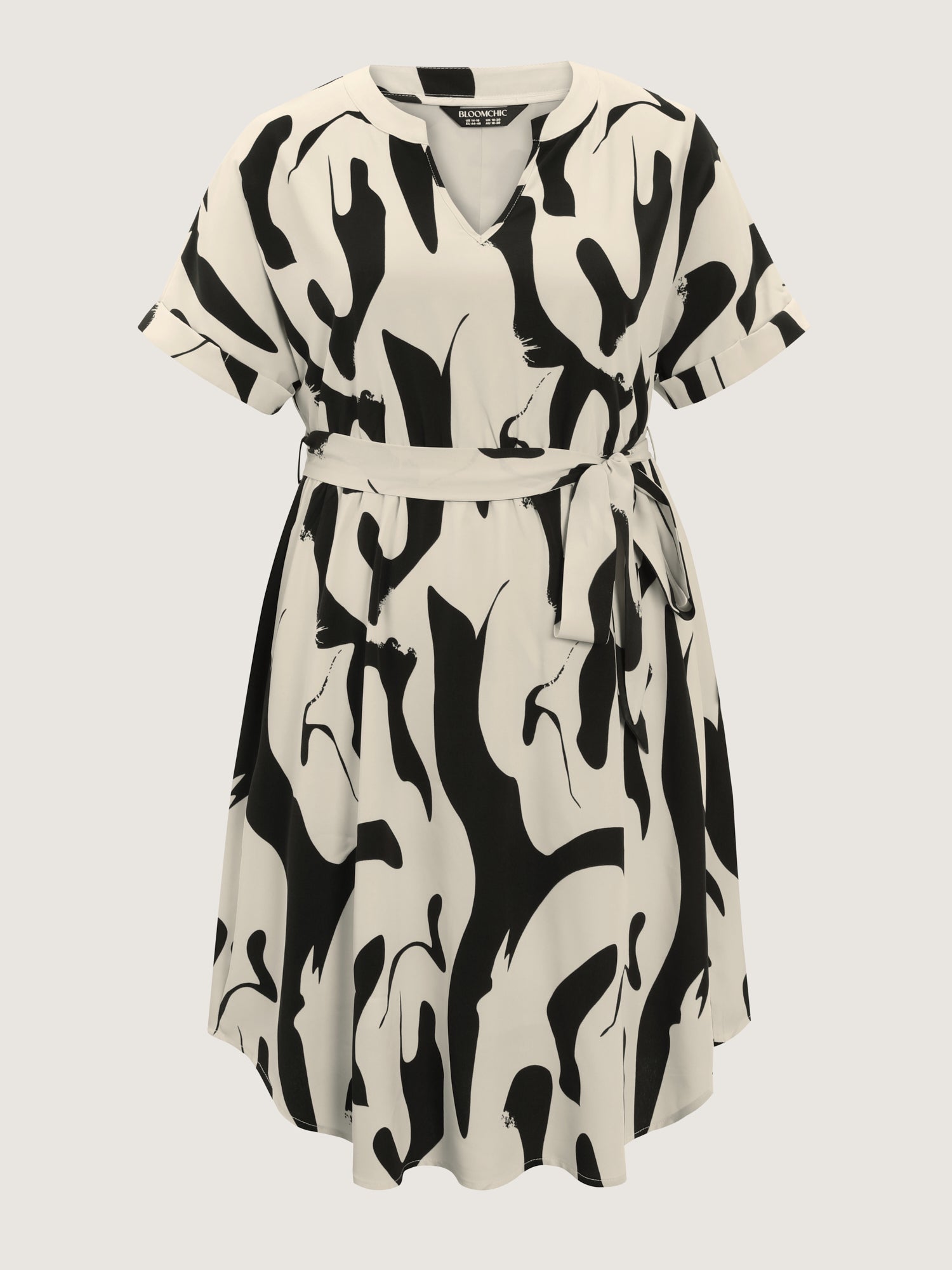 Shop Abstract Print Waist-Tie Midi Dress now and redefine your style with confidence at BloomChic. Tailored for mid and plus-size women. This trendy Dress, sizes 10-30. You can never go wrong with BloomChic Dresses. Color:Apricot;Style:Office;Neckline:Flat collar with V-notch;Sleeve Type:Regular cuff;Prints:Geometric & color block;Details:Contrast, Belted;Pocket:Side seam pocket;Belt:Belt