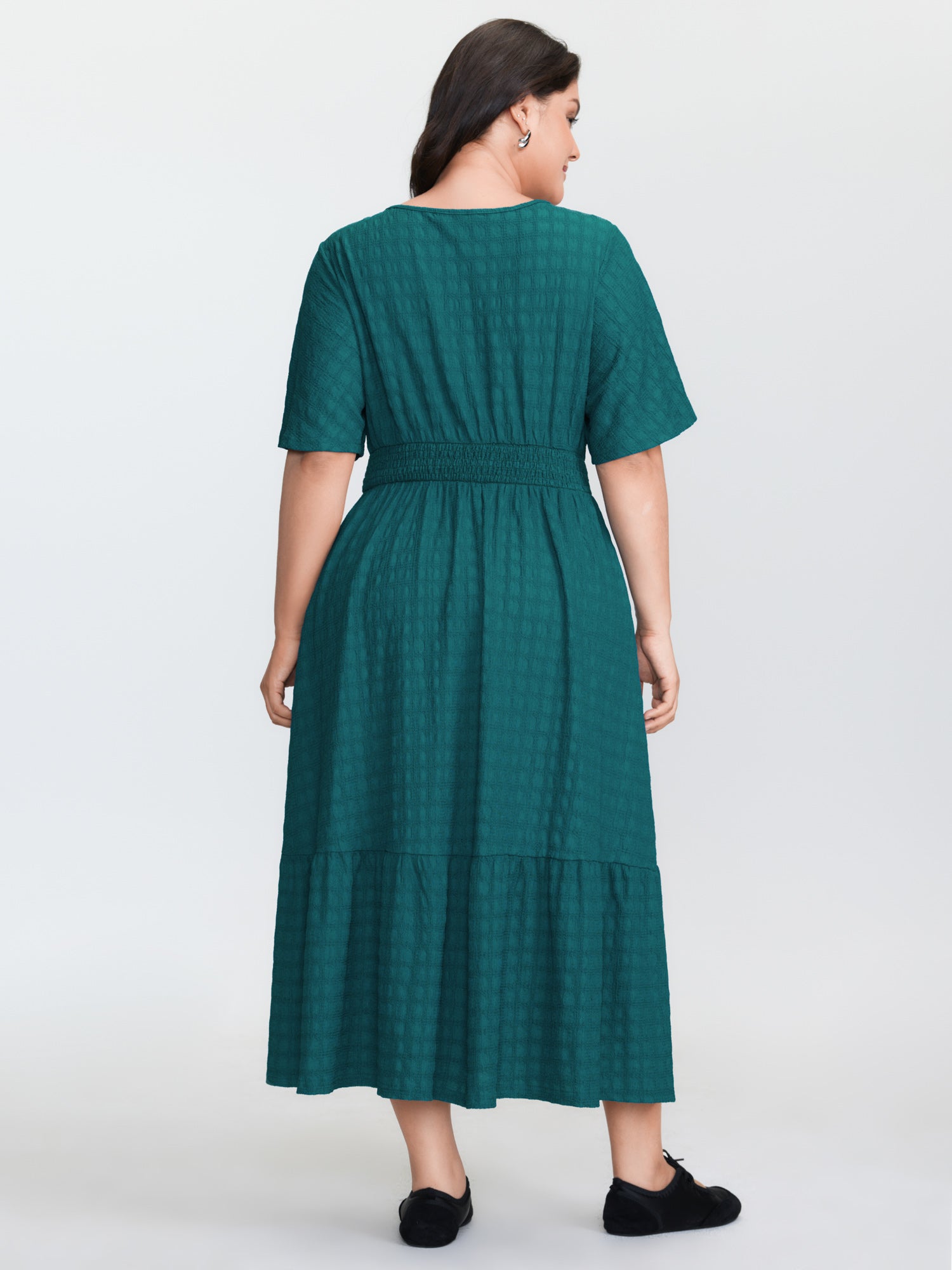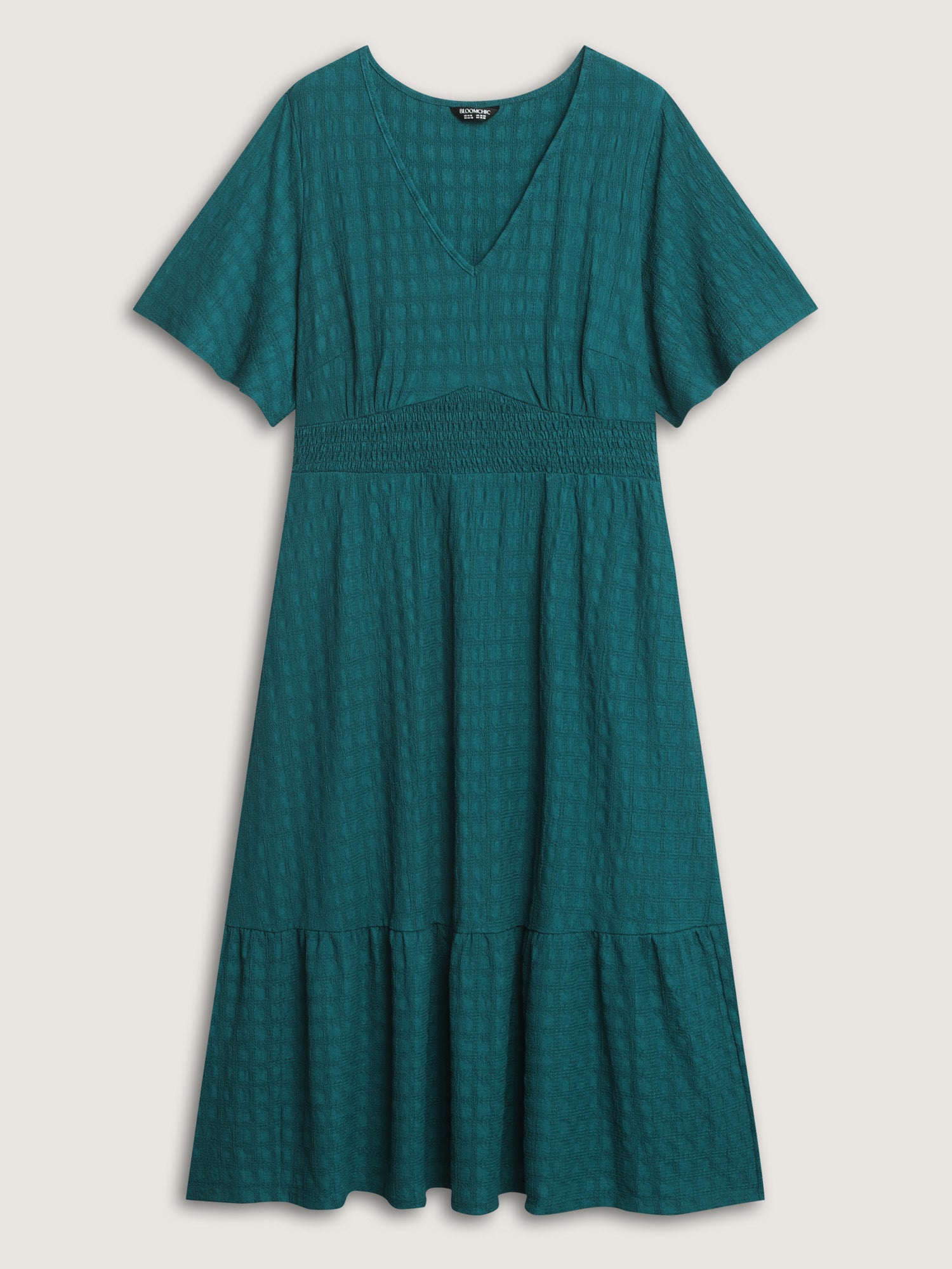 Shop Textured V-Neck Shirred Waist Midi Dress now and redefine your style with confidence at BloomChic. Tailored for mid and plus-size women. This trendy Dress, sizes 10-30. You can never go wrong with BloomChic Dresses. Color:Aegean;Style:Leisure;Neckline:V-neck;Sleeve Type:Ruffle Sleeve;Prints:Synthetic texture;Details:Shirred, Texture;Pocket:Side seam pocket;Belt:No-belt;Closure Type:Non