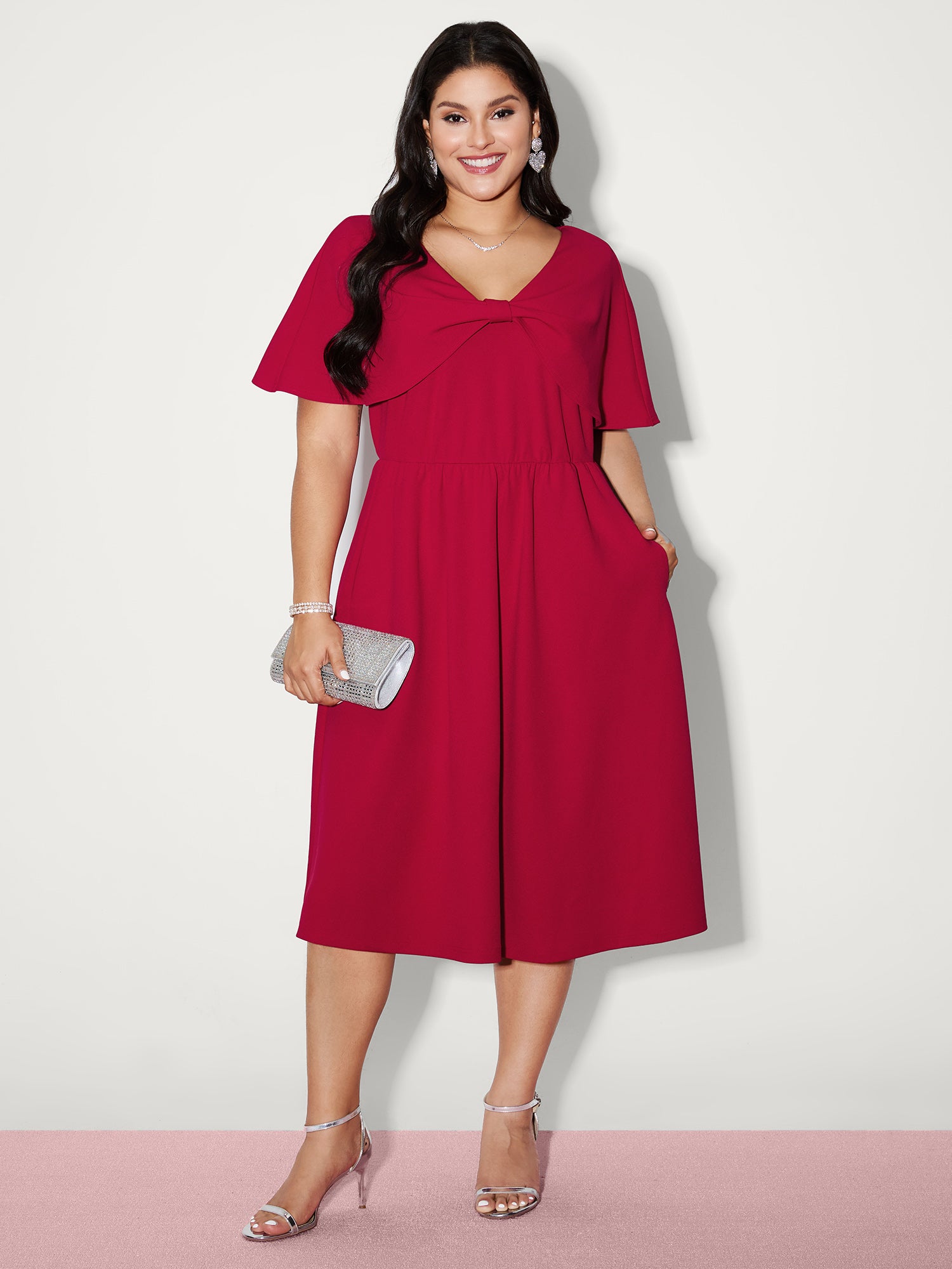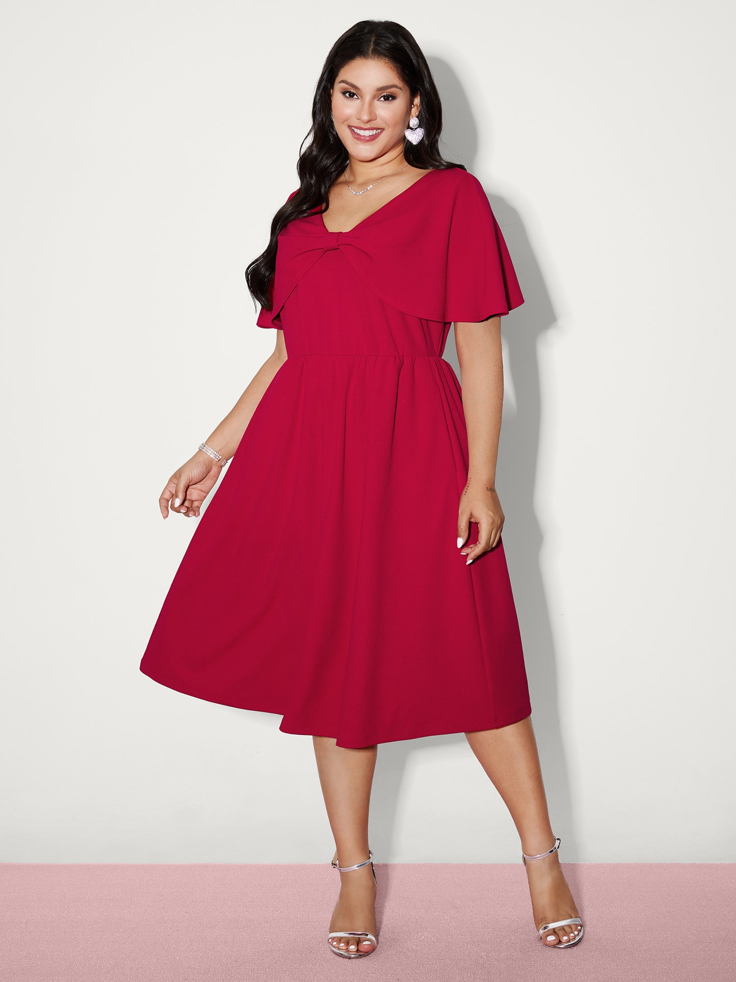 Backless Tie Layered Hem Flutter Sleeve Midi Dress