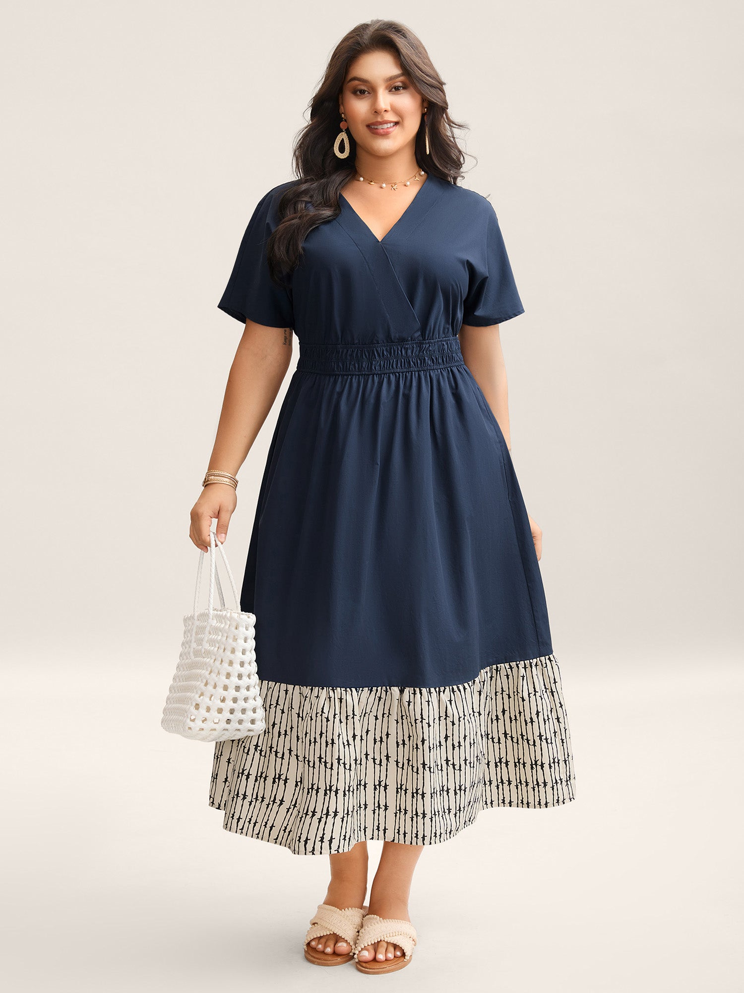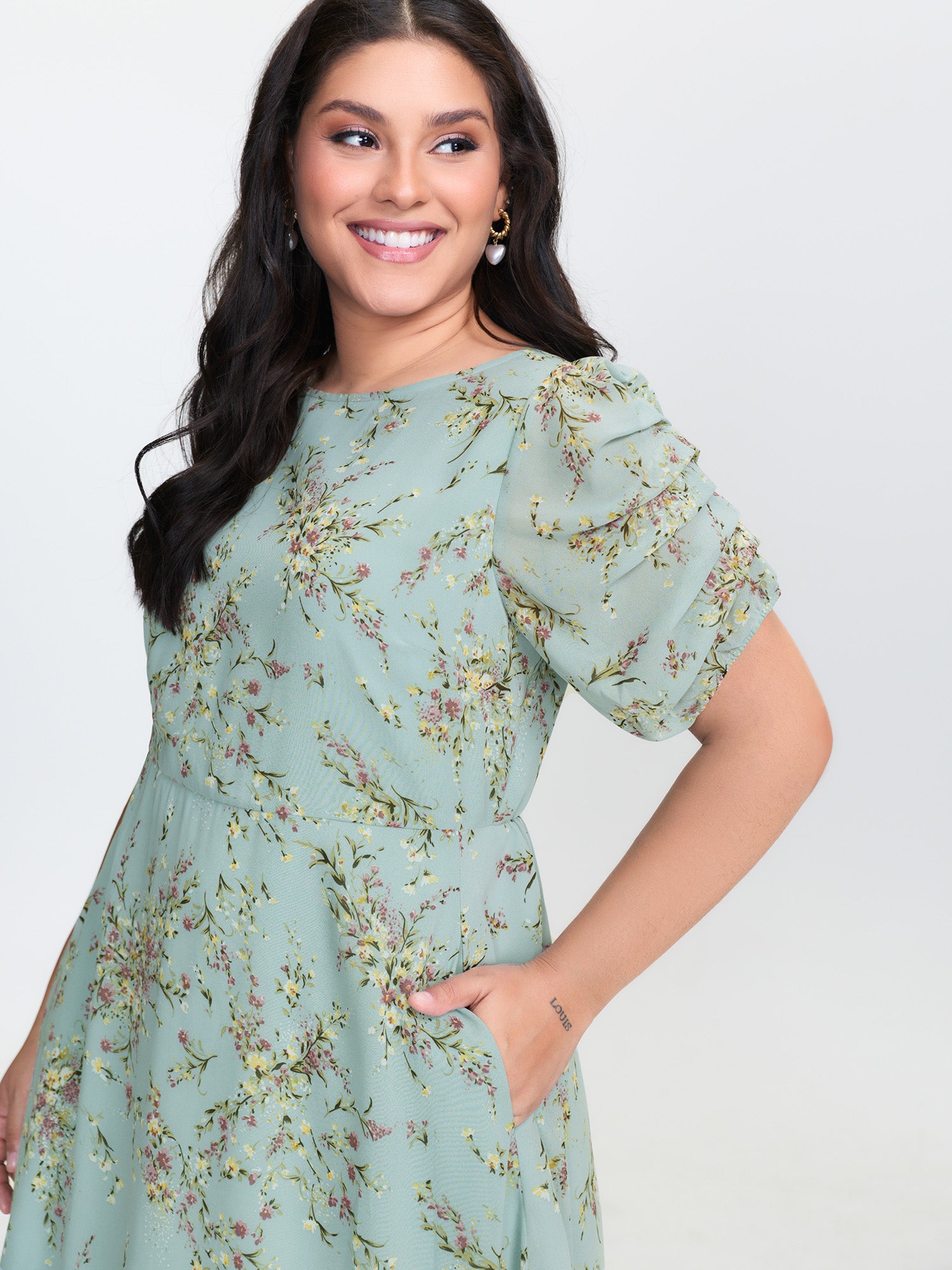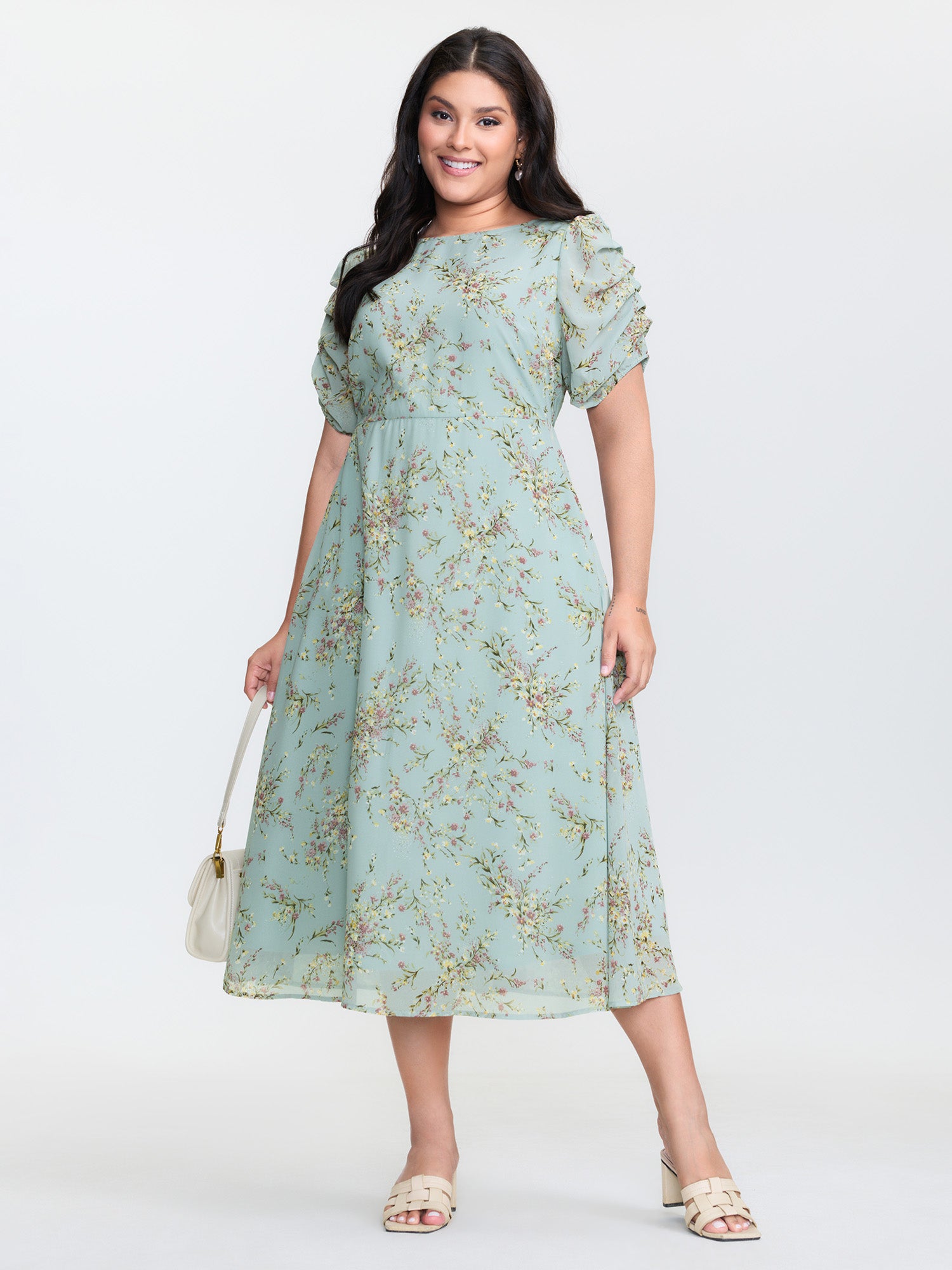 Floral Wrap Patchwork Ruffle Cap Sleeve Dress
