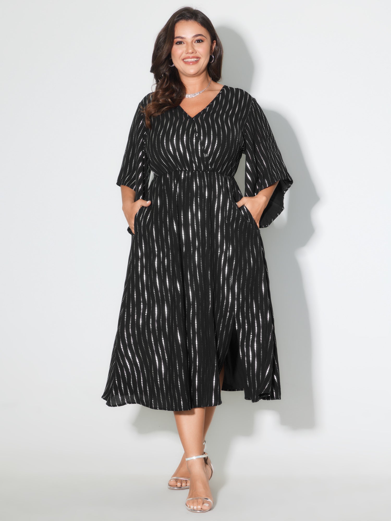 Ditsy Floral Print Flared Sleeve Maxi Dress