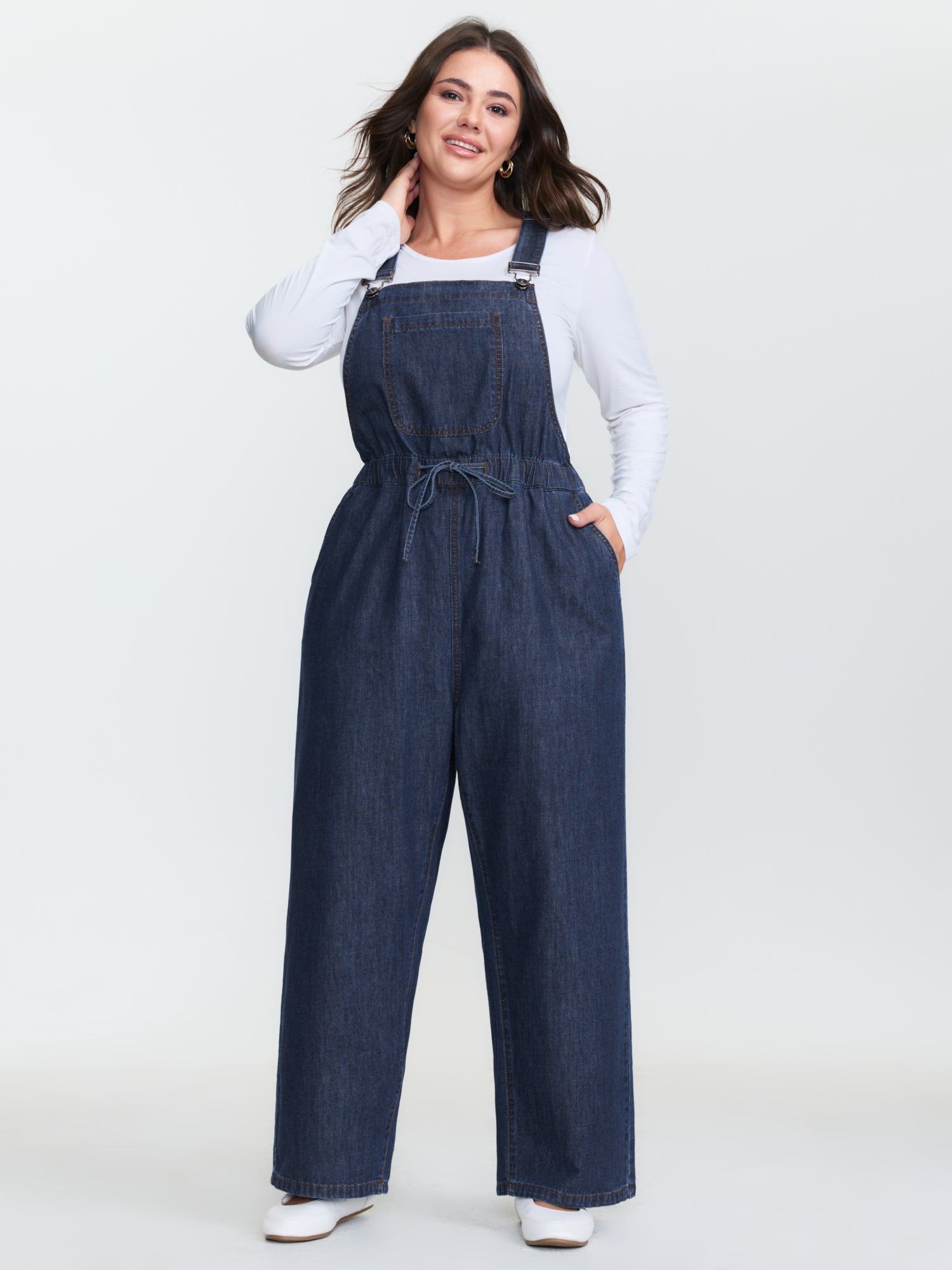 Shop Drawstring Waist Adjustable Overall Jumpsuit now and redefine your style with confidence at BloomChic. Tailored for mid and plus-size women. This trendy Jumpsuits Women, sizes 10-30. Color:Mid Blue;Style:Leisure;Prints:Non;Pocket:Slanted pocket;Belt:No-belt;Closure Type:False placket