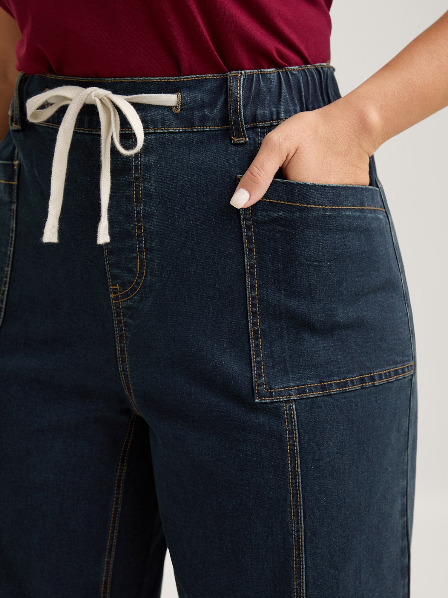 • Drawstring Waist Elastic Waist Straight-Leg Jeans
