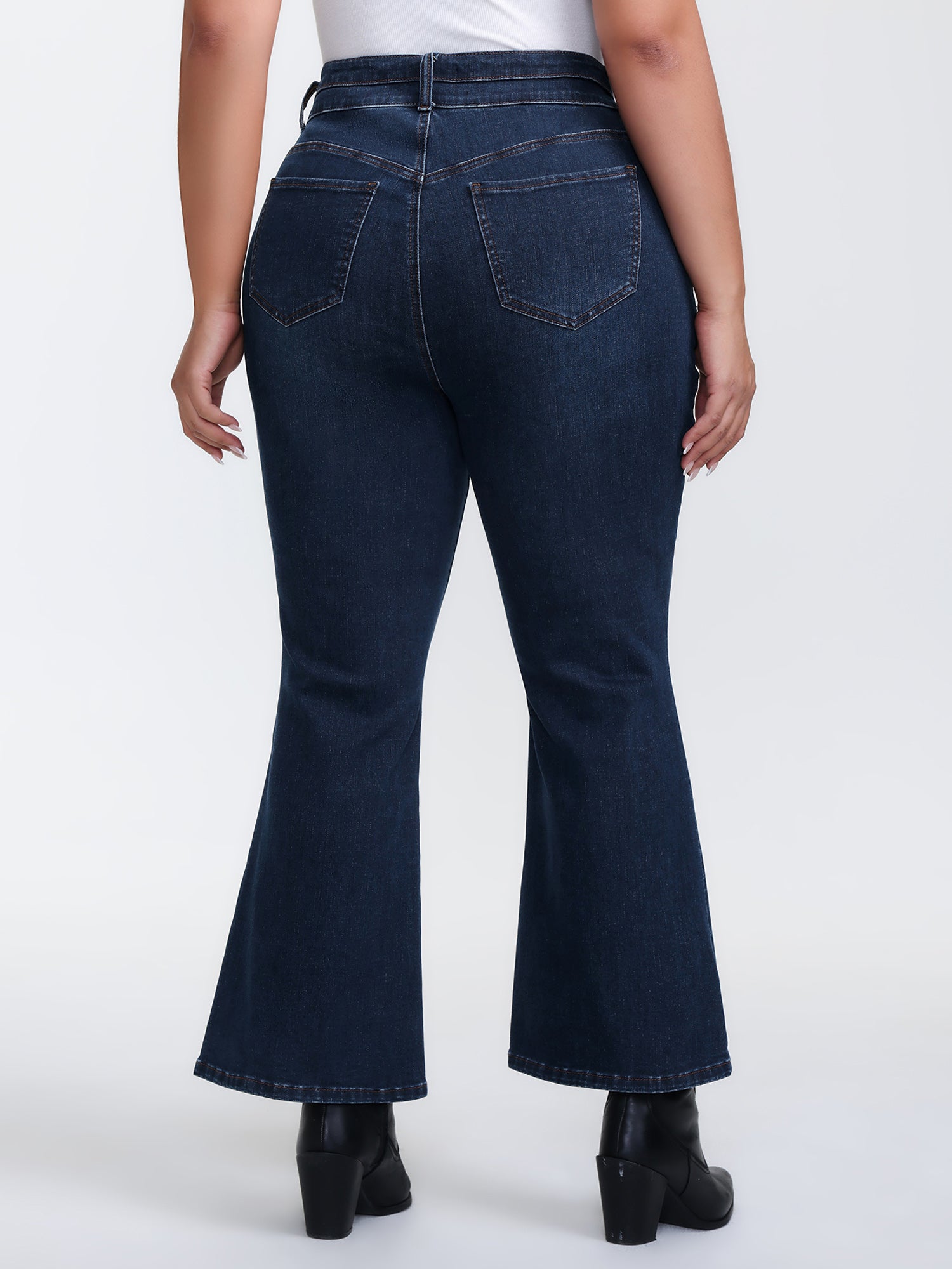 Shop Stretchy Mid-Rise Bootcut Jeans now and redefine your style with confidence at BloomChic. Tailored for mid and plus-size women. This trendy Denim Women, sizes 10-30. Color:Denimindigo;Style:Elegant, Basics, Casual, At the Office, Work From Home;Prints:Non;Details:Patchwork;Pocket:Slanted pocket;Belt:No-belt;Closure Type:Open front with closure;Wash:Dark Wash