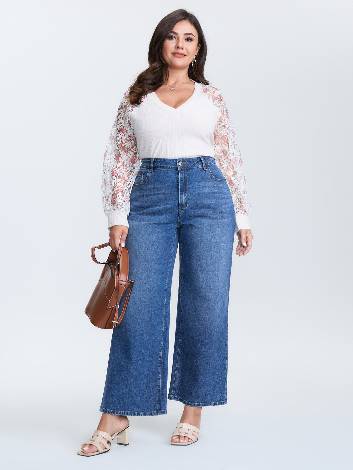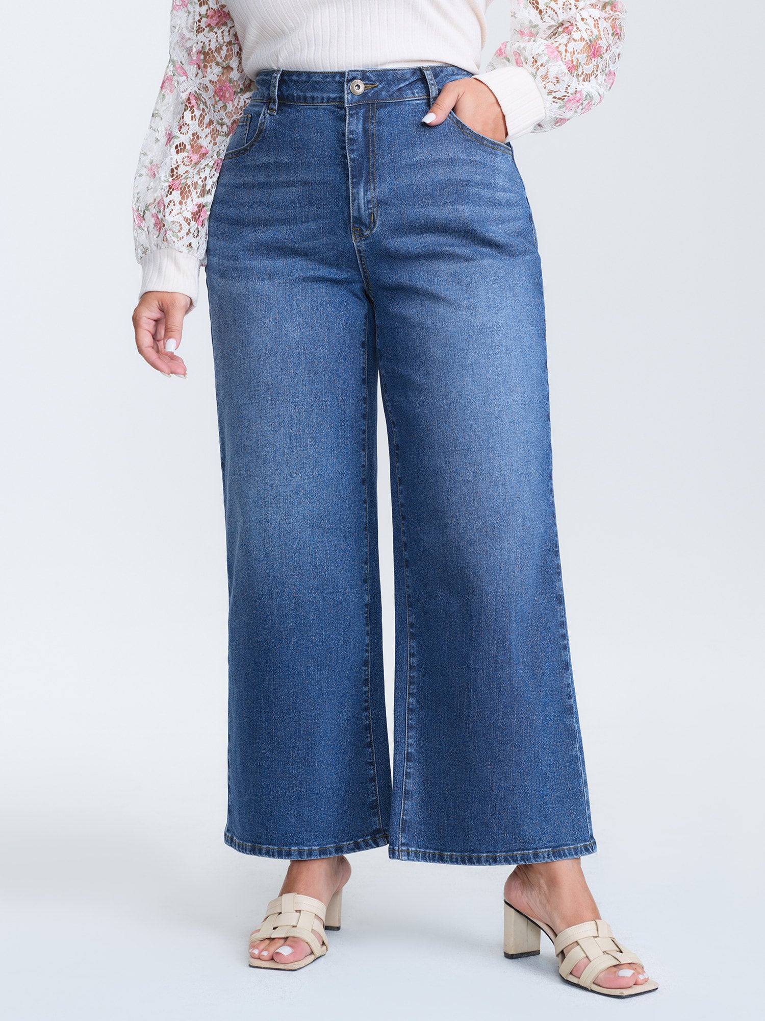 Stretchy Back Waistband Wide-Leg Jeans