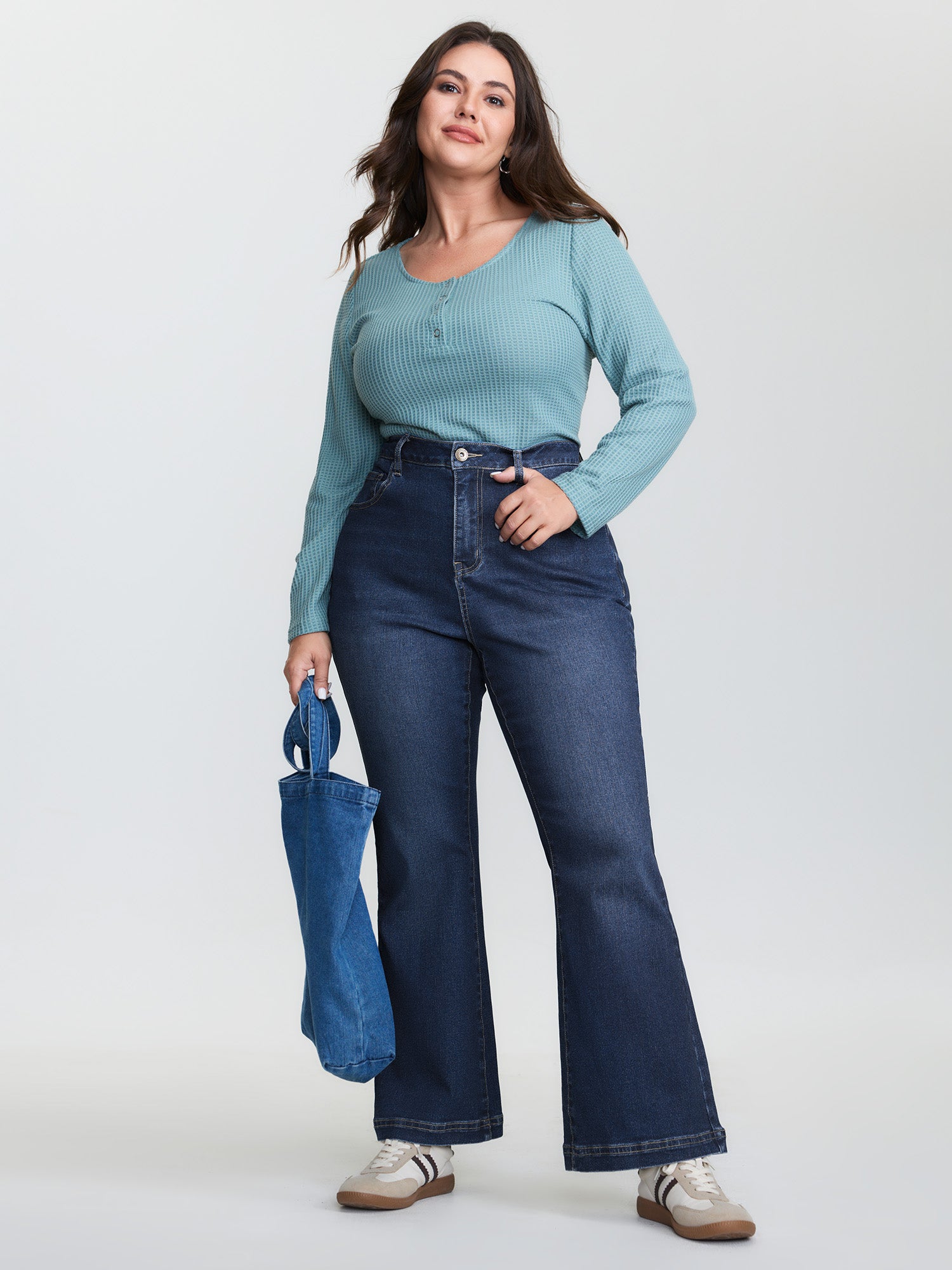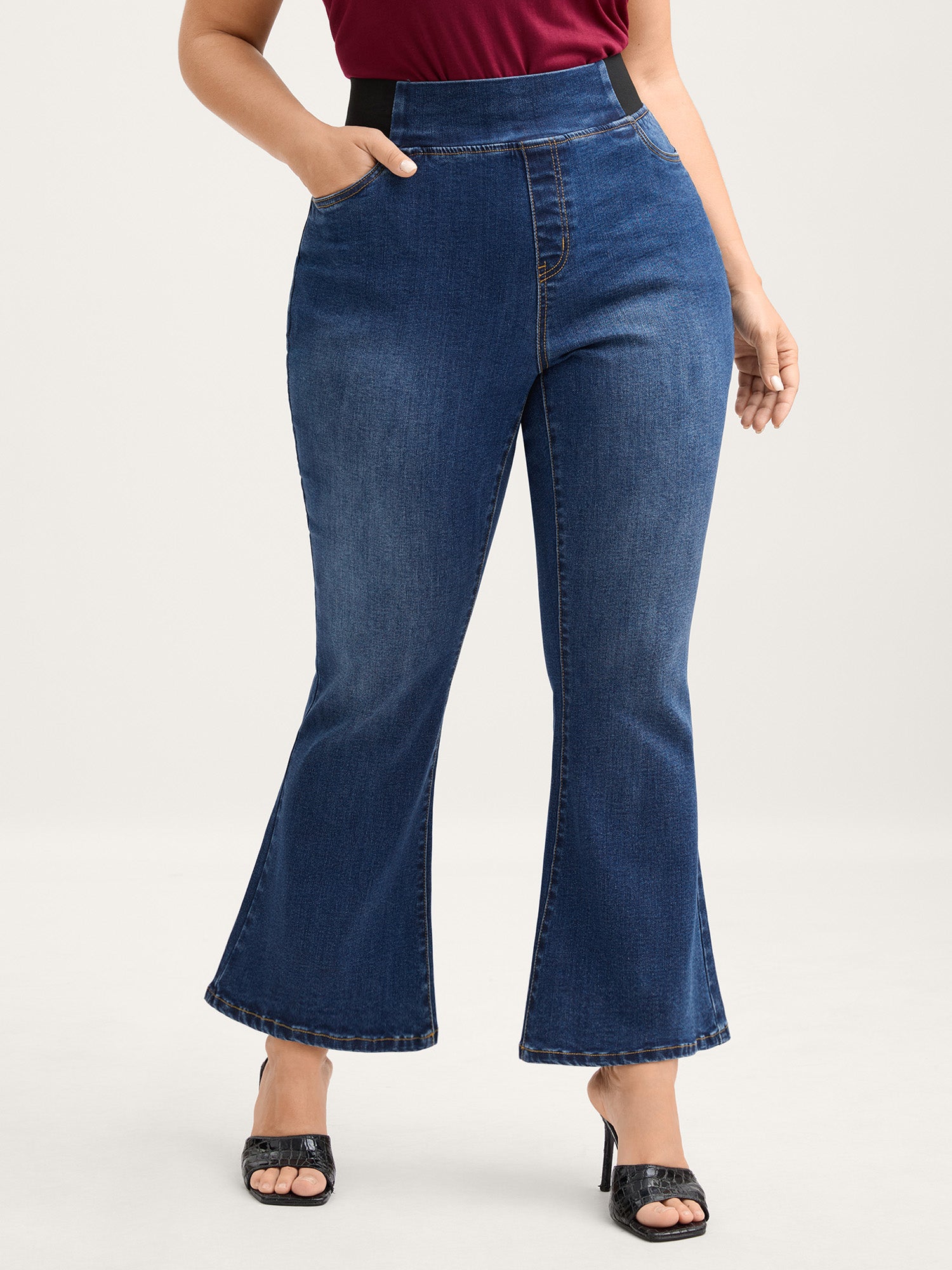 Stretchy Waist Flared Hem Jeans