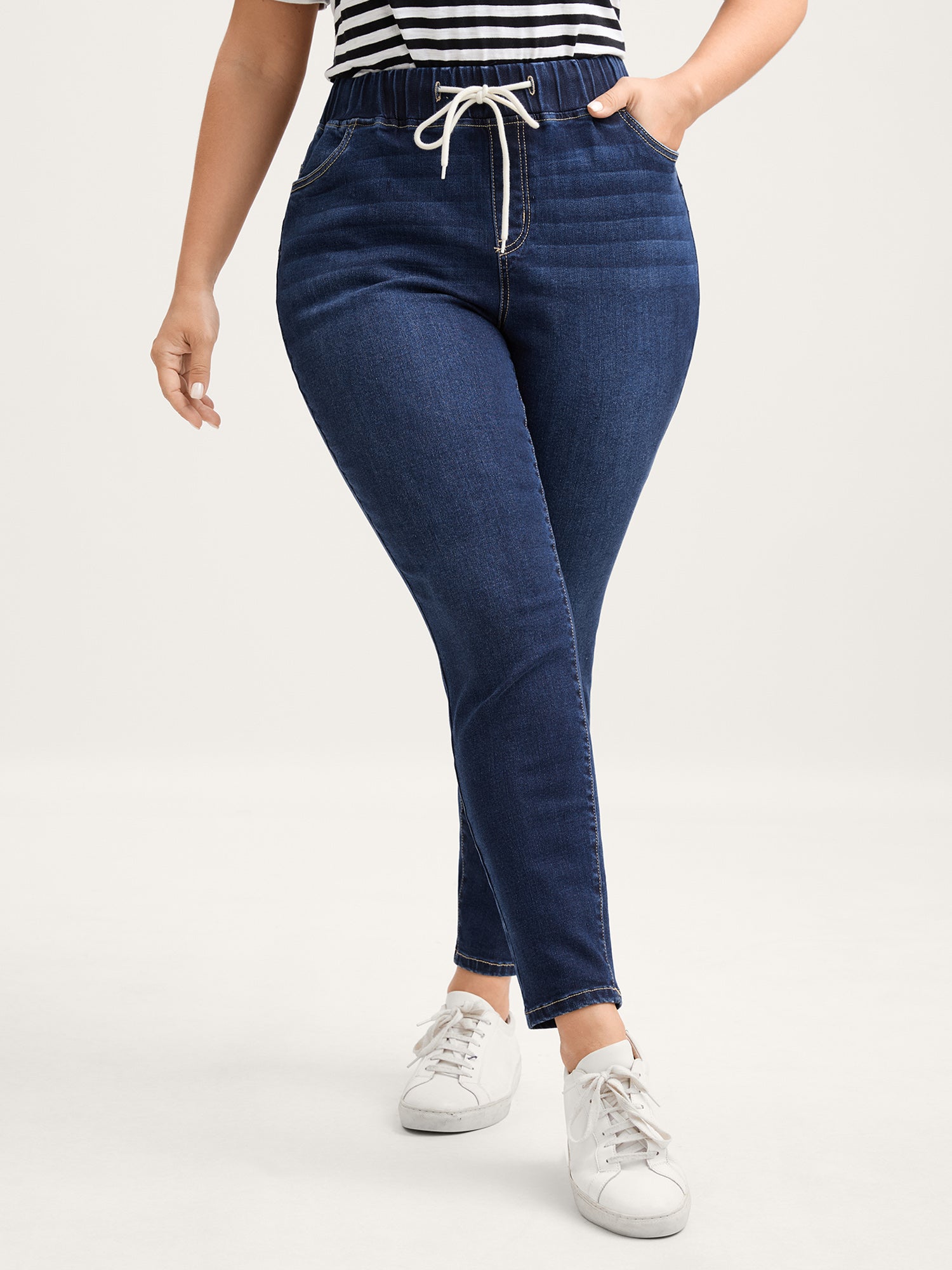Drawstring Stretchy Waist Skinny-Fit Jeans