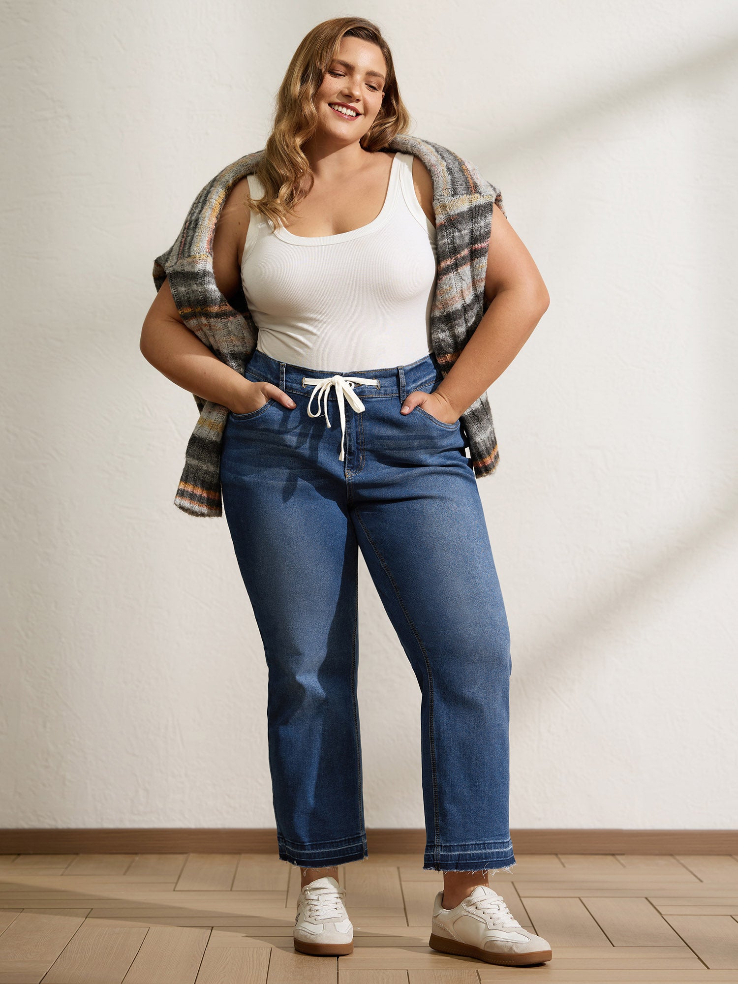 Stretchy Waist Drawstring Straight-Leg Jeans