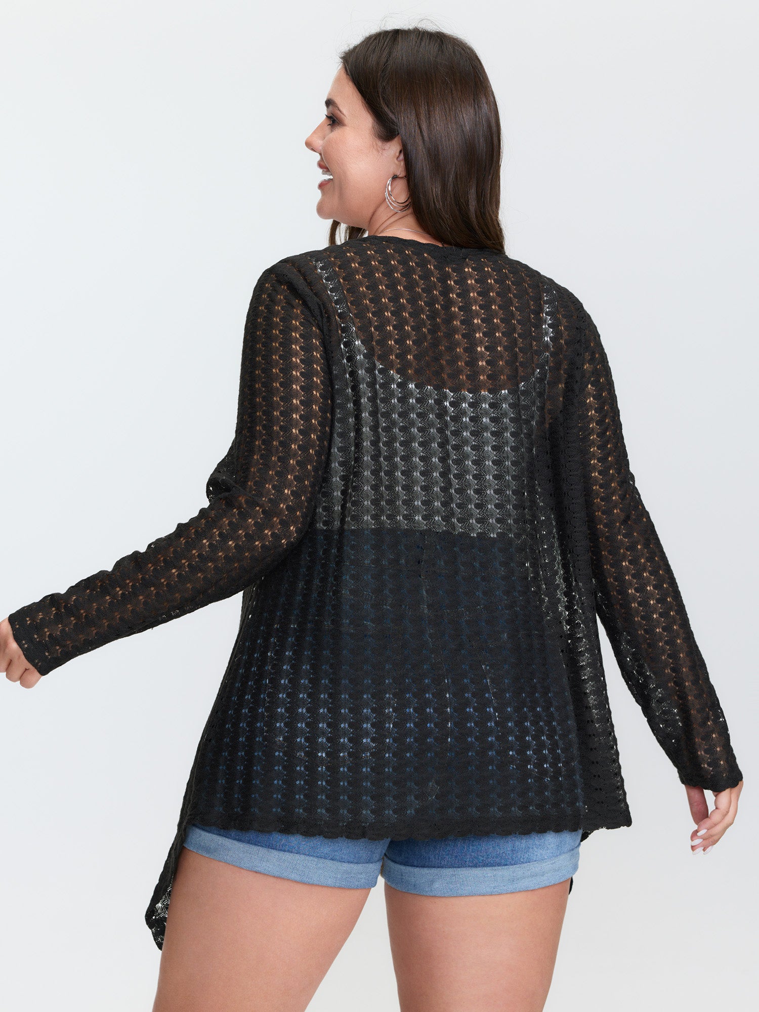 Shop Crochet Textured Ruffled Hem Cover-Up now and redefine your style with confidence at BloomChic. Tailored for mid and plus-size women. This trendy Outerwear Women, sizes 10-30. Color:Black;Style:Leisure;Prints:Synthetic texture;Details:See through, Texture;Pocket:No-pocket;Belt:No-belt;Closure Type:Open front without closure